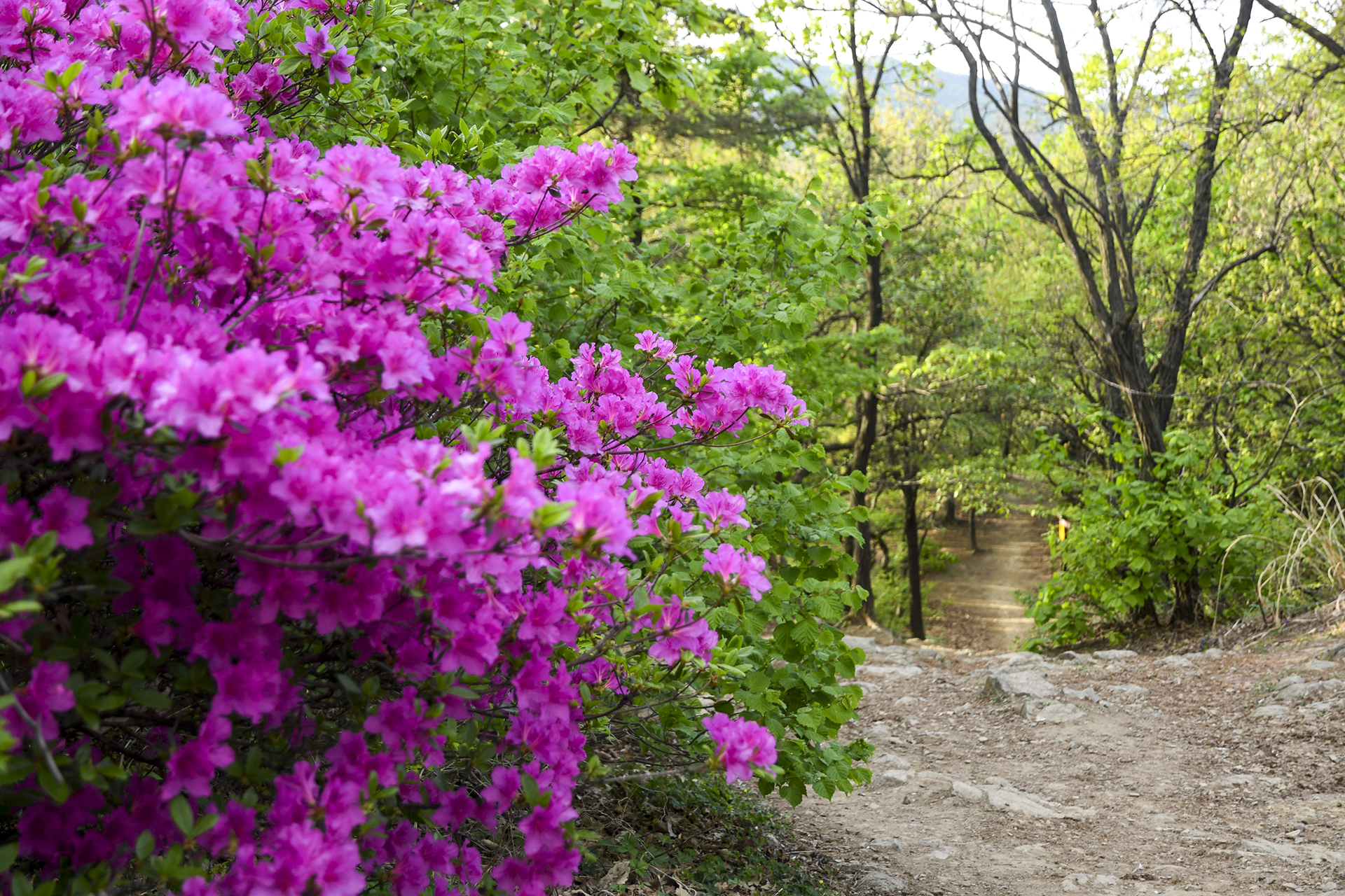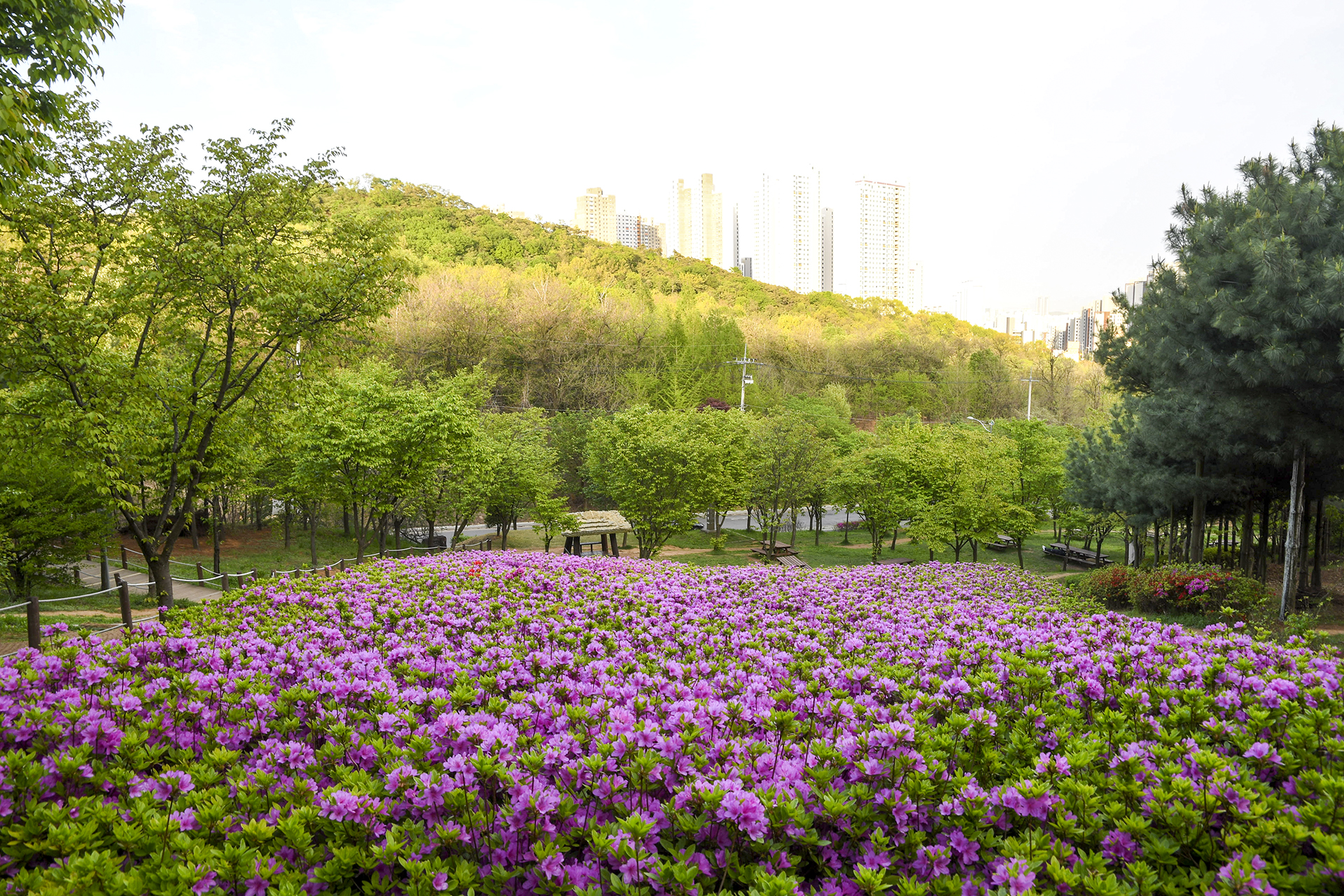 철쭉이 만발한 곳으로 바로 윗 사진의 좌측길로 가면 인천나비공원으로 가는 장수산 연결다리가 있는 지점이다.