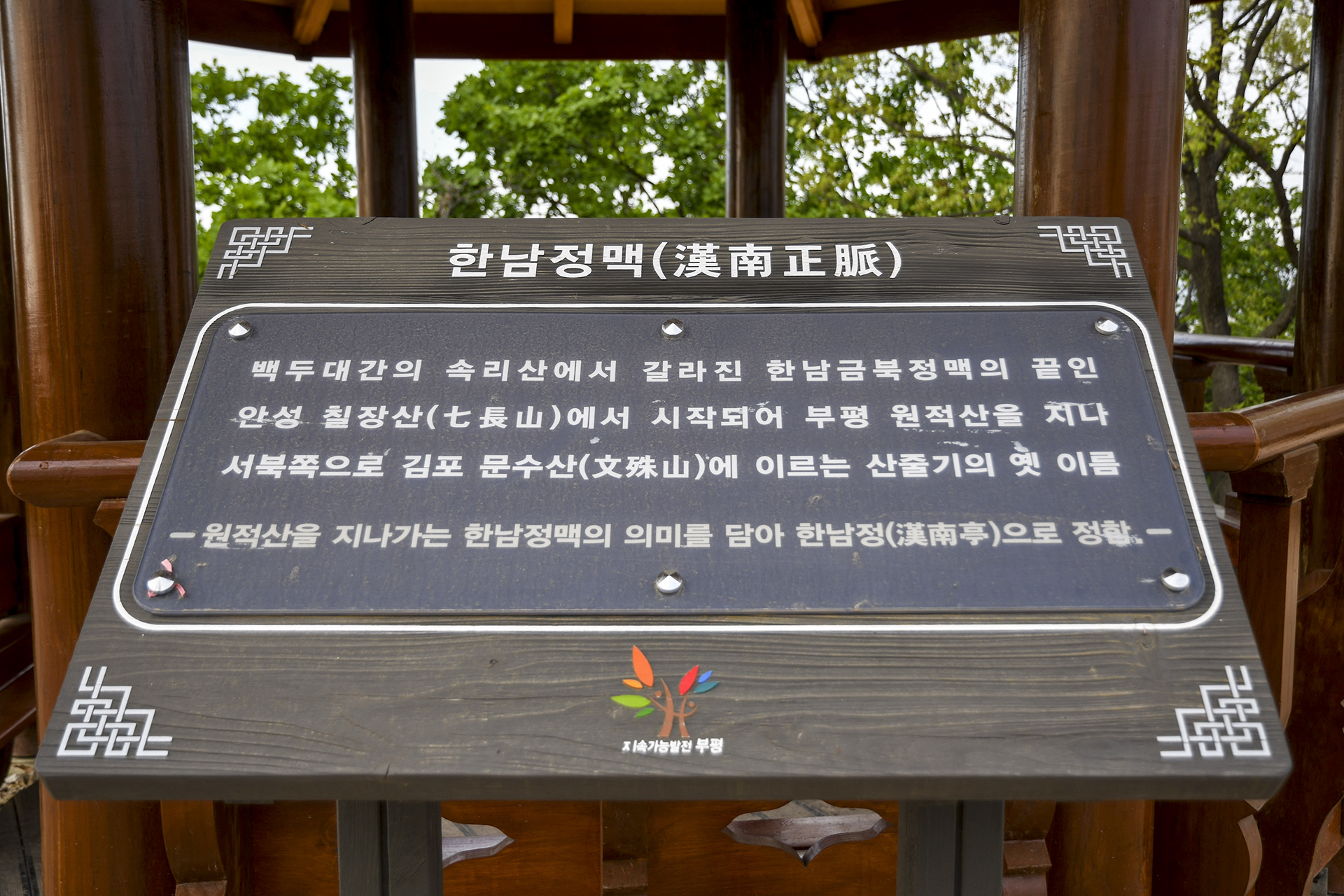 이곳은 한남정맥 산줄기가 지나기 때문에 팔각정 이름을 한남정이라 정했다고 한다.