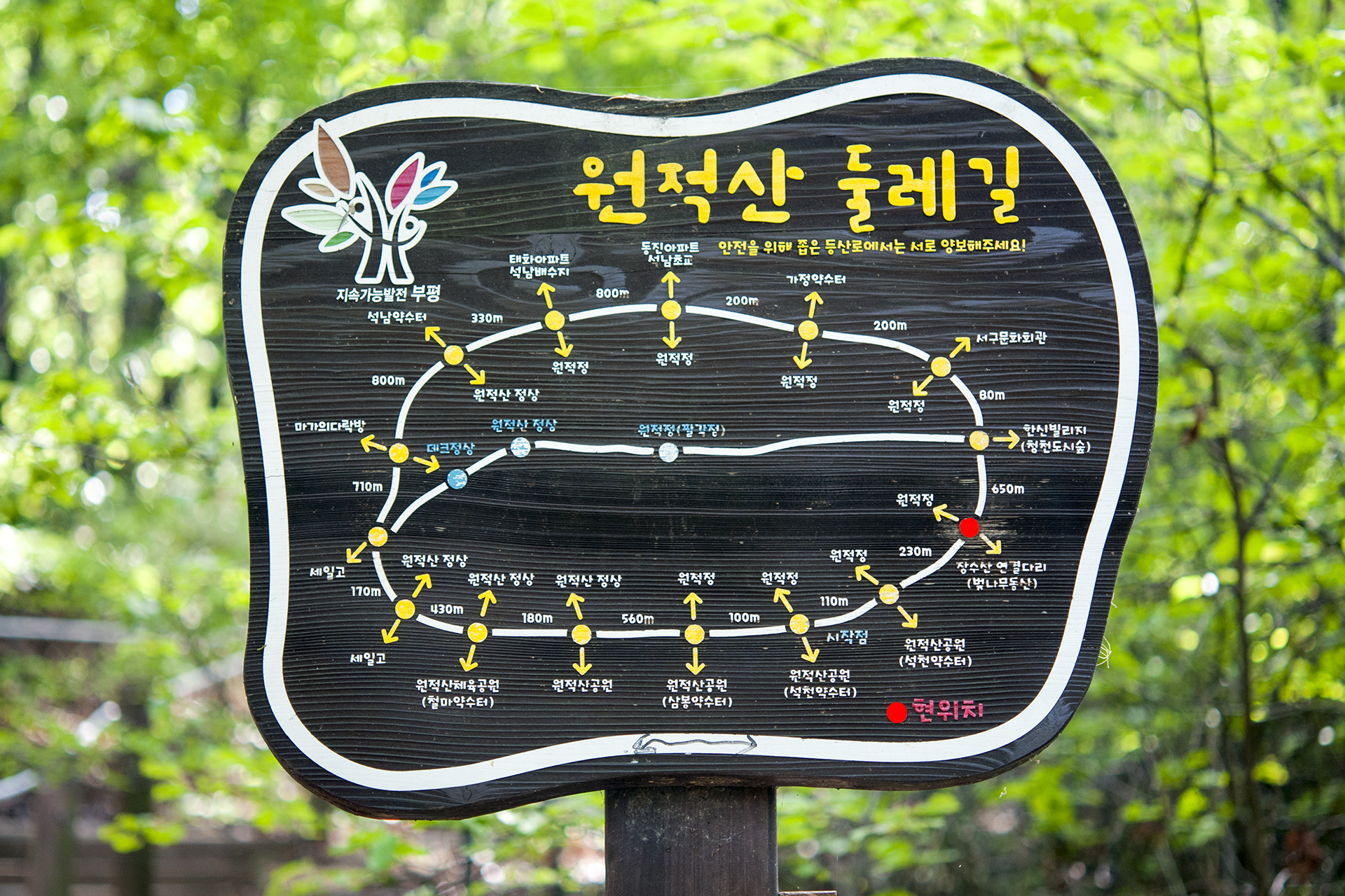 오늘은 부평 청천동에 위치한 원적산공원 북문에서 출발하여 순환코스인 원적산 둘레길을 걸은뒤 정상까지 올라갔다가 내려올 계획이다.