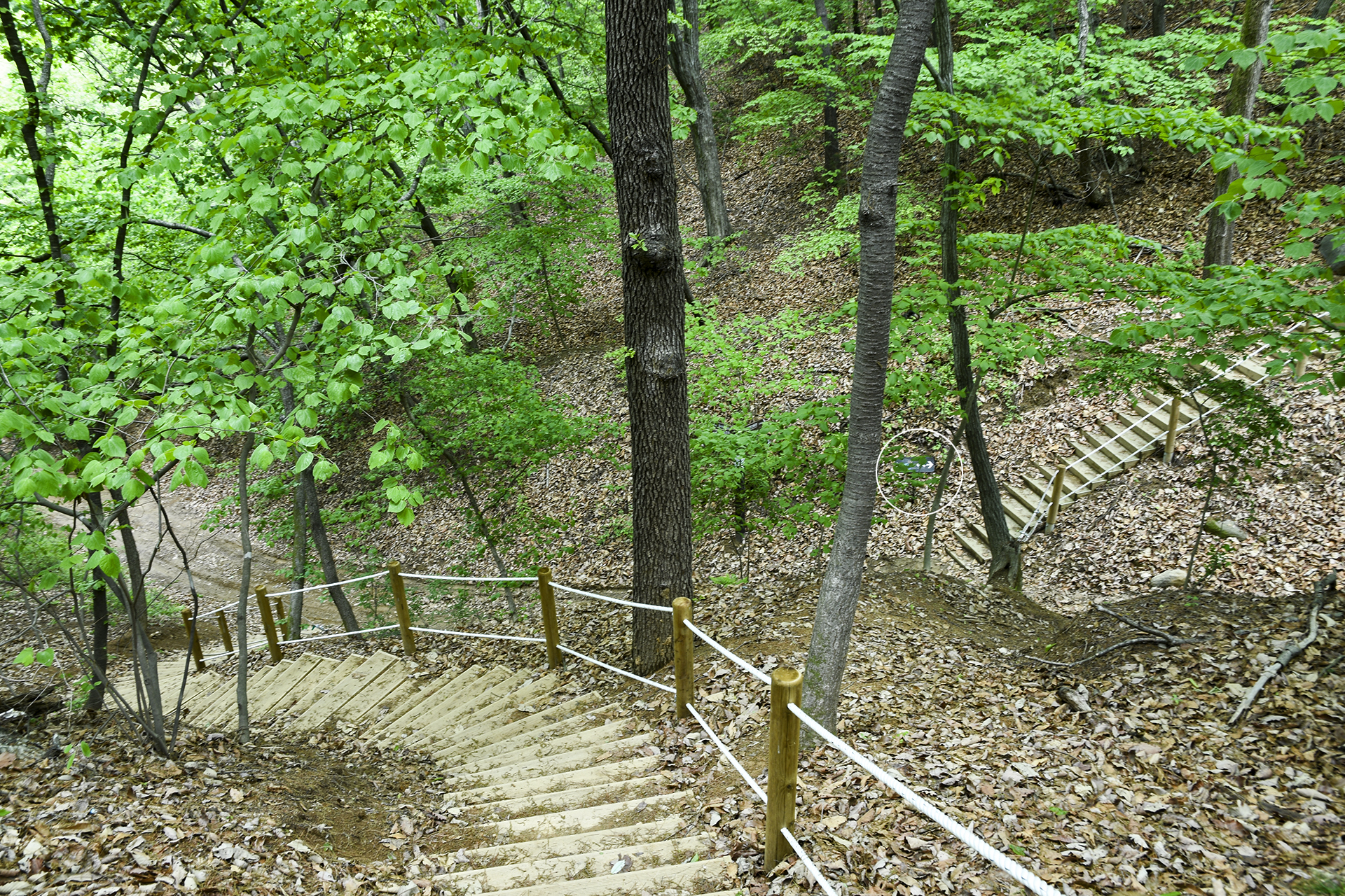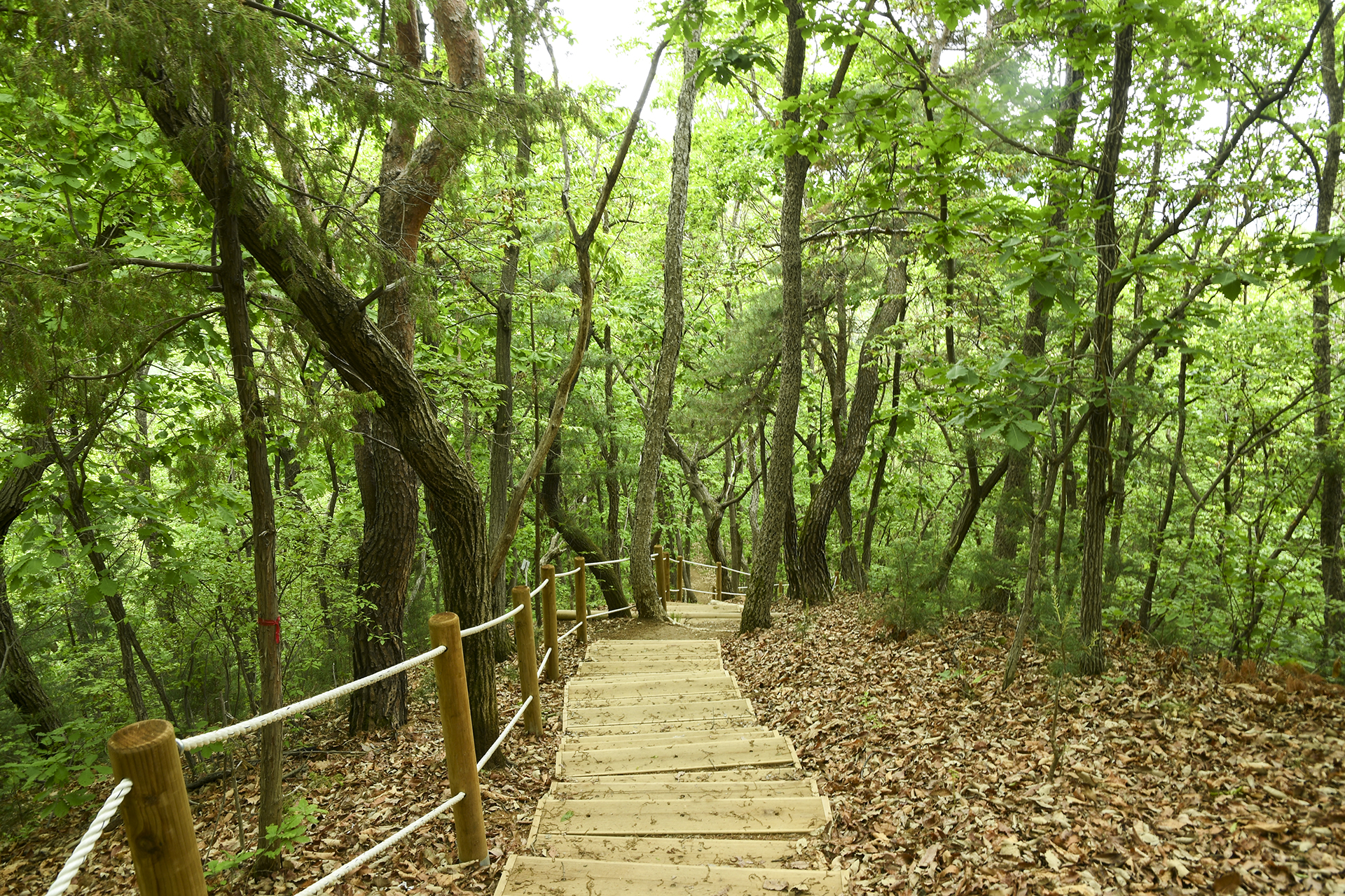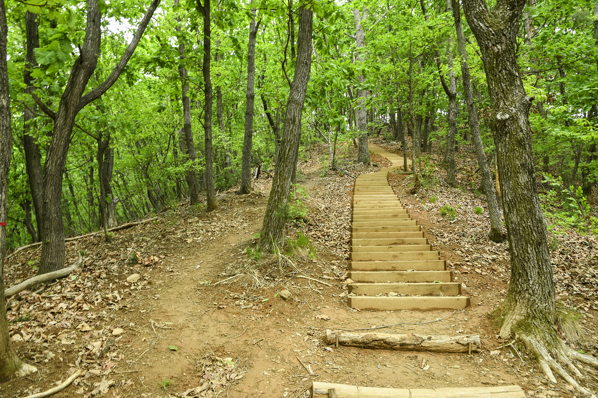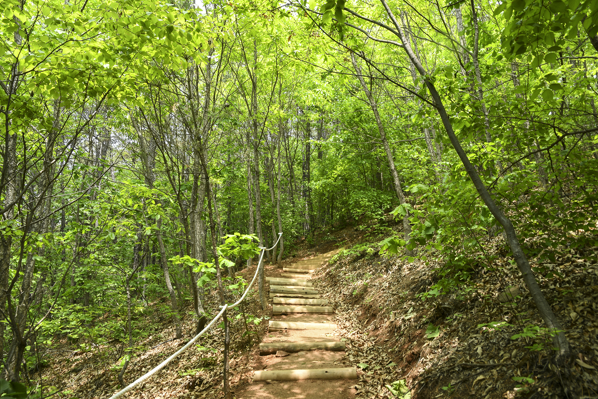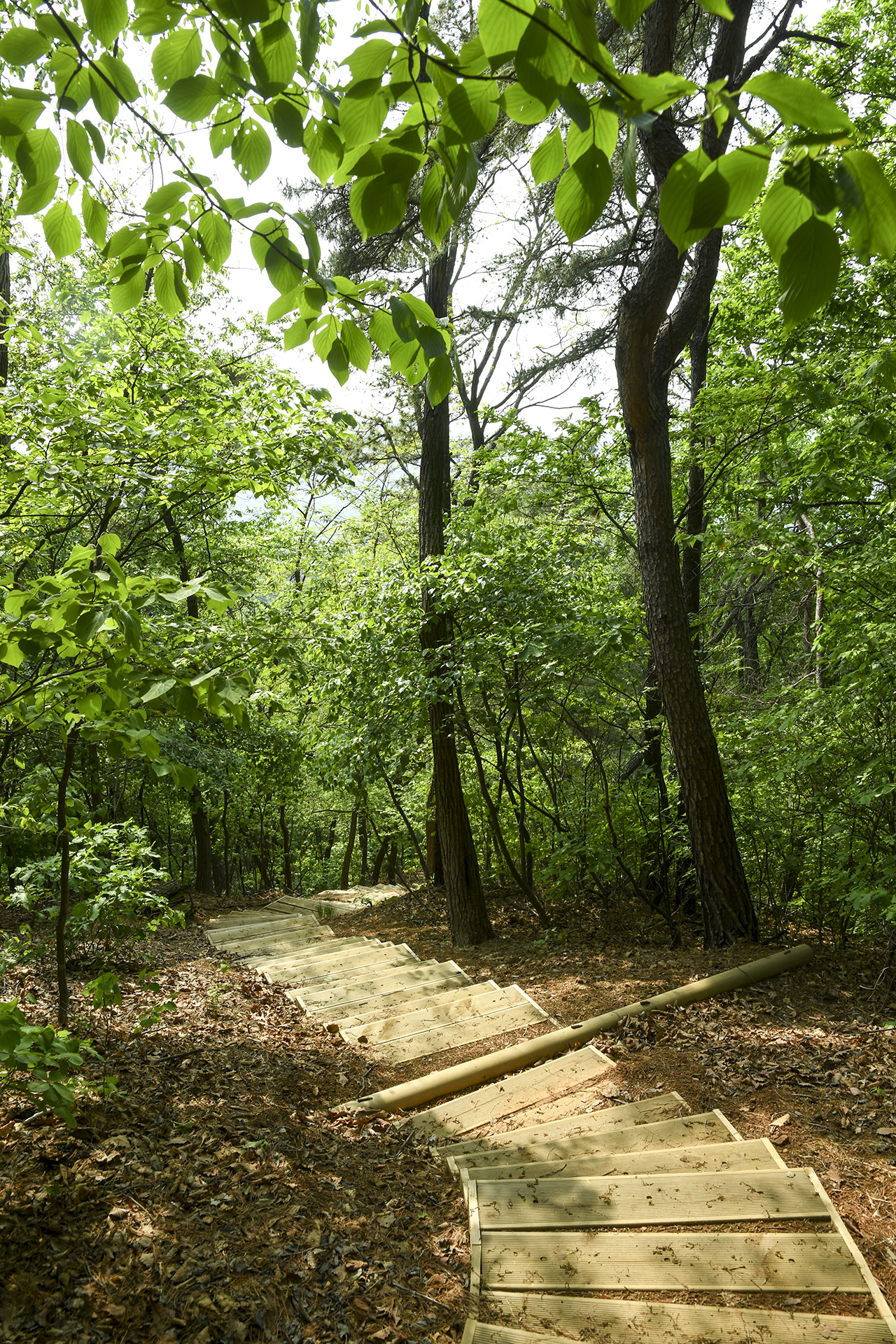 작게 오르고 내리는 산길이 계속되는 중인데 이번 계단은 제법 길게 이어진다.