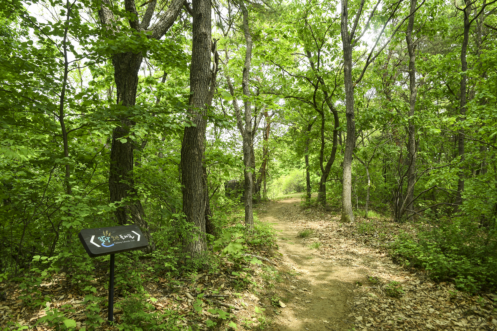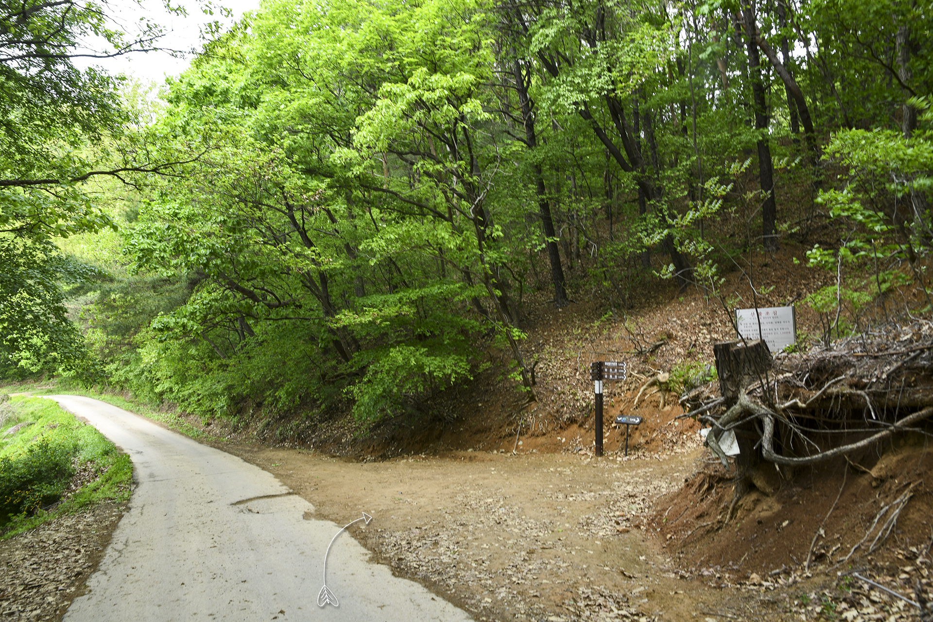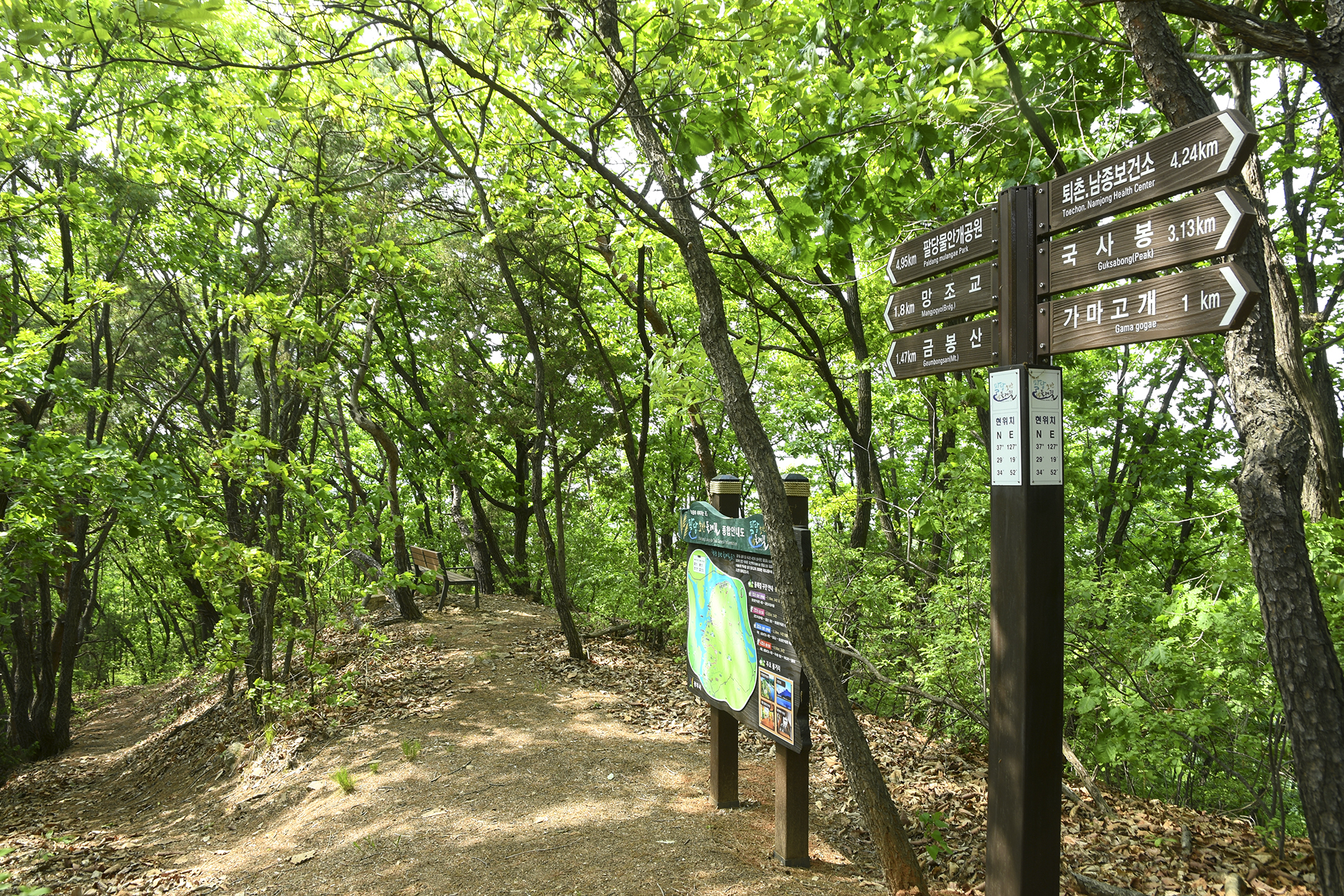 비교적 걷기 편한 숲길을 10분 정도 걸으면 가마고개에 도착하게 된다.