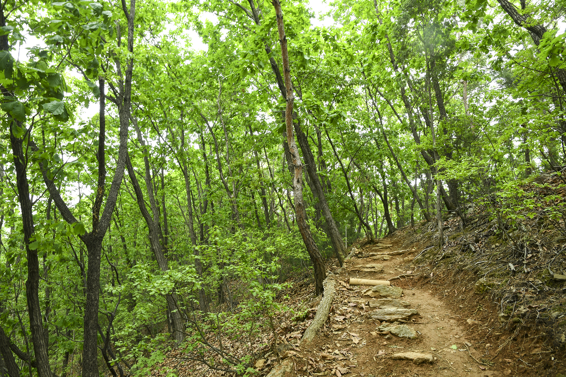 대체적으로 무난하게 걸을수 있는 산길이지만 조망이 트이는 곳이 없다는건 단점이라 할 수 있다.