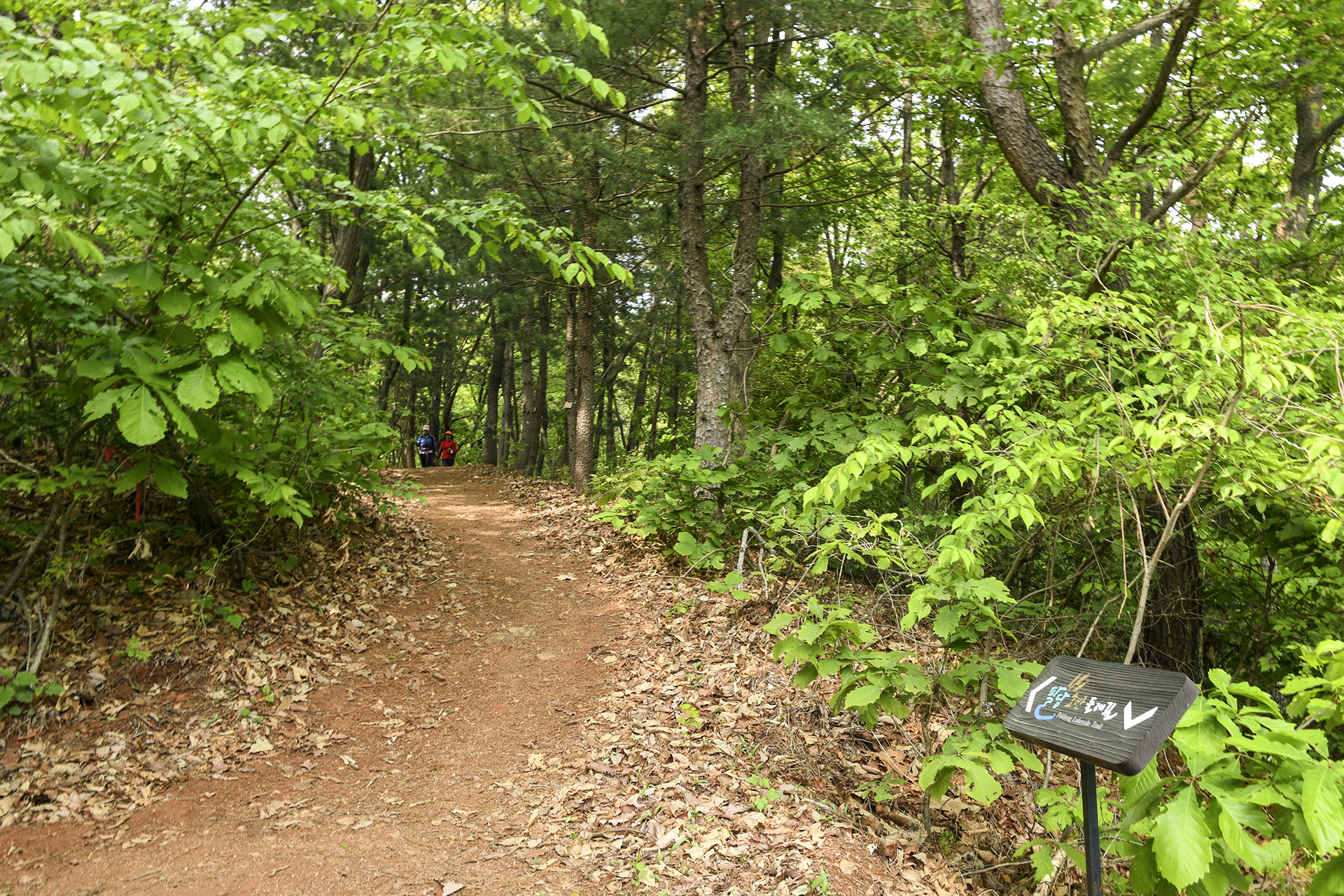 평지를 걸어 하나의 코스를 끝낸 후 전망이 트이지 않는 산길을 걷는다는 점이다.