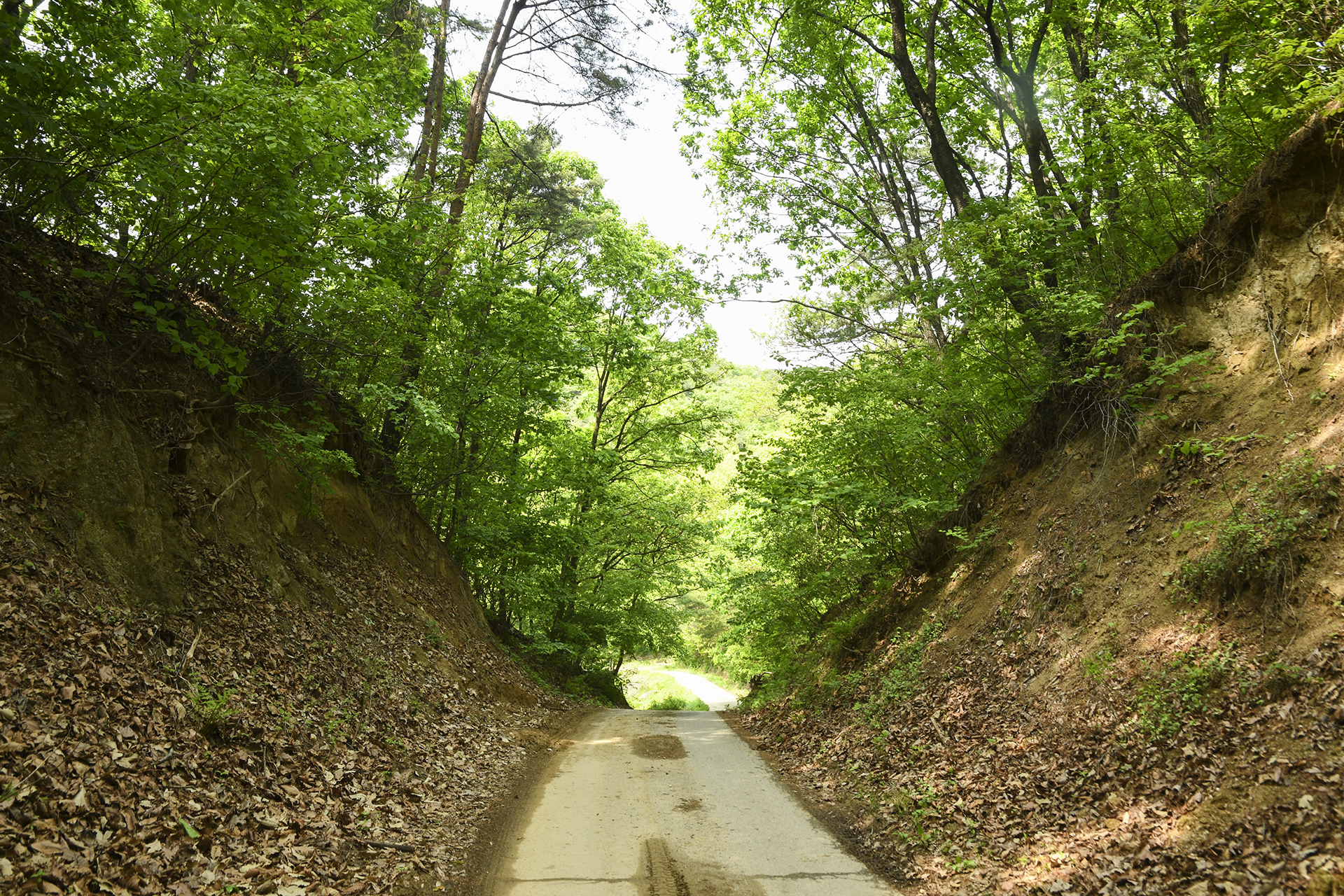 다시 200m를 더 내려오면 산길을 벗어나는 지점에서 임도를 만나게 된다.