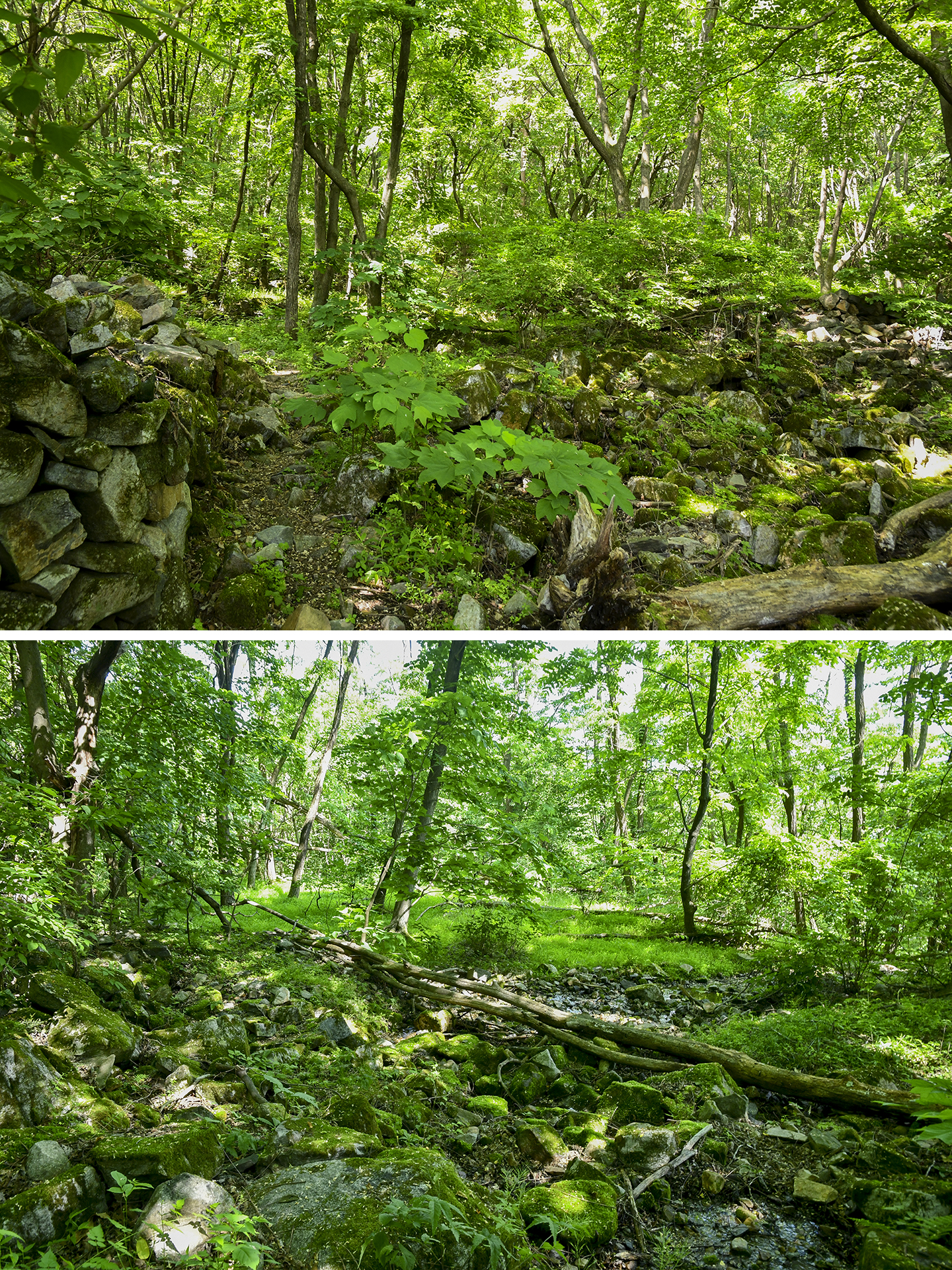 푸른 이끼로 잔뜩 덮인 바위들은 자연 그대로의 길 덕분에 잘 보존되어 있다.