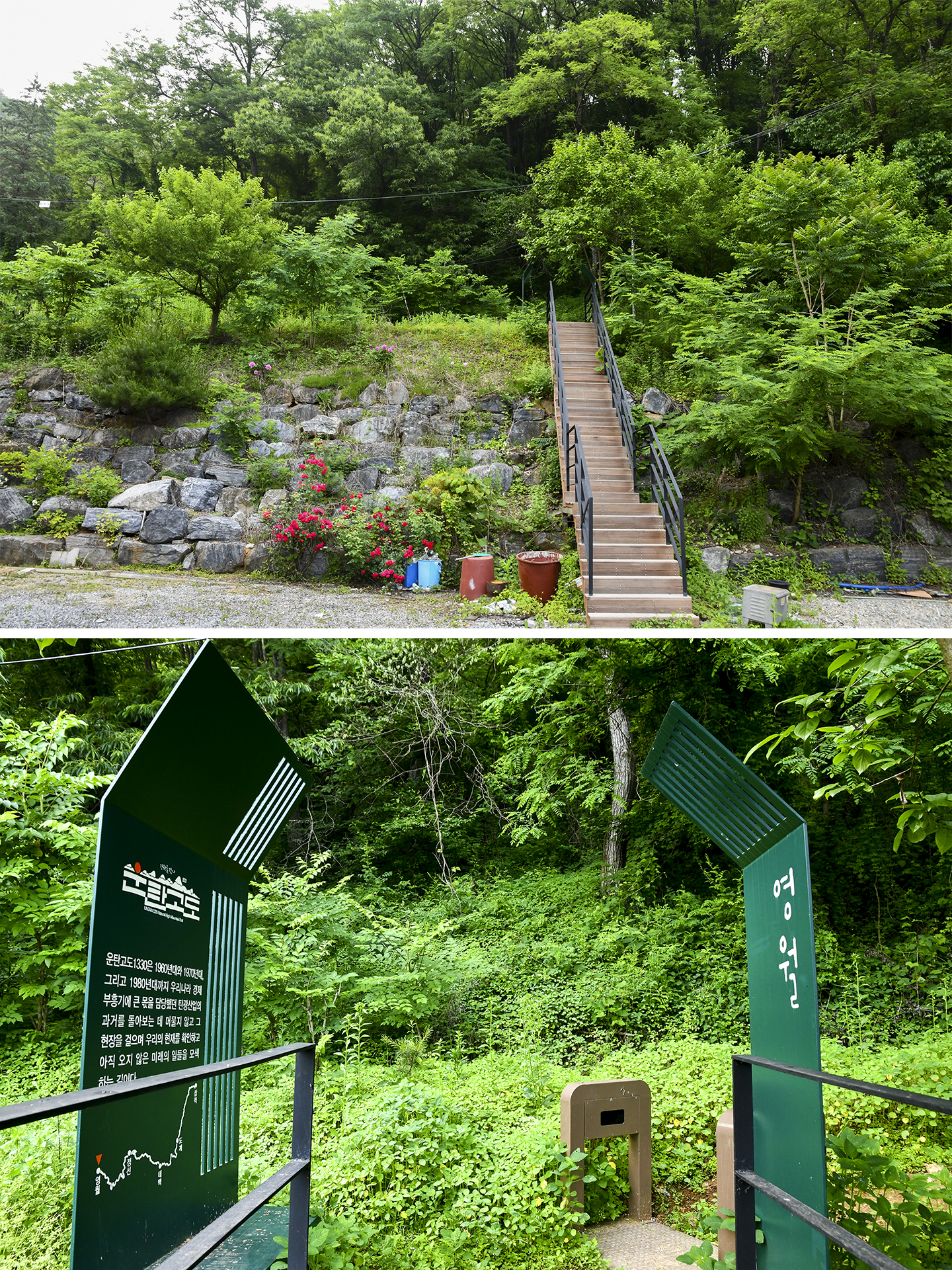 순둥이 백구가 있는 삼계탕집 뒷편 주차장으로 가면 숲으로 올라가는 입구가 열려있다.