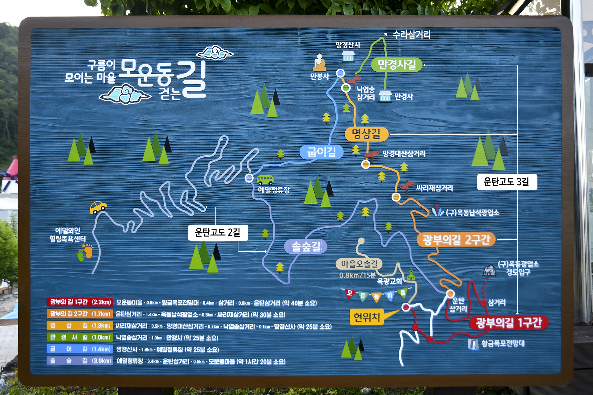 '산꼬라데이'는 산골짜기를 가리키는 강원도 토속어로, 오늘 걸을 운탄고도 3길은 산꼬라데이길 중 광부의길, 명상길, 만경사길과 함께하게 된다.