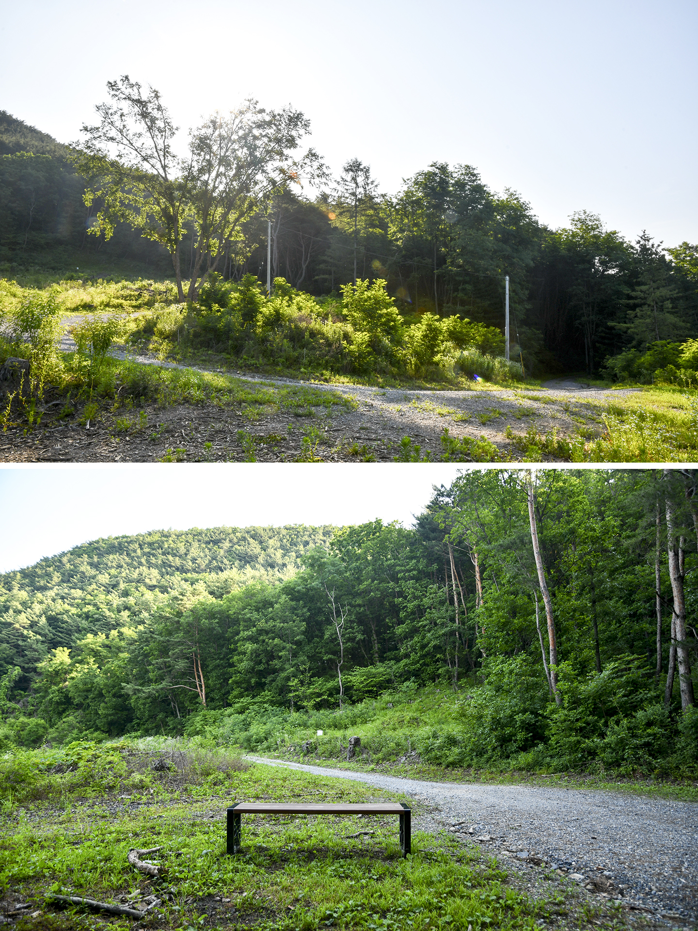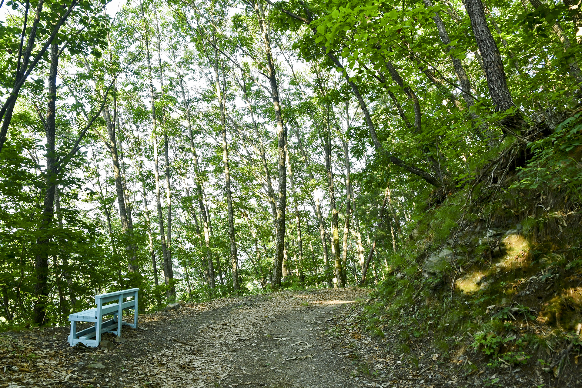 지그재그로 완만한 경사를 올라와 숲에 어울리는 예쁜 의자 포토존을 지나면서 잠시 숨을 돌린다.