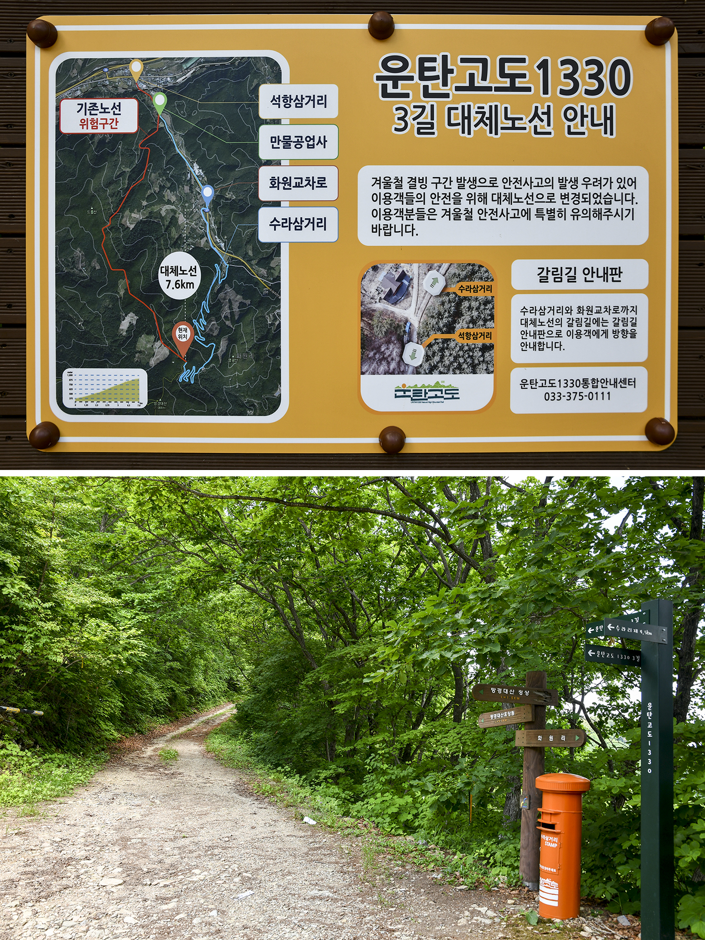 강원도민일보의 최근 기사를 보니 운탄고도 1길과 2길이 외씨버선길을 이용한 구간은 안전사고 위험성이 있음을 지적하고 있었다. 운탄고도의 취지에도 맞지 않는다는 이야기다. 직접 걸어본 사람으로서 공감하는 부분이다.