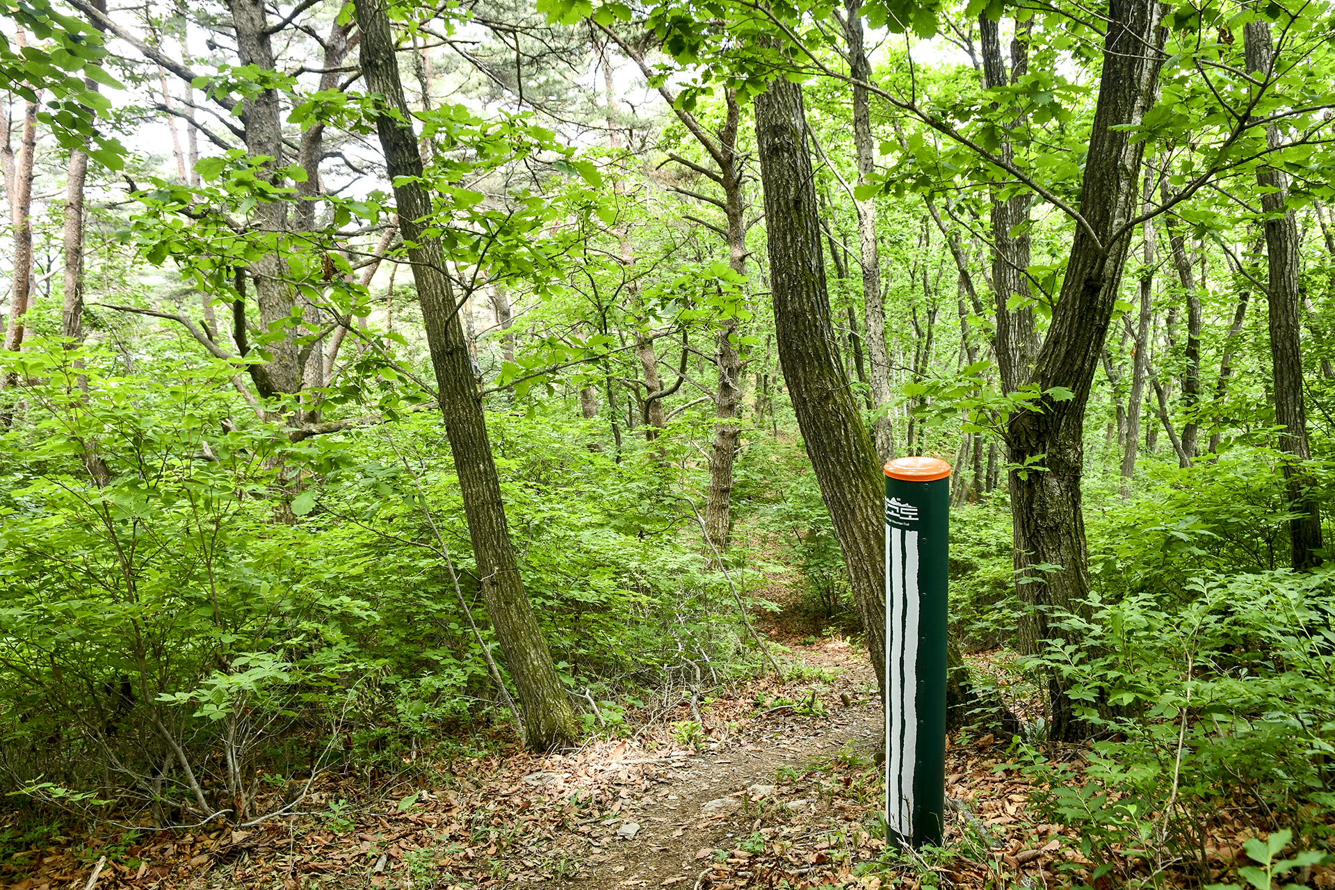오랜만에 만나게 되는 운탄고도 말뚝이 반갑다. 평탄하면서도 내려가는 숲길이 구불구불 계속 이어진다.