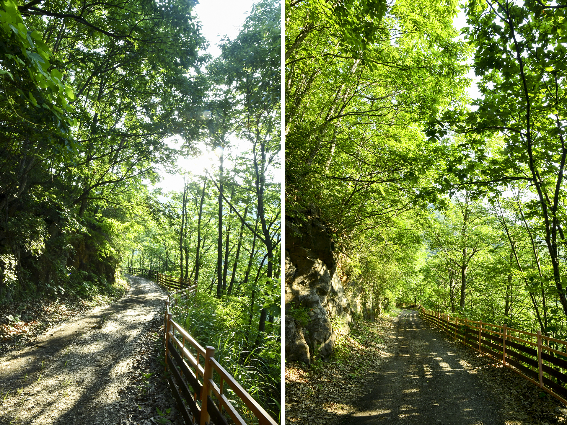 지그재그로 길이 이어지다 보니 햇빛이 들었다, 안들었다를 반복하게 된다.