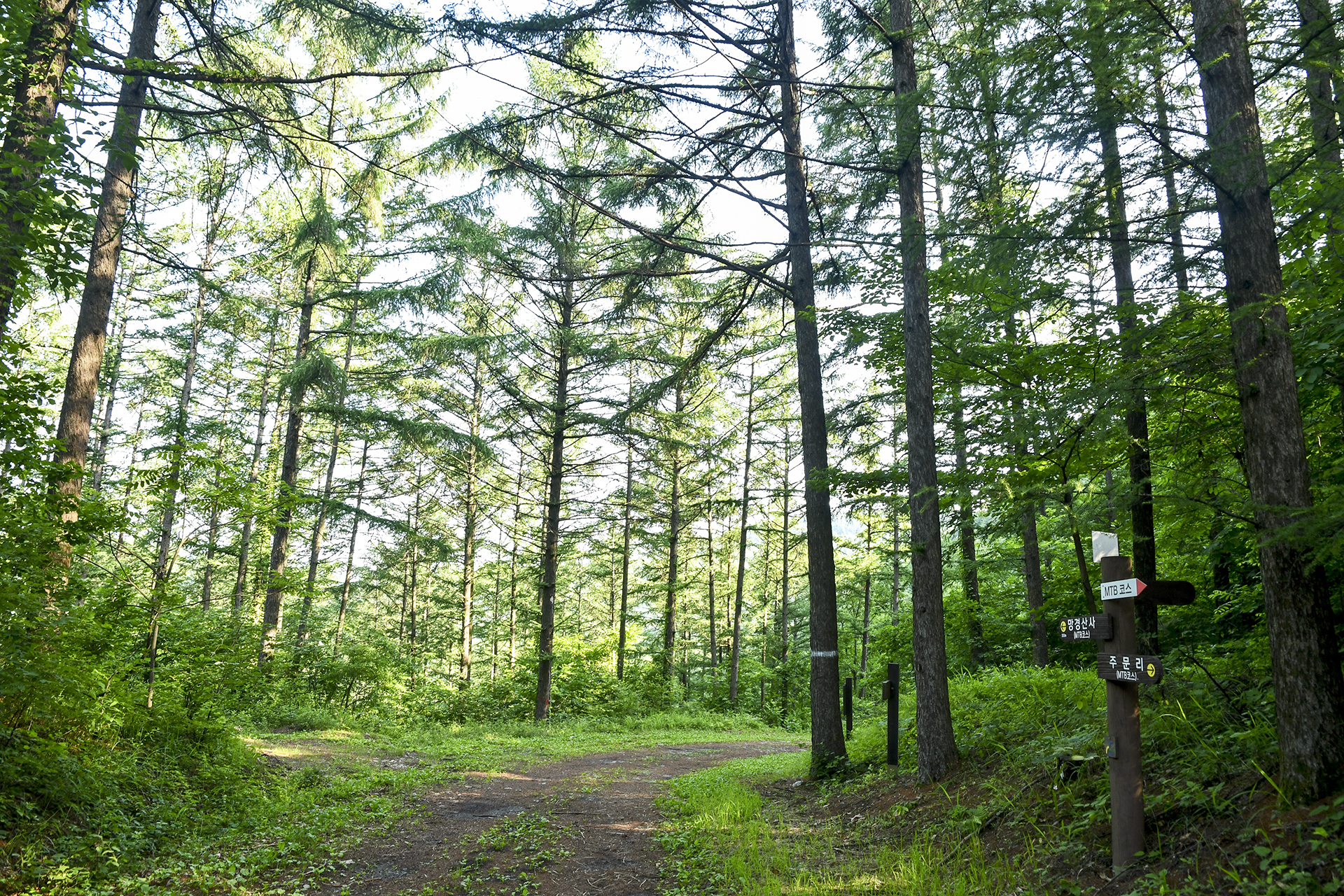 다음 지점인 낙엽송 삼거리까지는 1.65km 남은 지점으로 운탄고도 이정표를 따라 싸리재 방향이 아닌 왼쪽 길로 가면 된다.