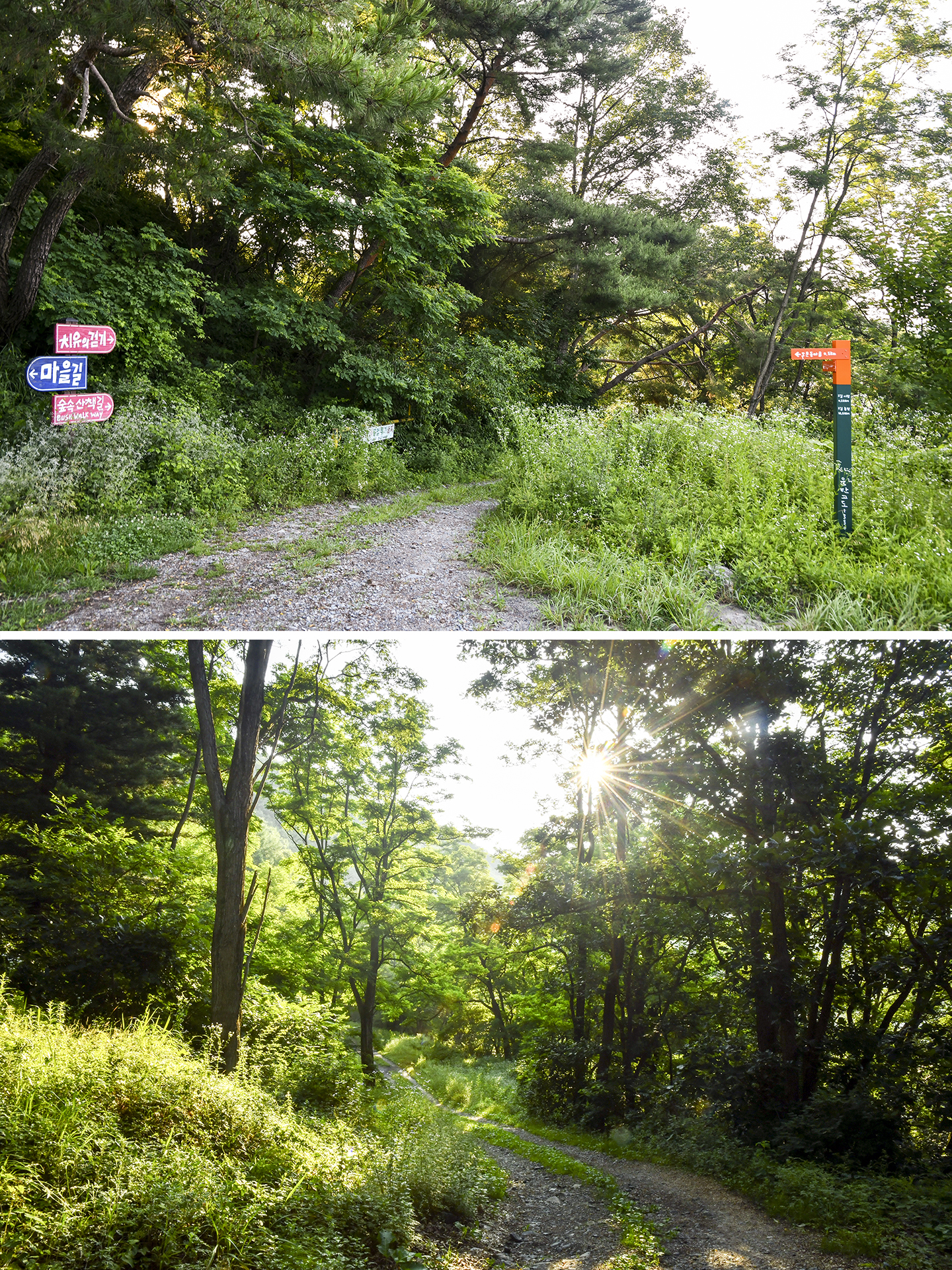 빛이 들지 않는 길은 시원해 걷기에 너무 좋은 아침이다.
