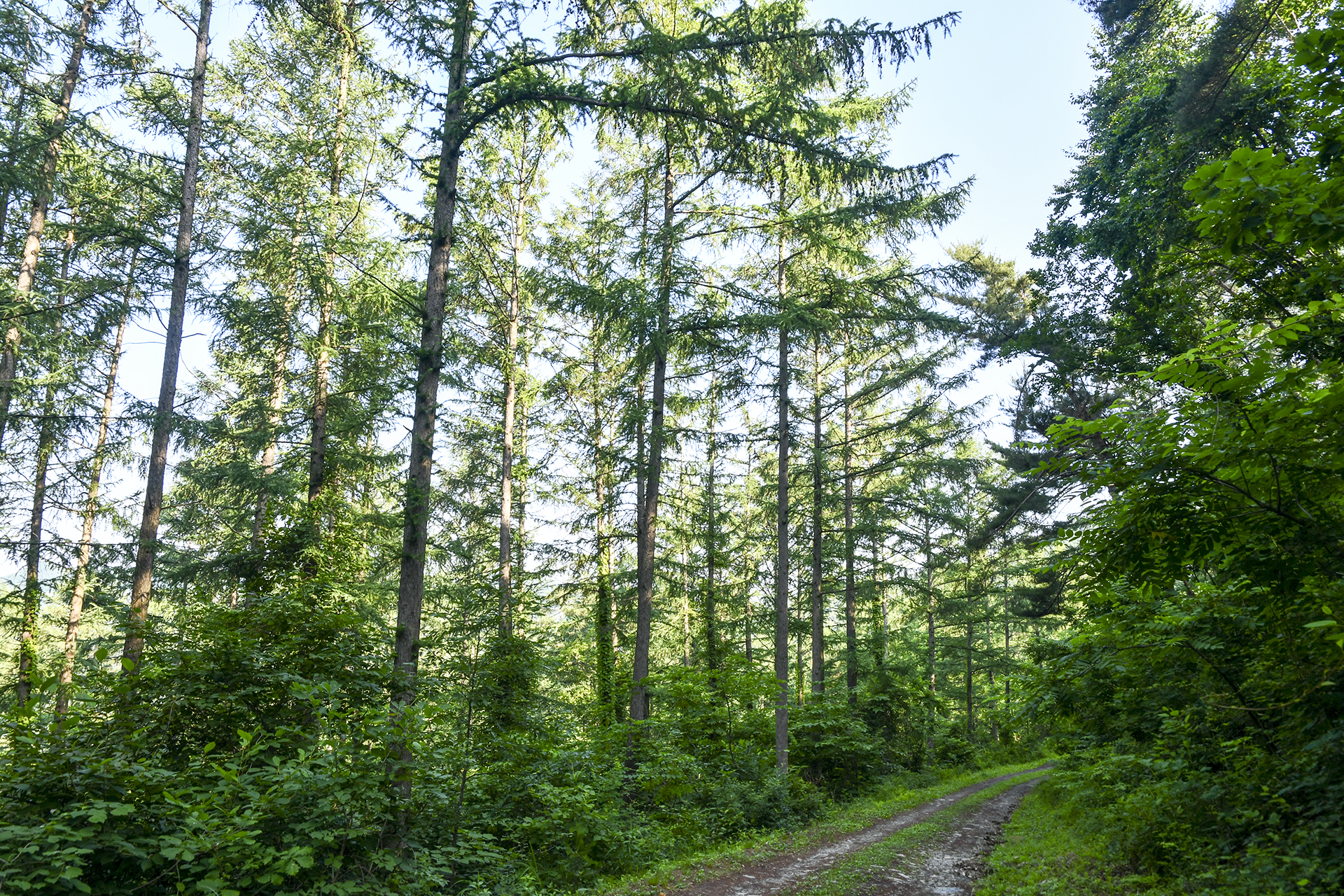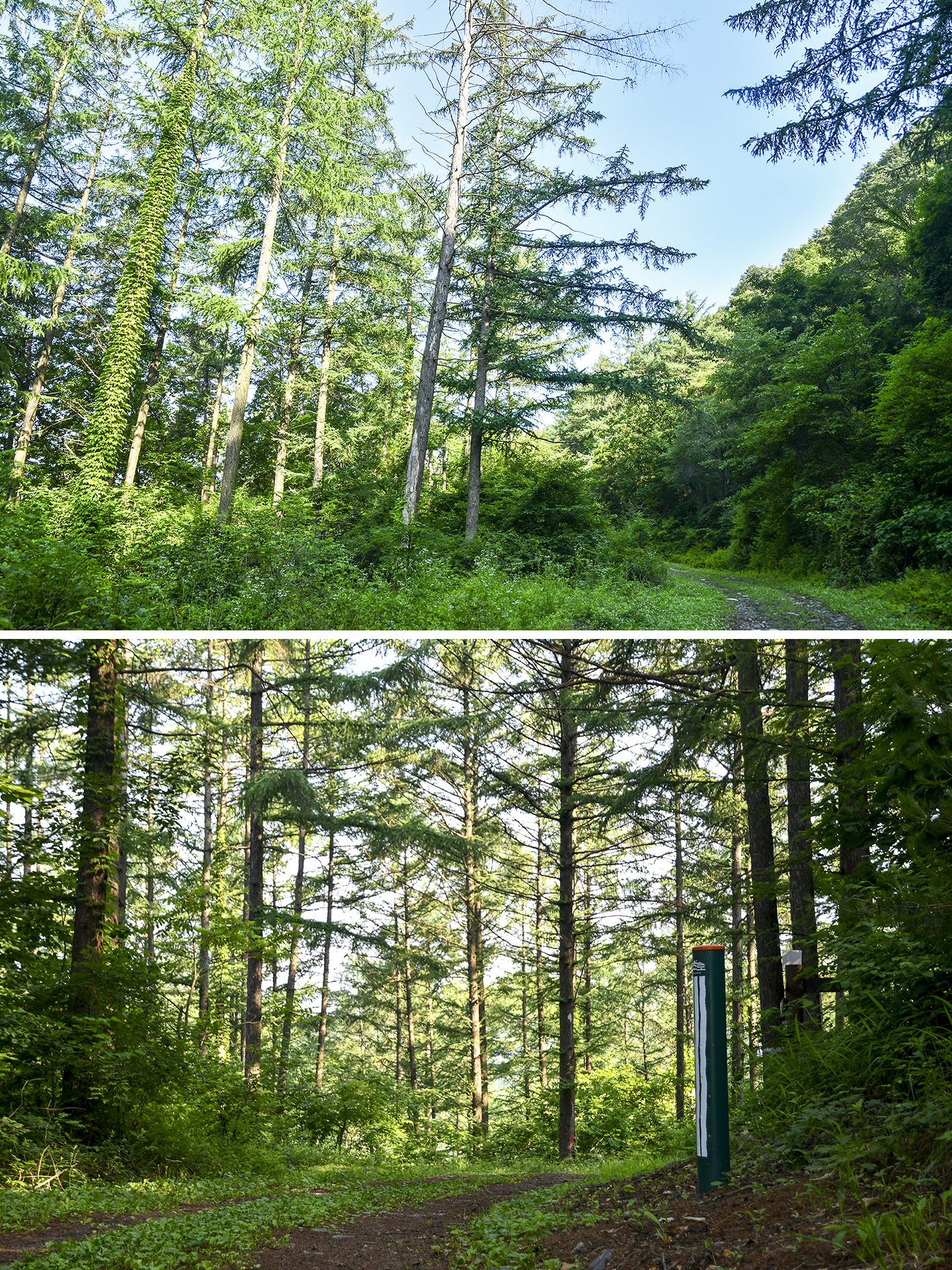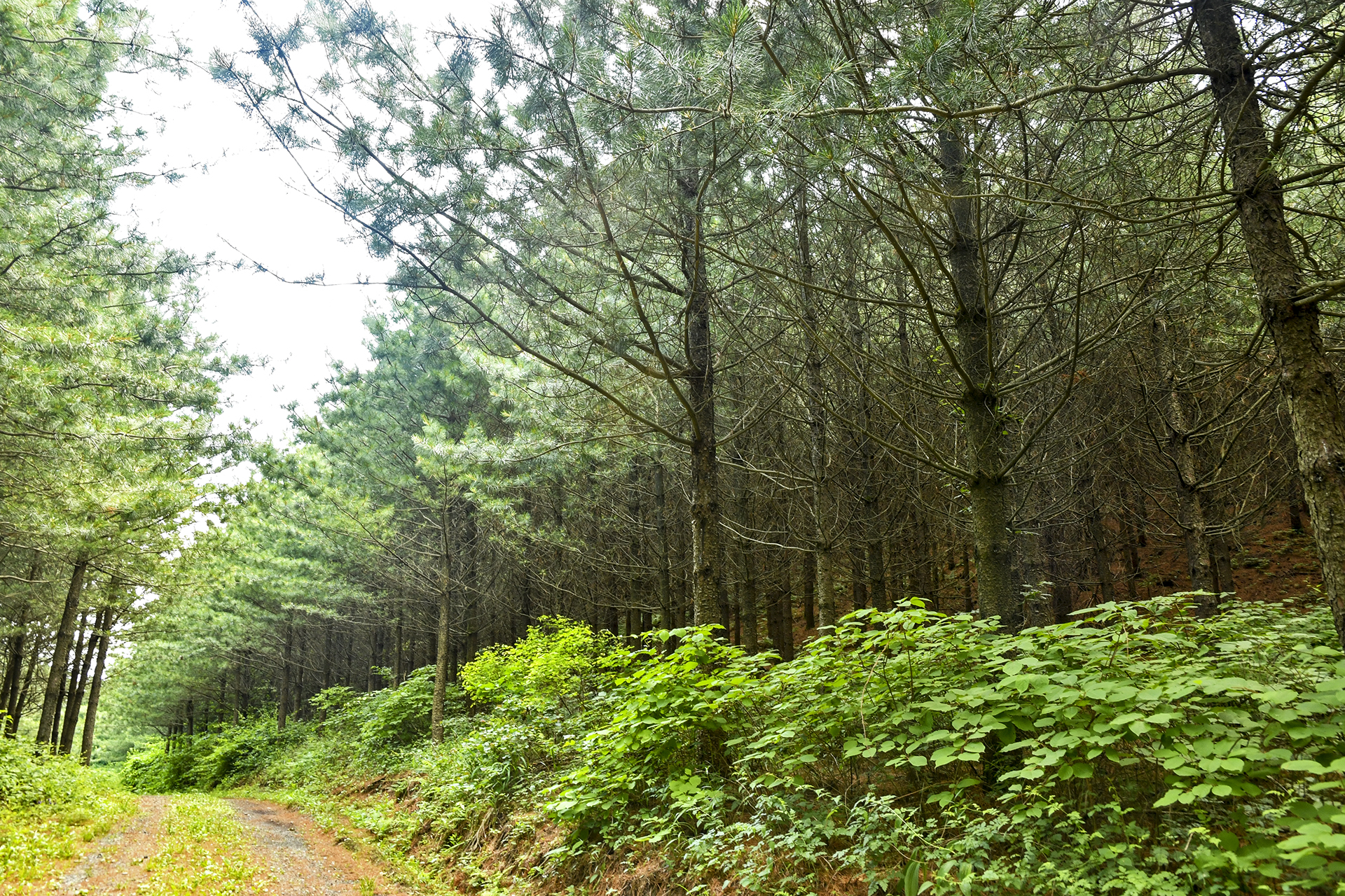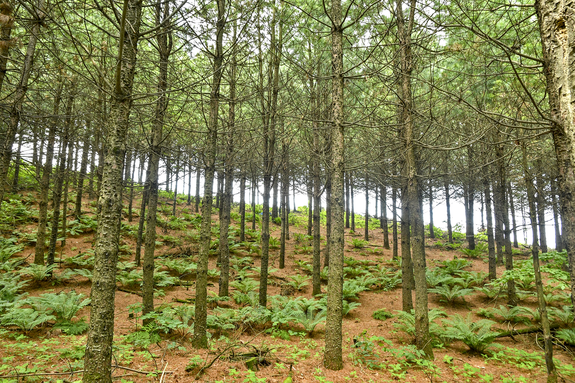 새롭게 조성되고 있는 잣나뭇 숲인듯 한데 나무 아래에는 잡풀 하나도 없이 잎이 큰 고사리만 있어 이색적인 풍경을 보여준다.