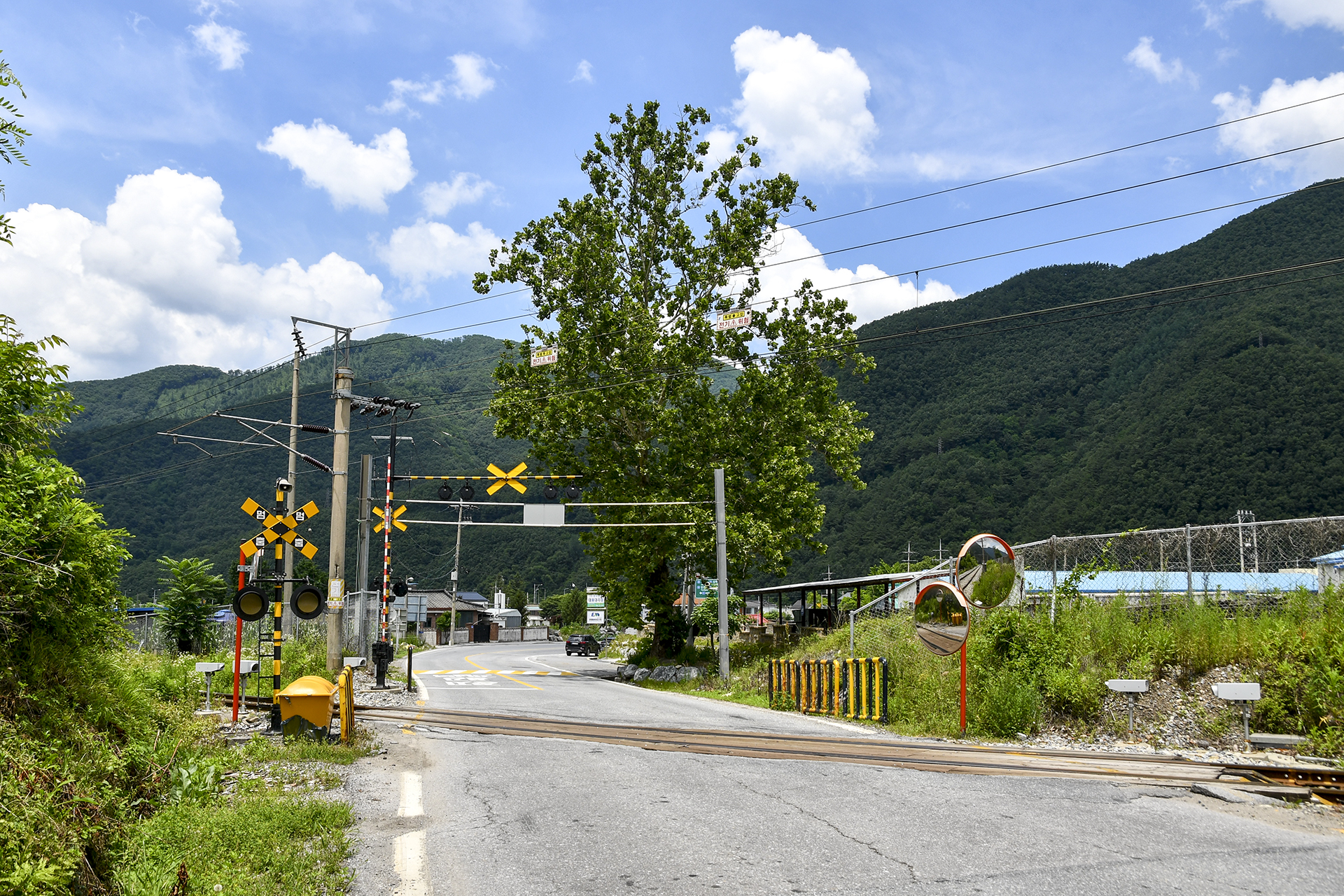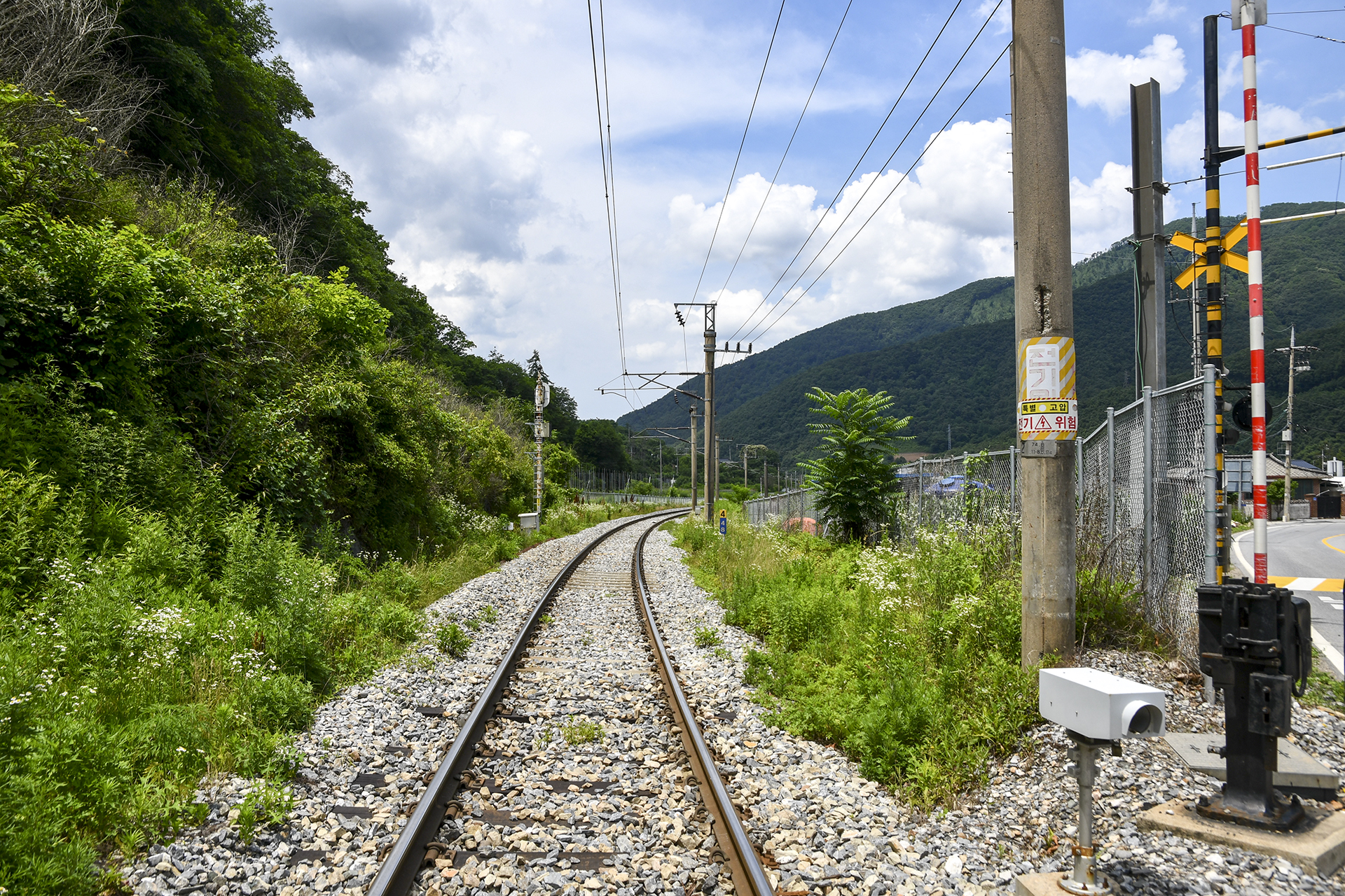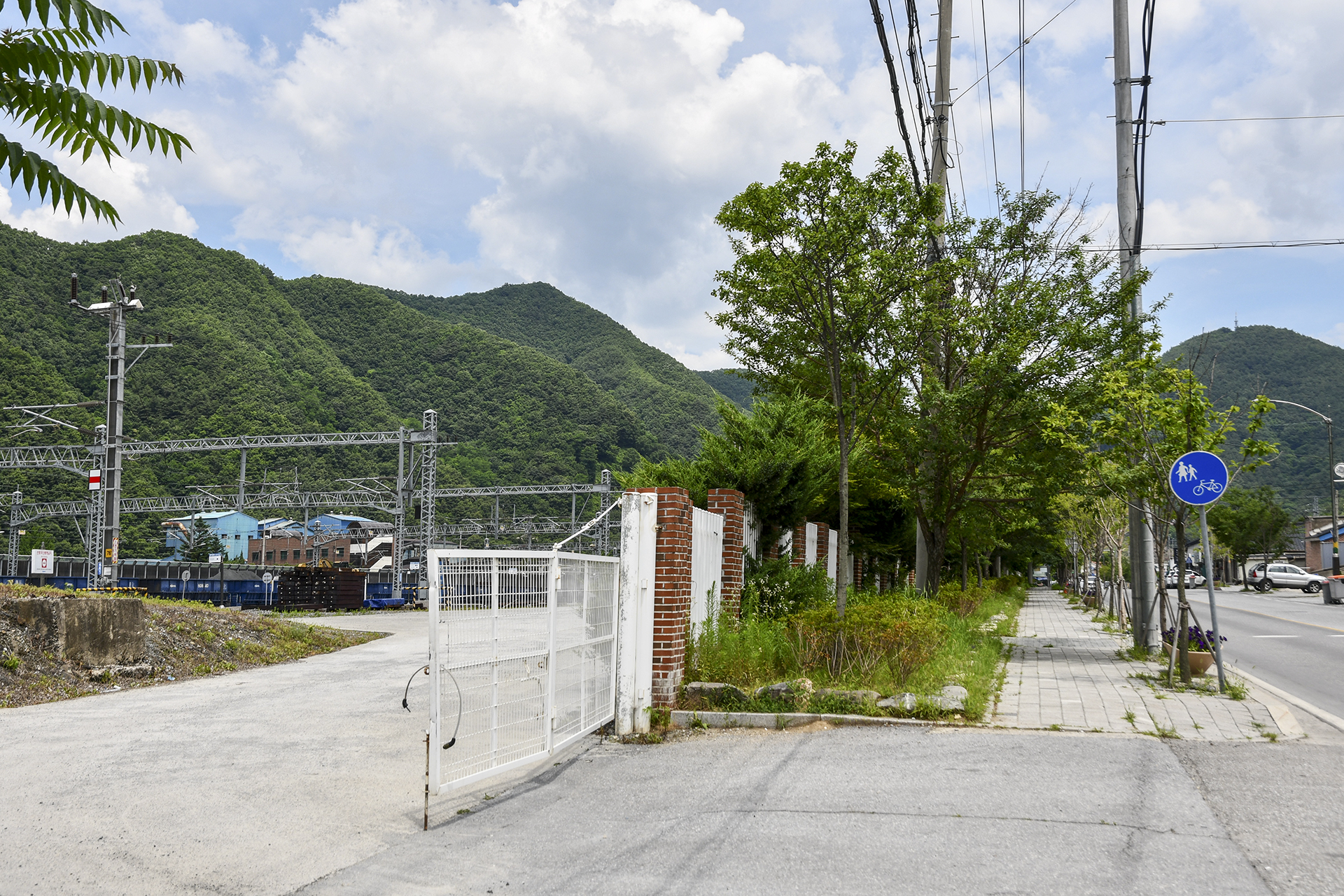 노일공원을 지나고 예미역의 철도창을 지나는 중