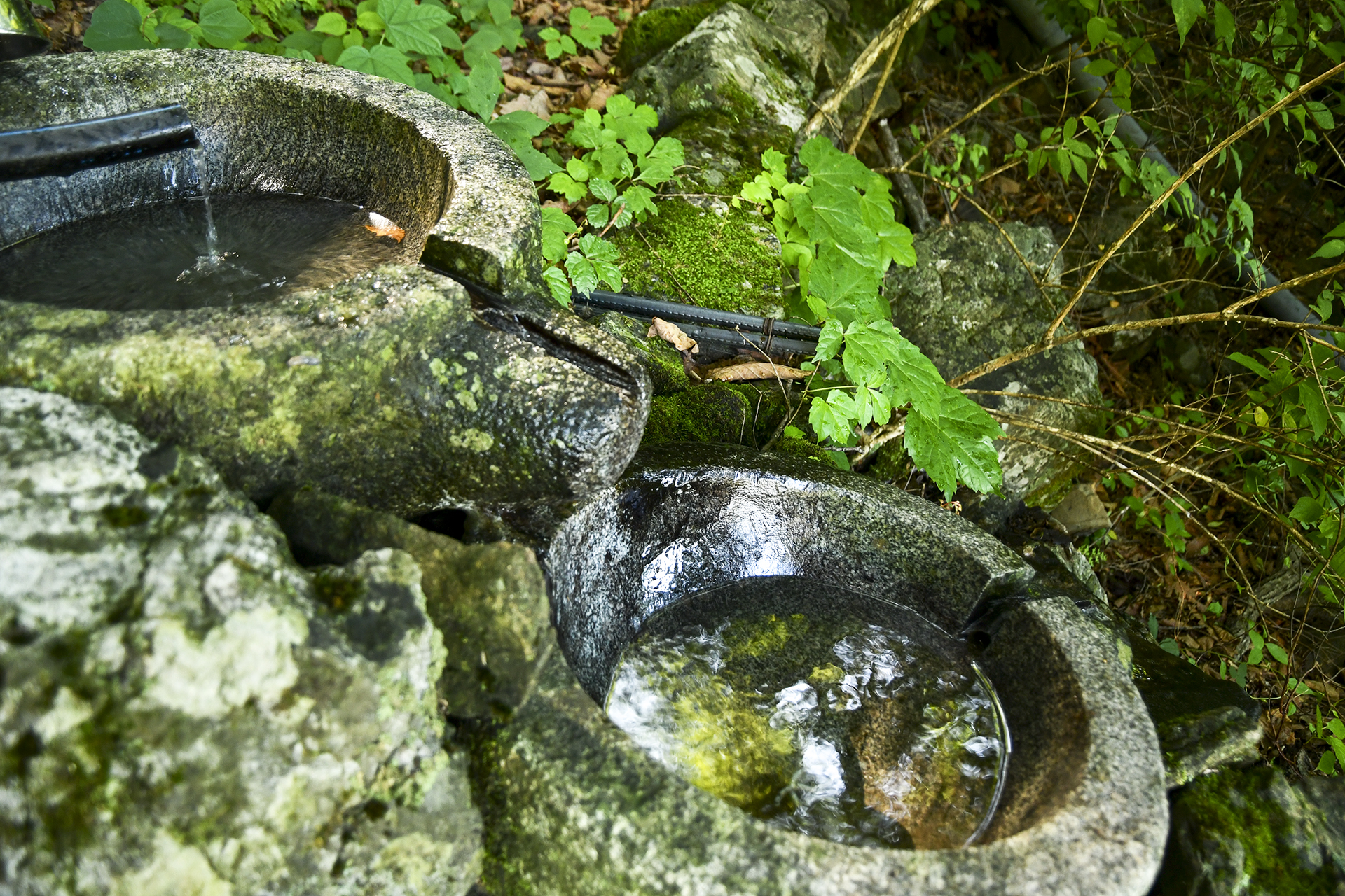 목욕탕 앞으로 갱도에서 흘러나온 물이 시냇물 소리를 내며 700m 거리에 있는 황금폭포로 흘러가고 있다.