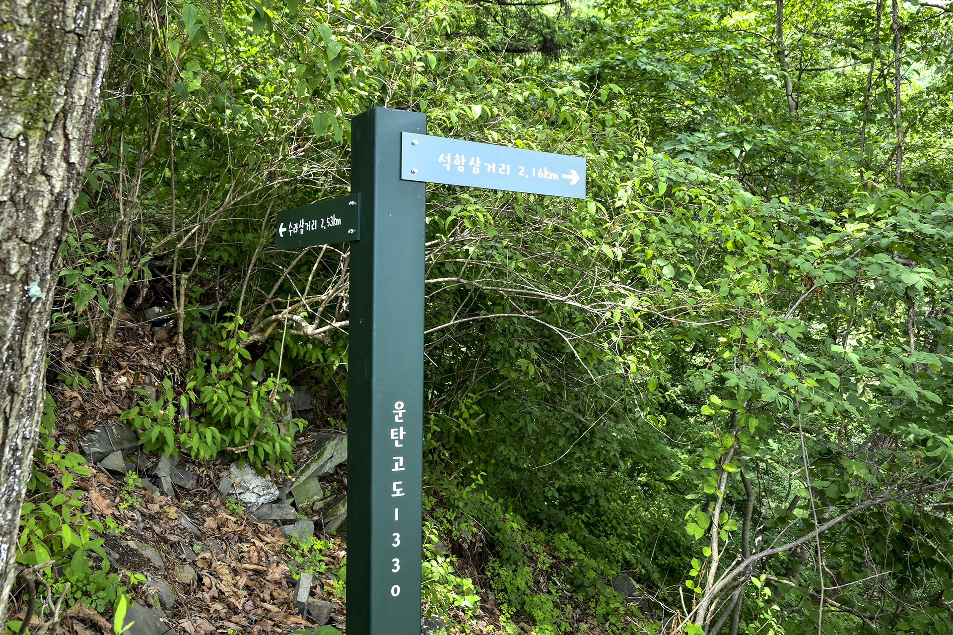 잠시후 다음 지점인 석항삼거리는 우측 숲으로 들어서야 한다.