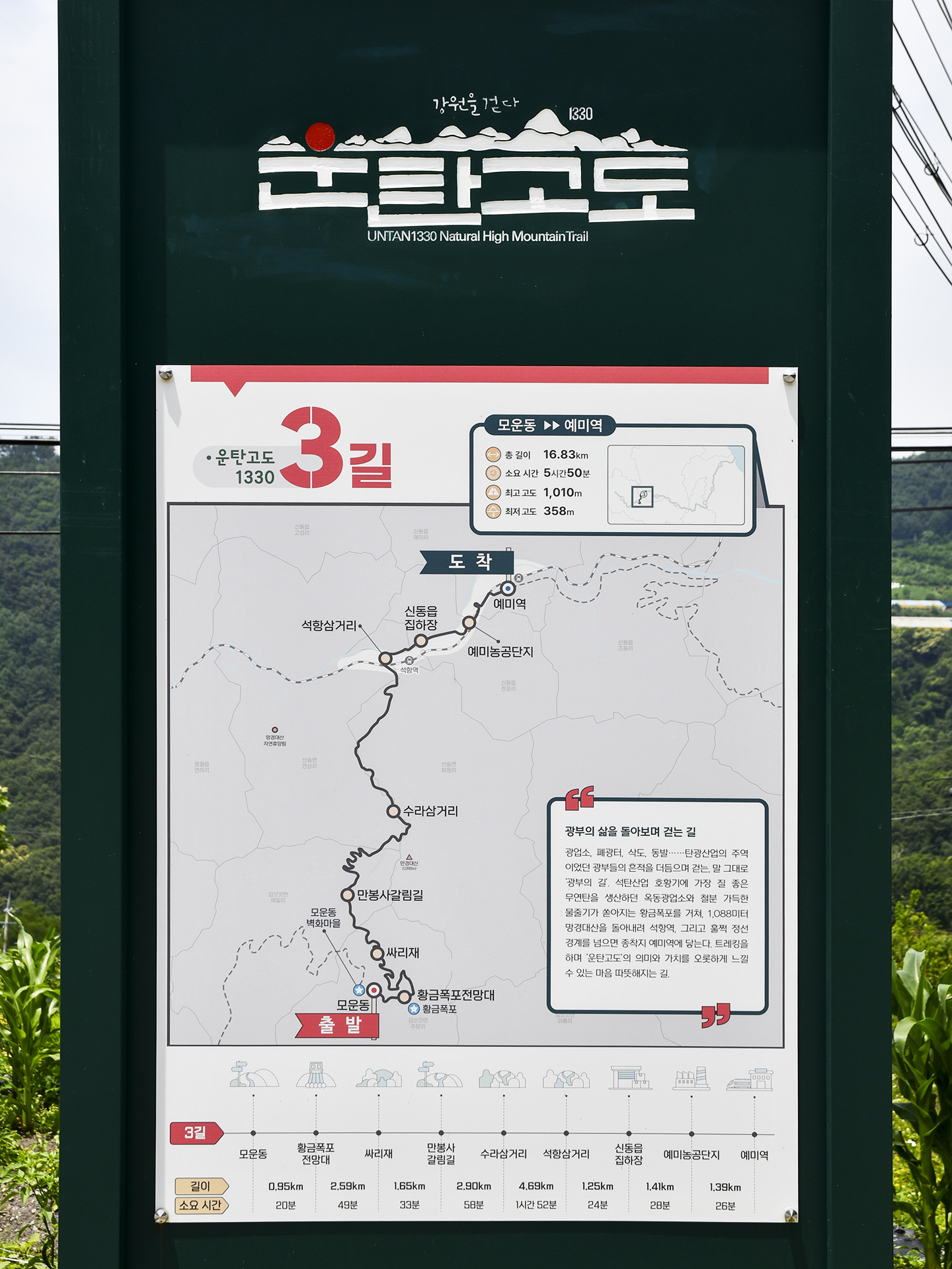 * 코스 초반에 탄광과 관련된 볼거리가 많고, 이후 수라삼거리까지 고도가 완만하게 계속 높아진다.