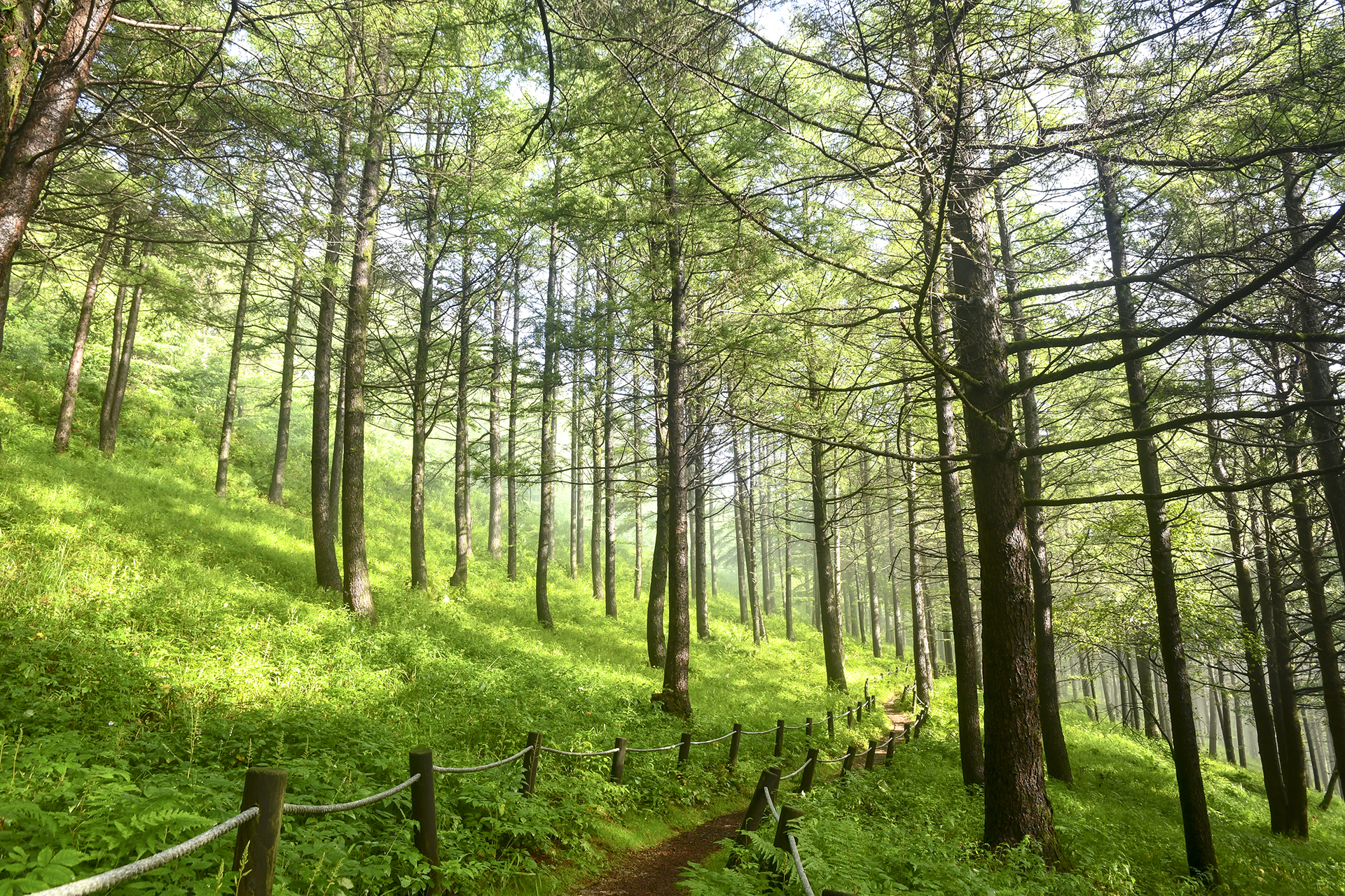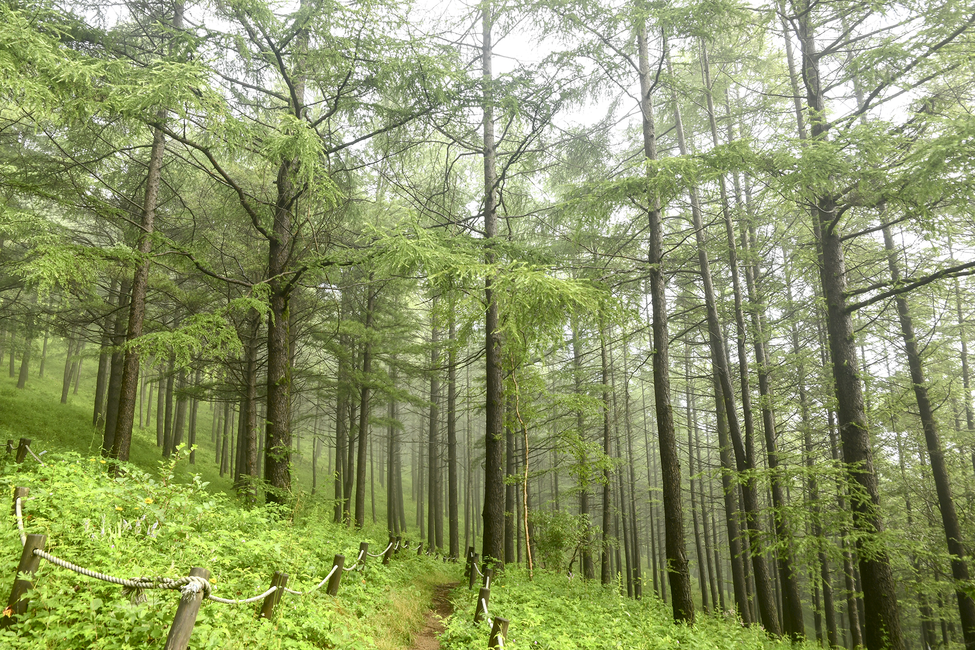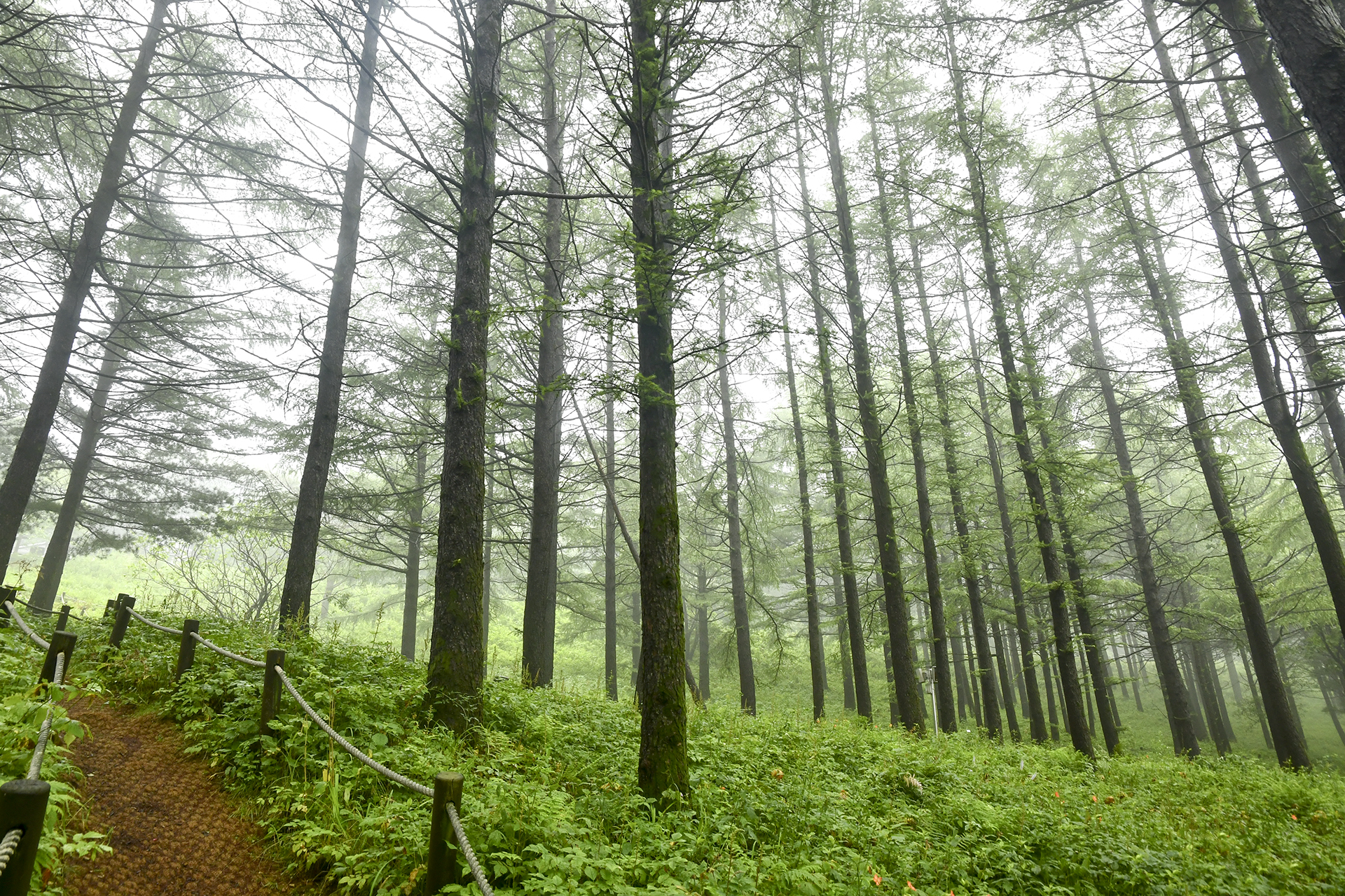 산상의 화원 입구에서 바라보는 낙엽송 숲은 그야말로 예술이다.
