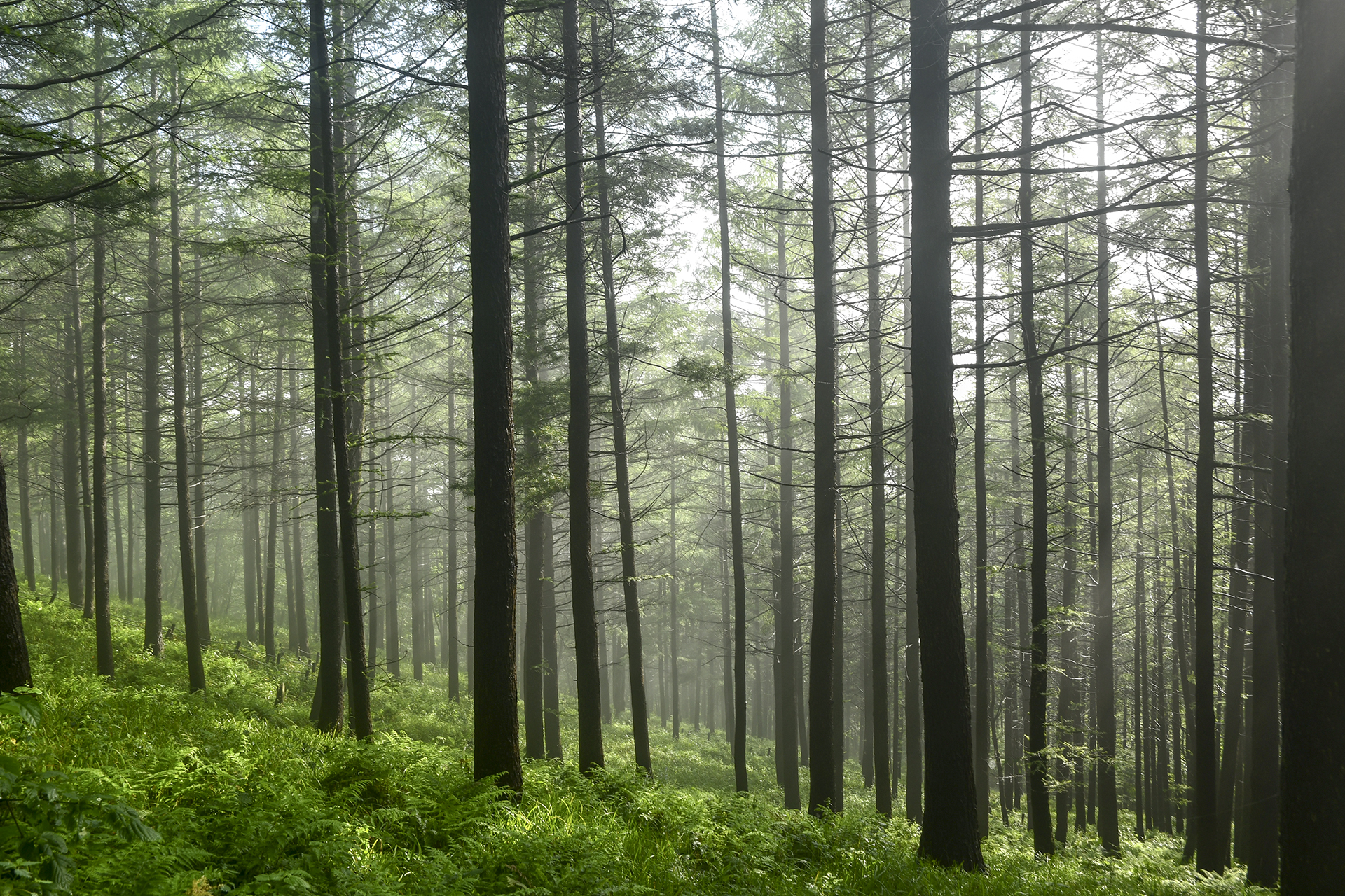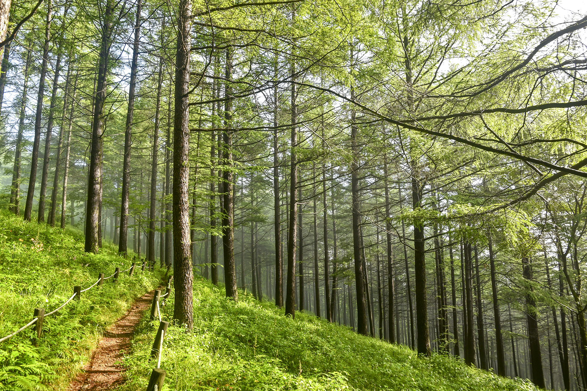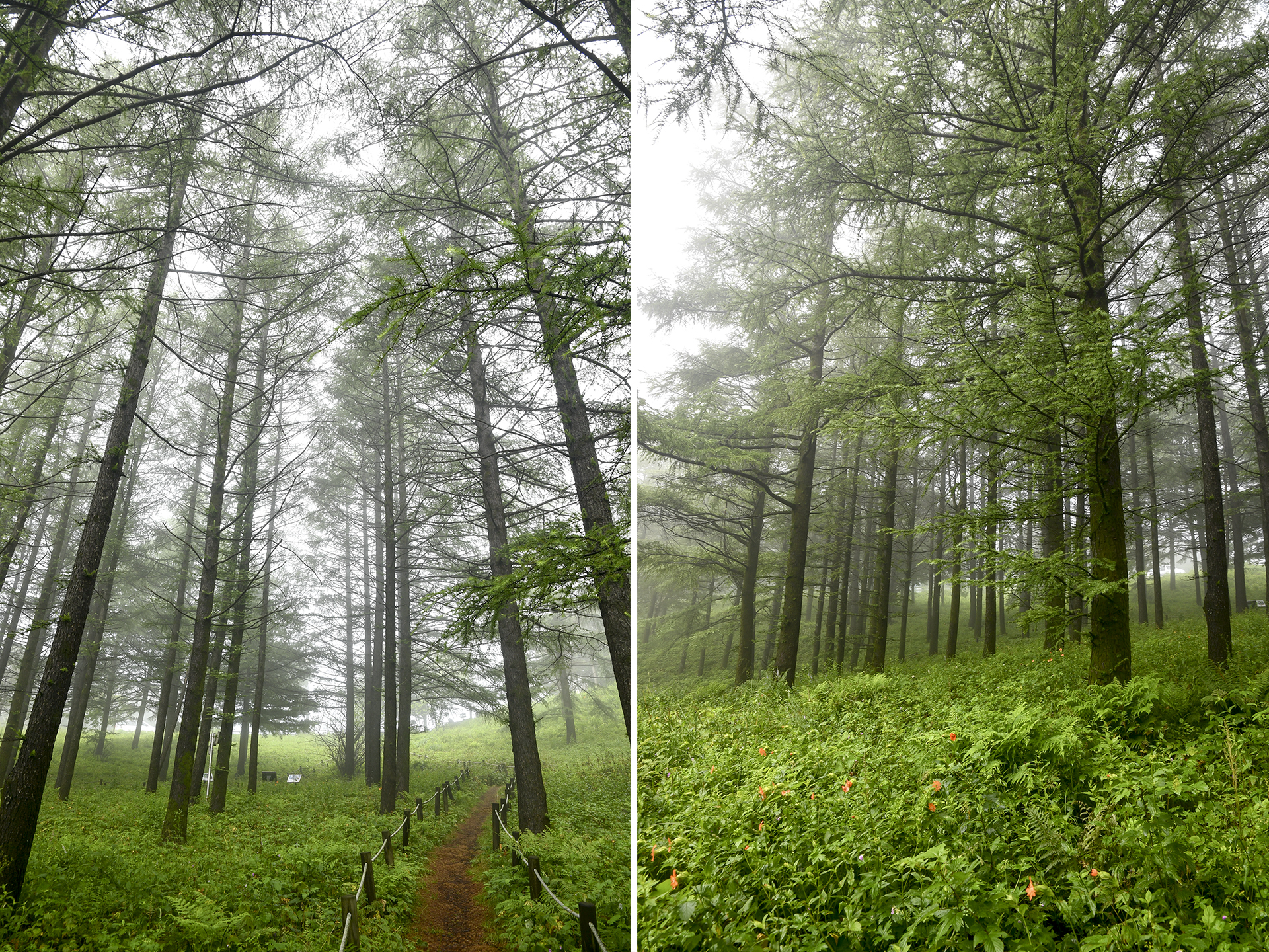 낙엽송 아래 숲을 수놓는 고사리도 볼만한 풍경이다.