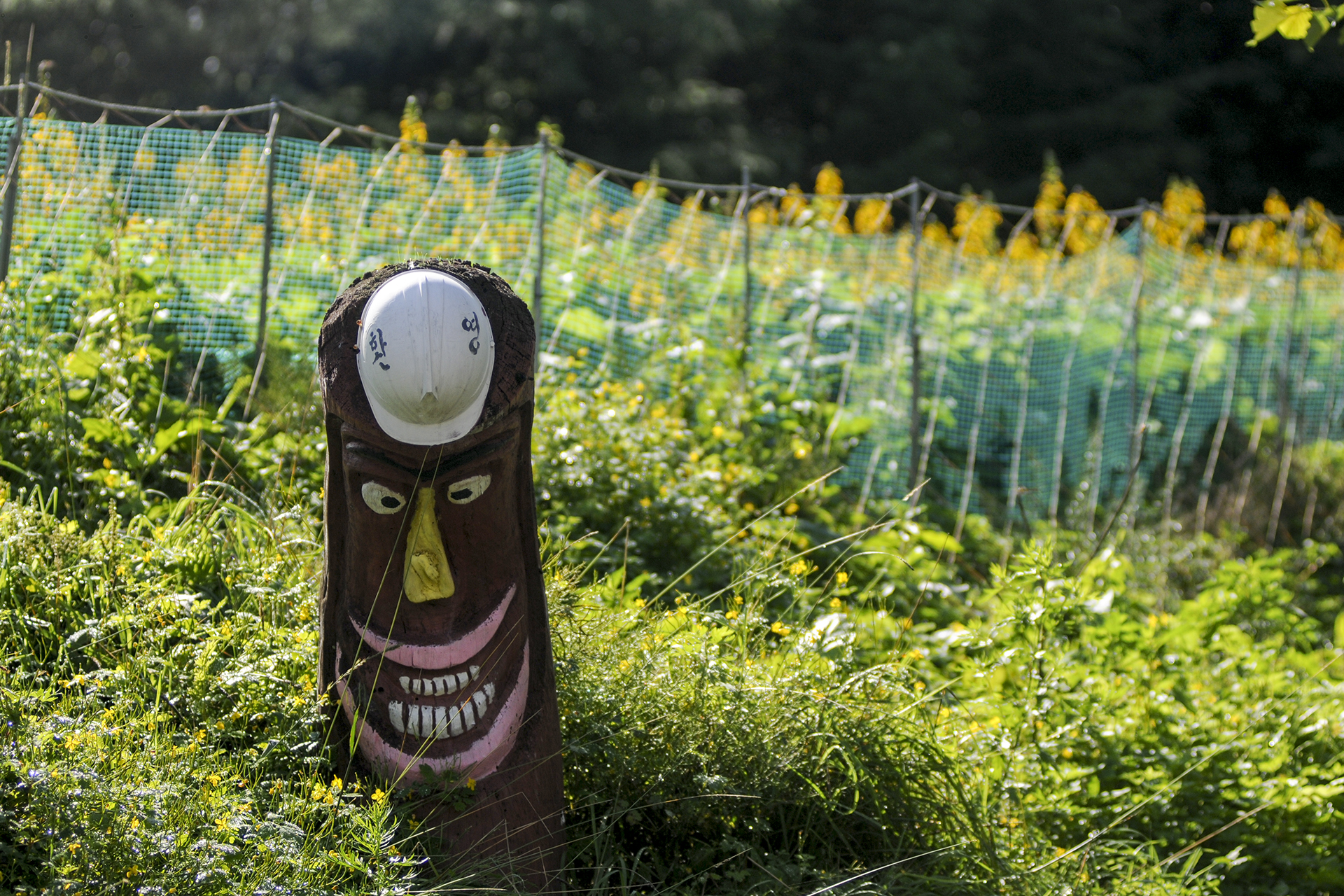 익살스러운 장승의 마중을 받고,