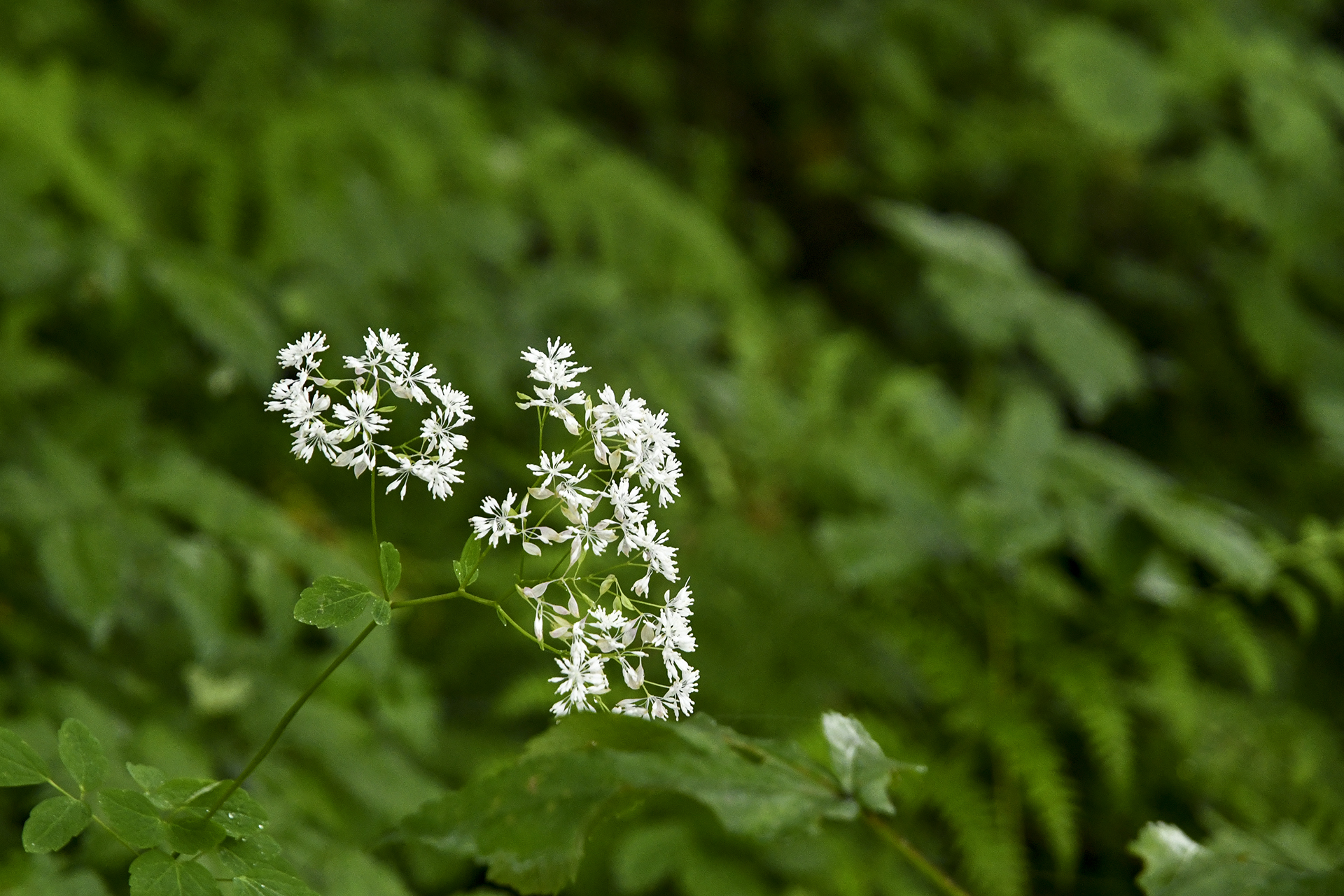숲에서 반짝이는 별을 만난 듯한 이 흰 꽃은 산꿩의다리라고 한다.