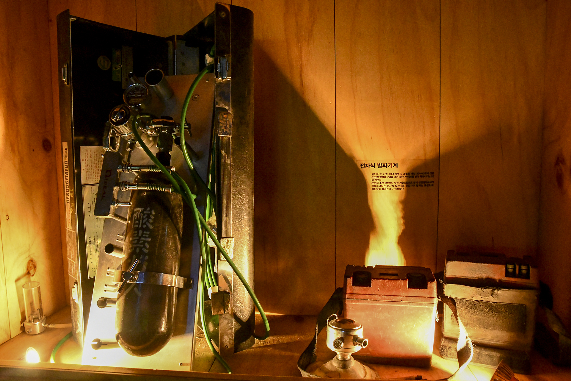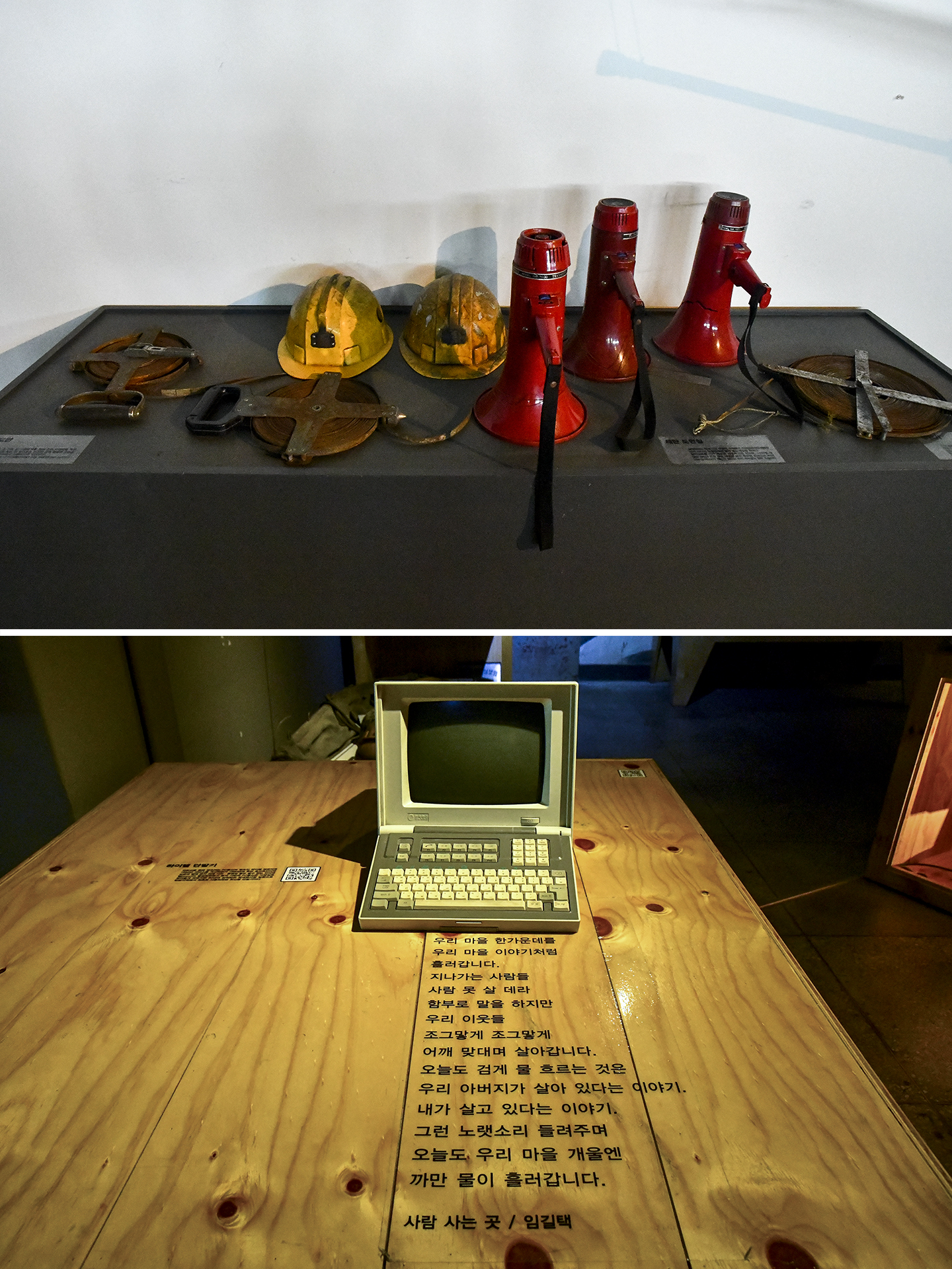 무전기와 하이텔 단말기를 쓰던 컴퓨터, 각종 공기장치와 전자식 발파기계들을 전시해 놓았다.