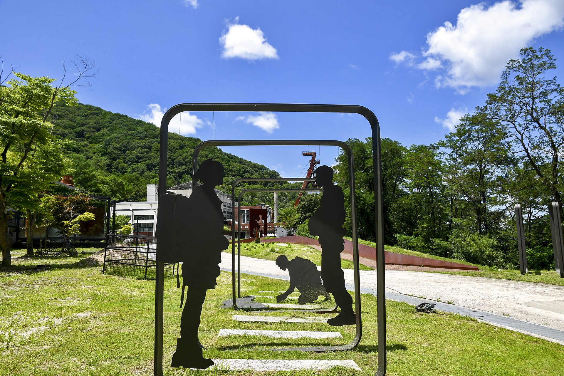 야외 전시장인 기억의 정원은 지하 채탄 현장에서 희생돤 광원들을 추모하고 기억하는 공간이다.