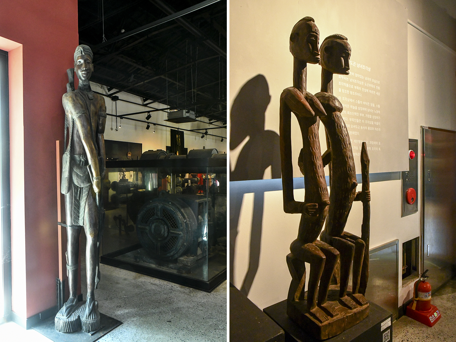 오른쪽 도곤 남녀조각상은 계란형의 머리, 과장하여 표현된 여인의 가슴 등 도곤부족 조각의 특징을 그대로 보여준다.