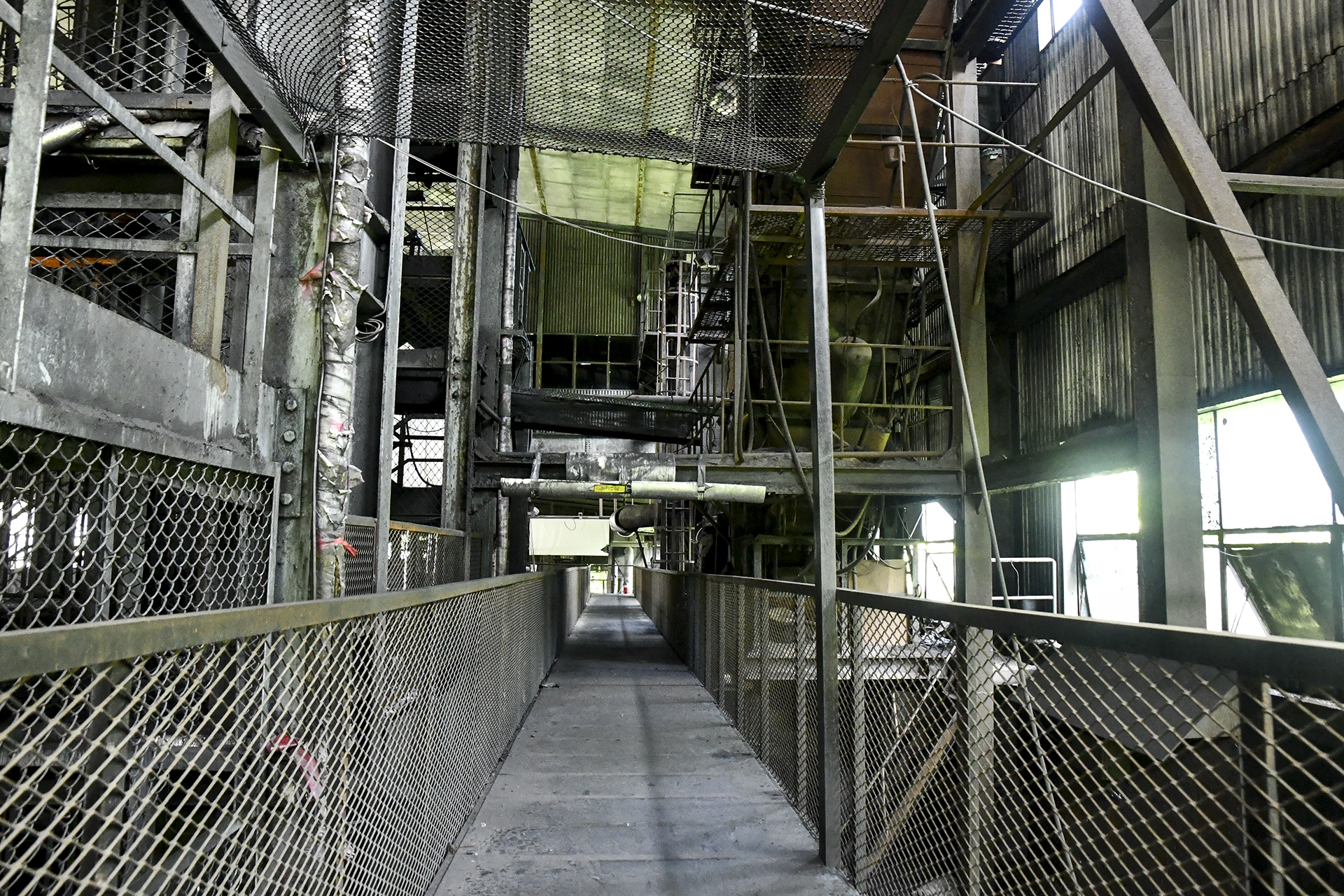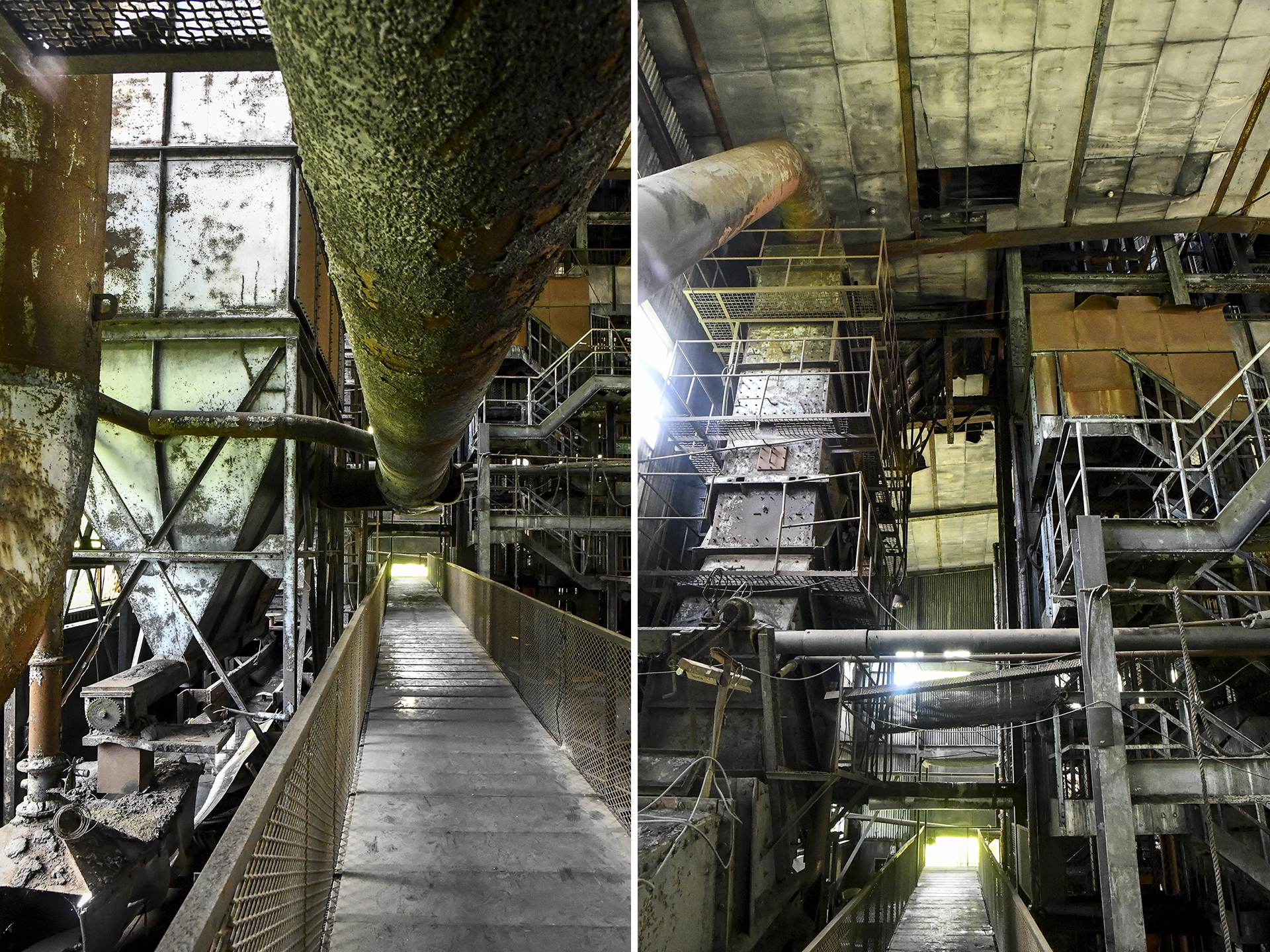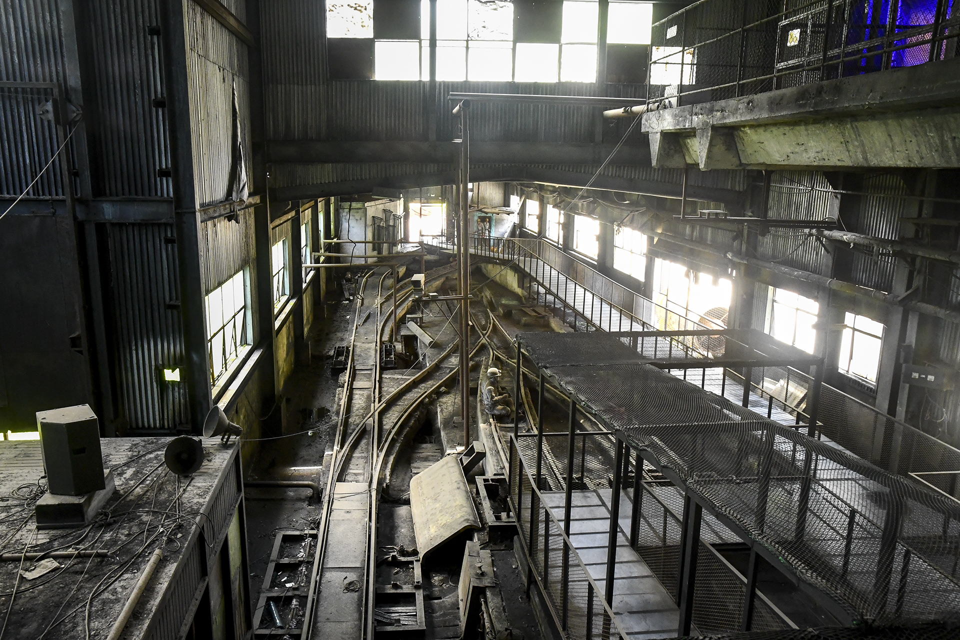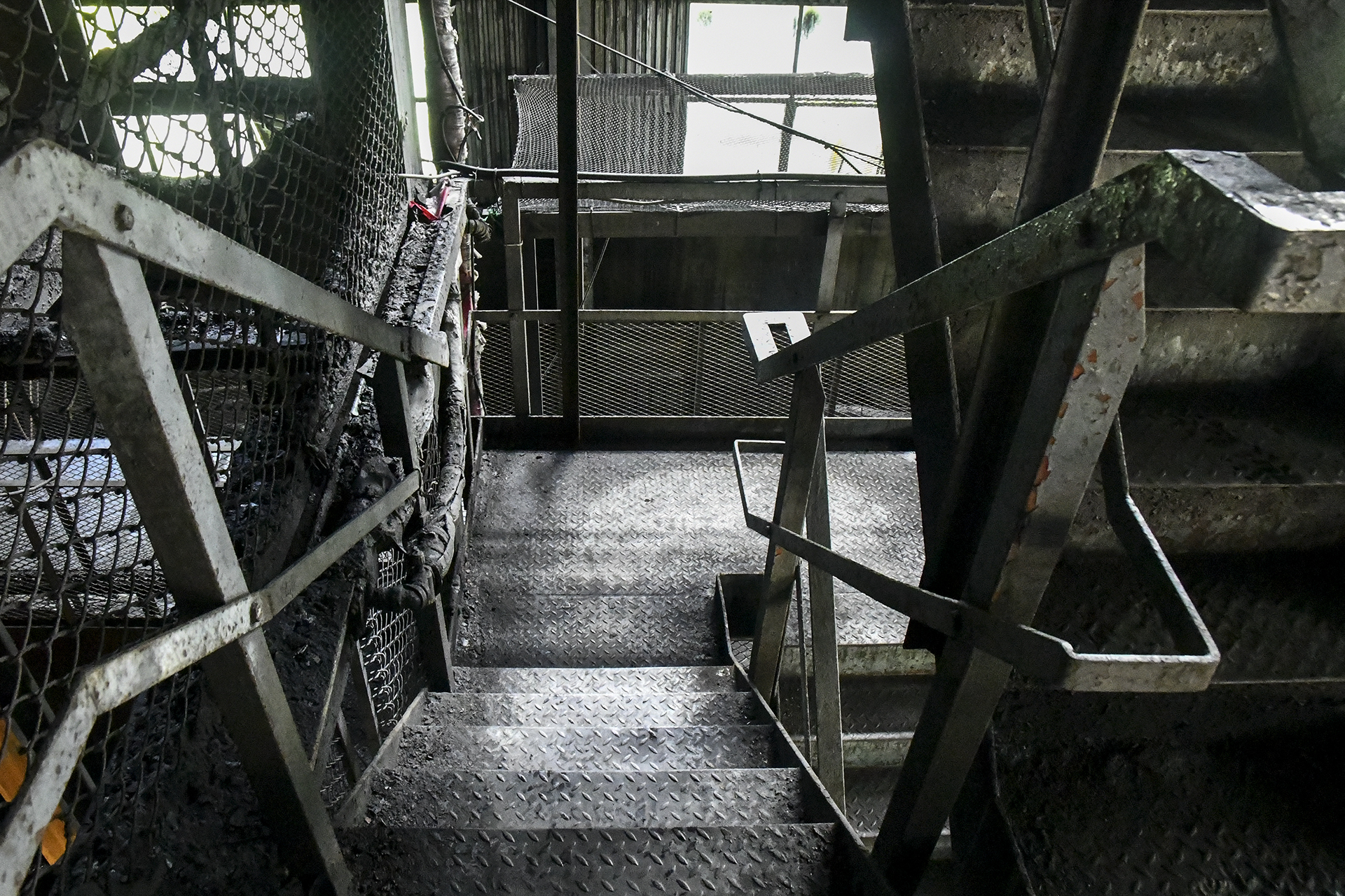 옆 철망에는 기름 때와 범벅이된 석탄가루가 덕지덕지 붙어 있고, 밟으면 금방이라도 분진이 날릴듯 하다.