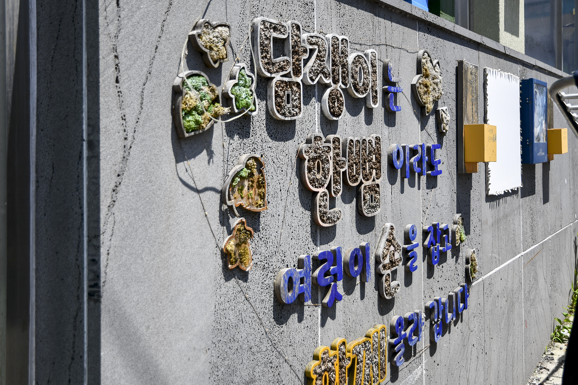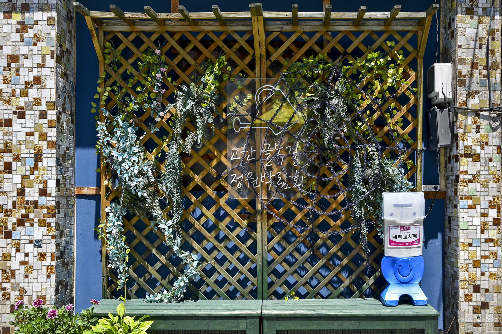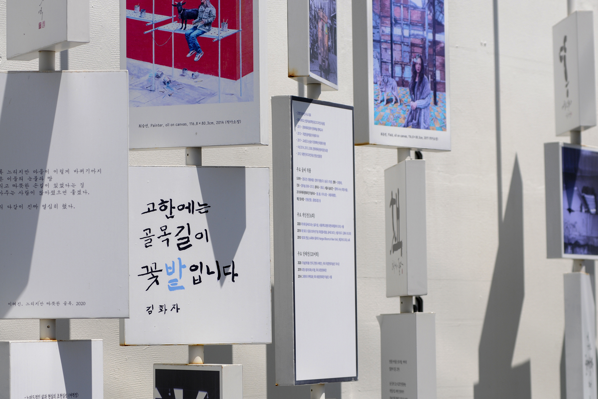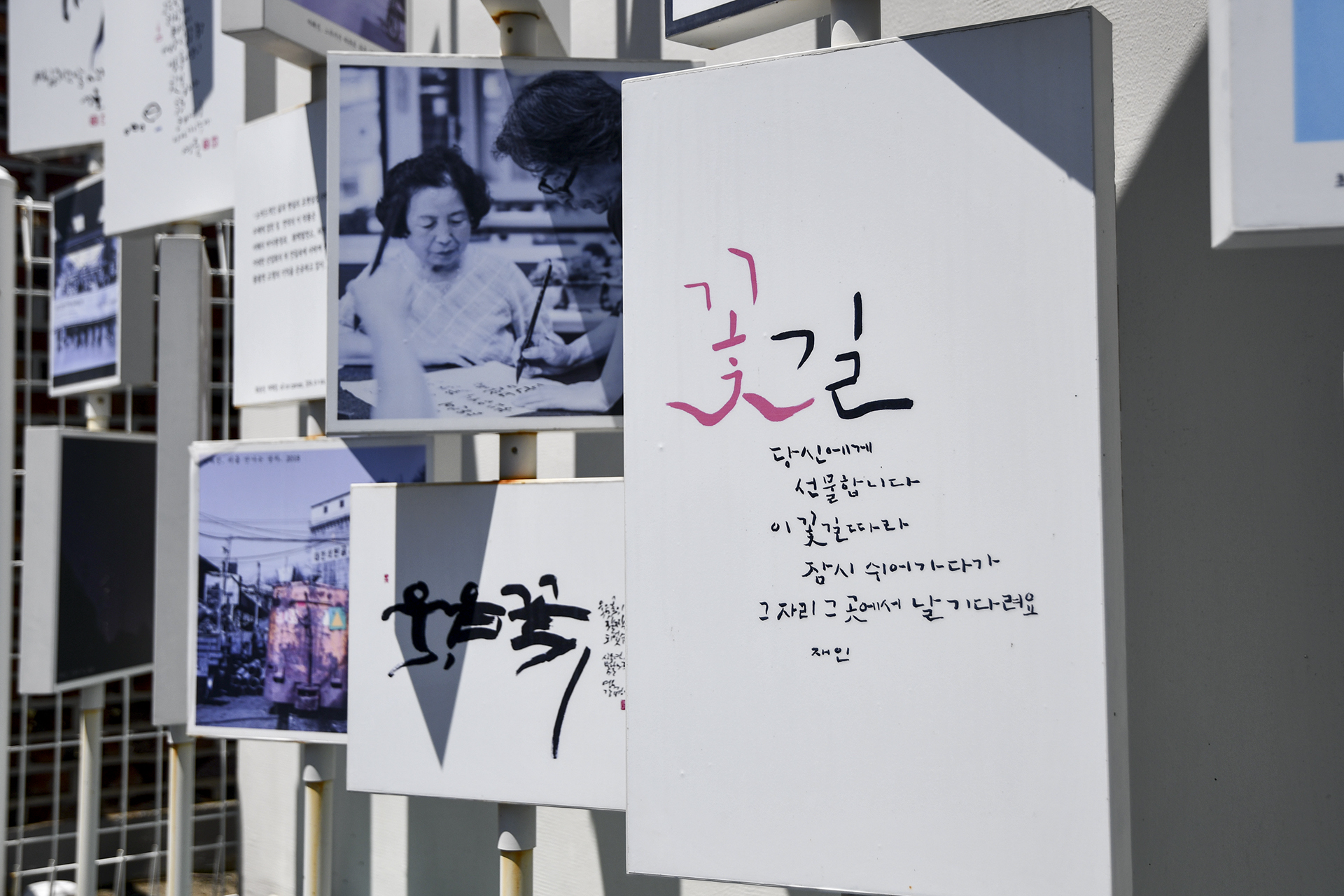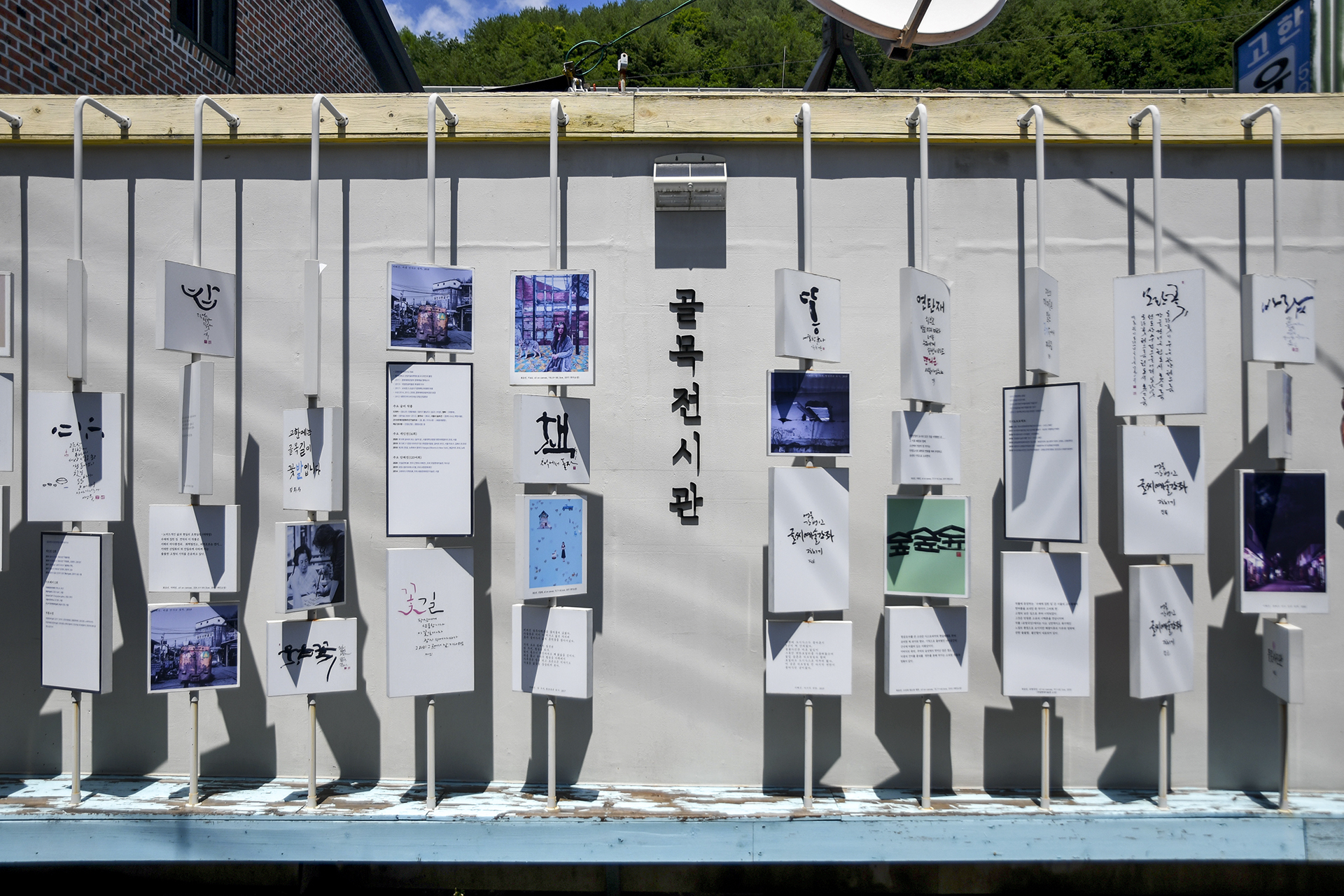 골목정원의 핫플레이스로 소개한 골목전시관의 모습, 마을 주민들의 다양한 캘리그라피와 사진들이 전시되어 있다.