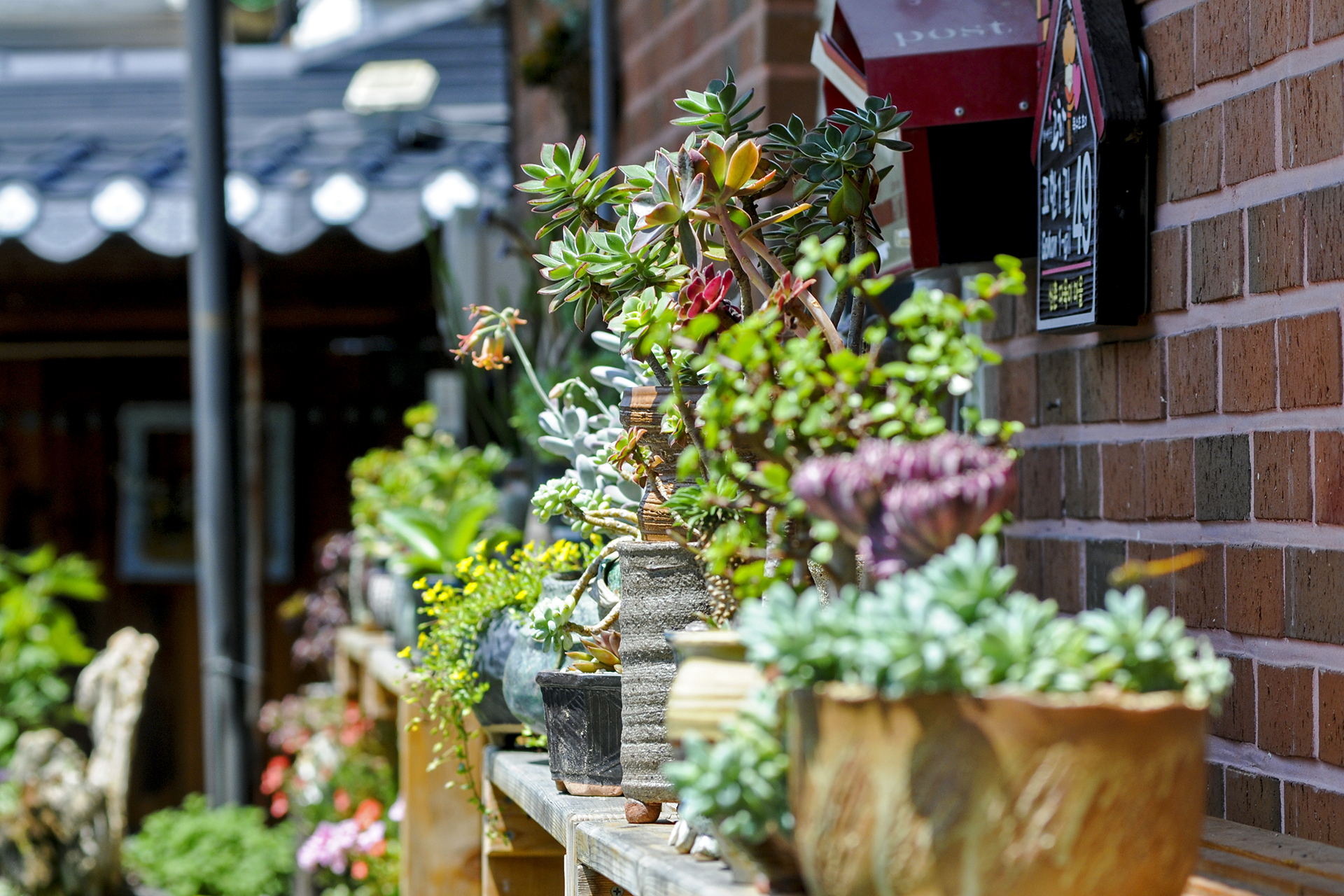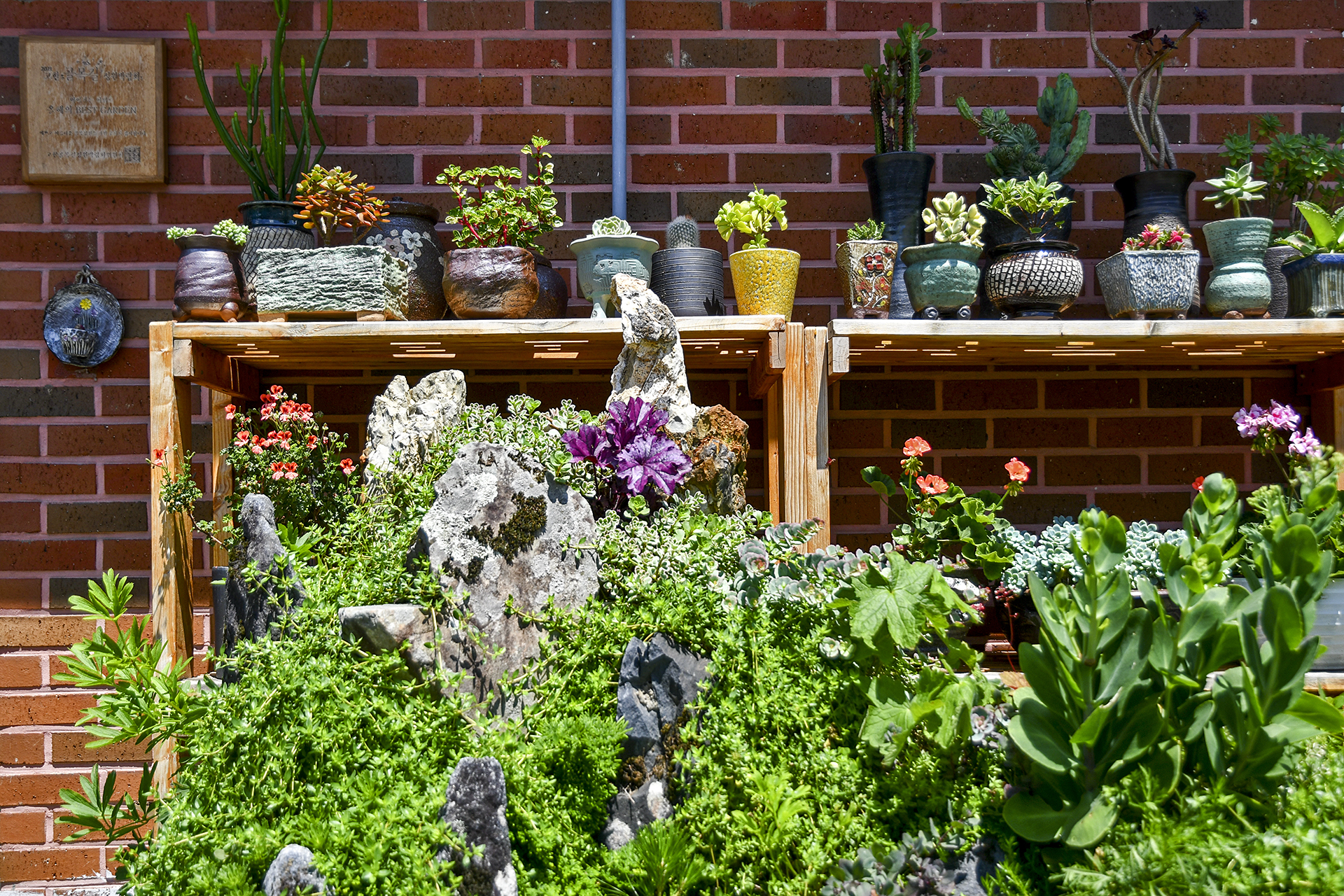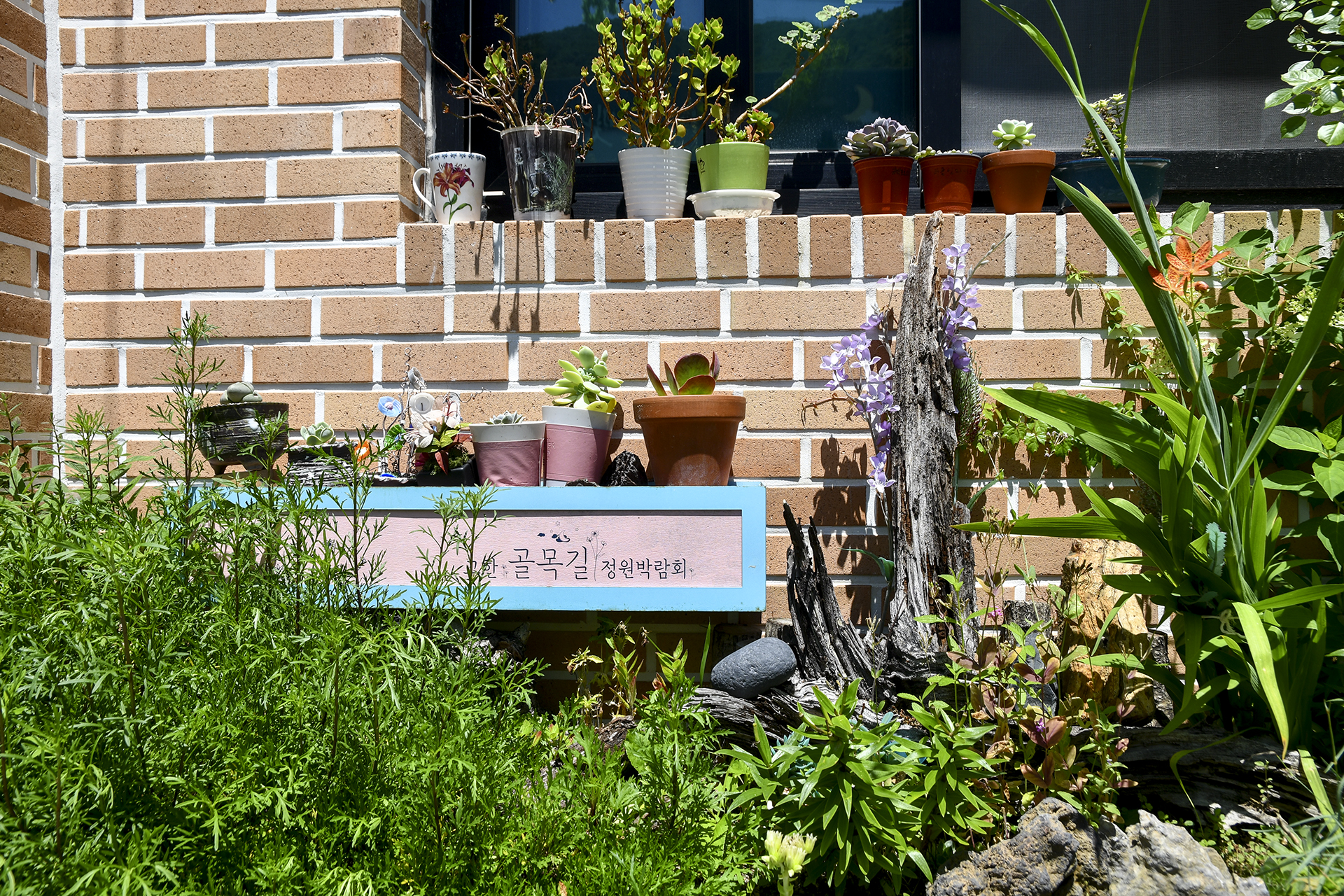 햇빛 잔뜩 머금은 근육질 다육이들과 야생화 화분들이 멋진 정원을 이루었다.