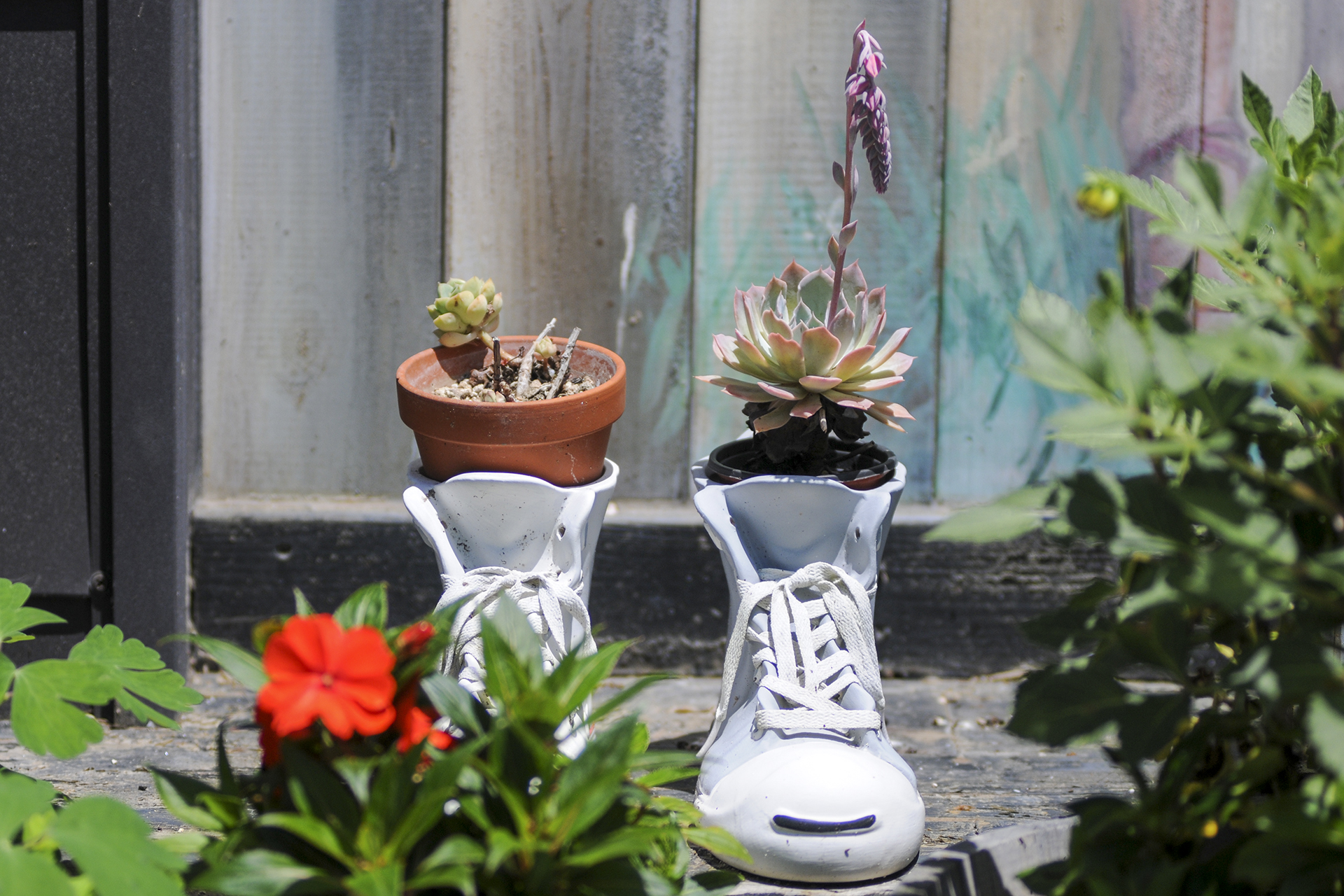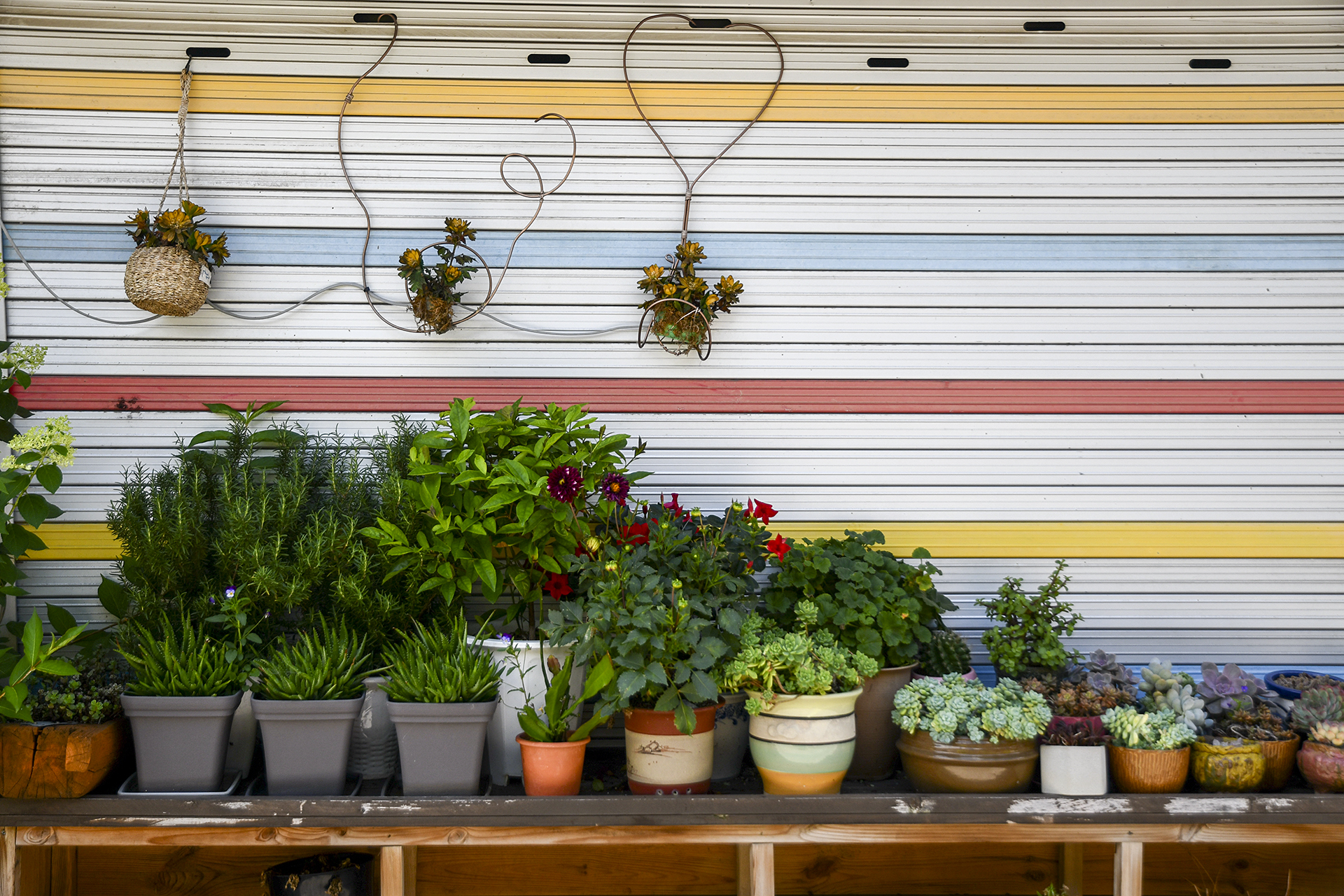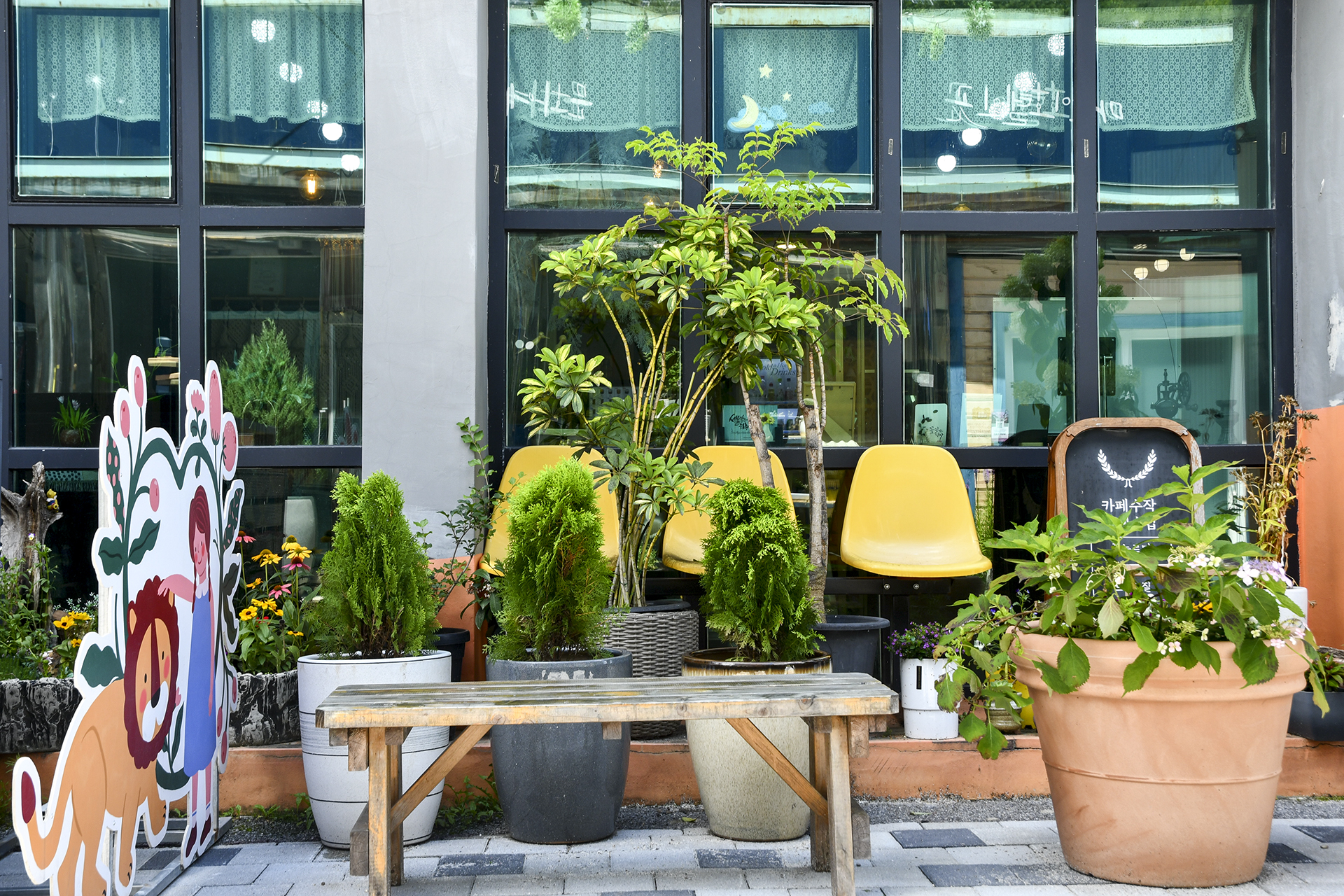 햇빛 잔뜩 머금은 근육질 다육이들과 야생화 화분들이 멋진 정원을 이루었다.
