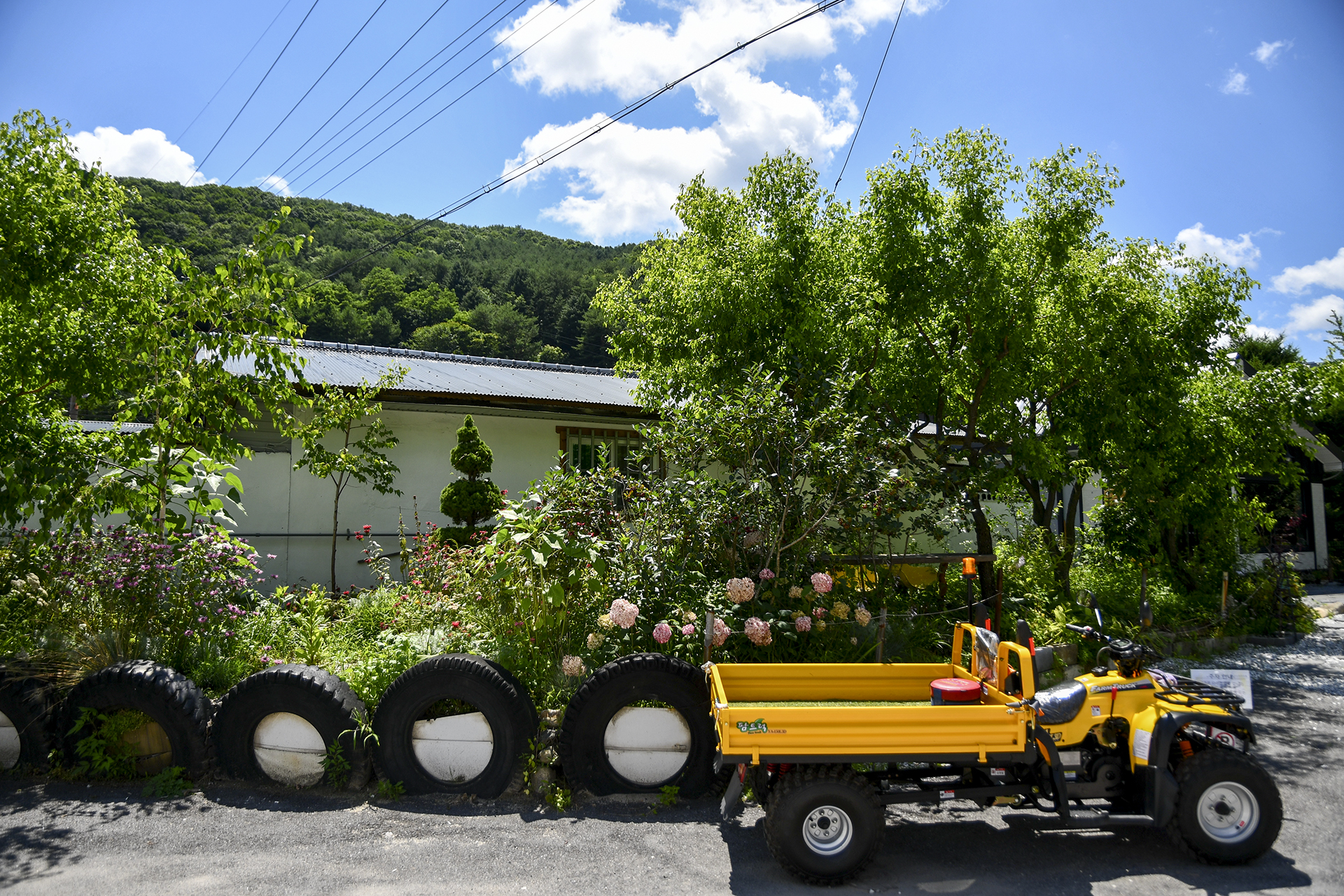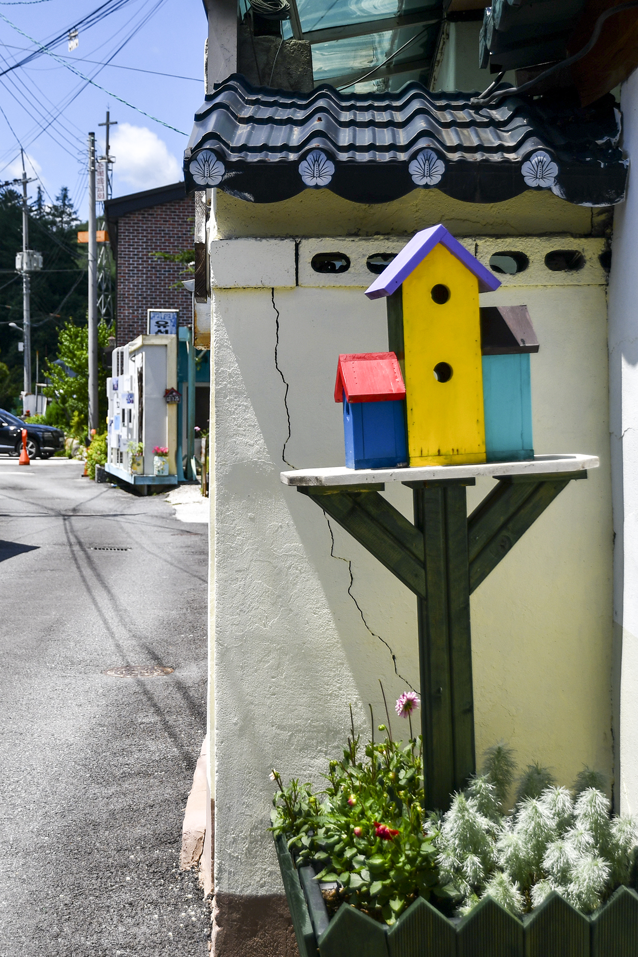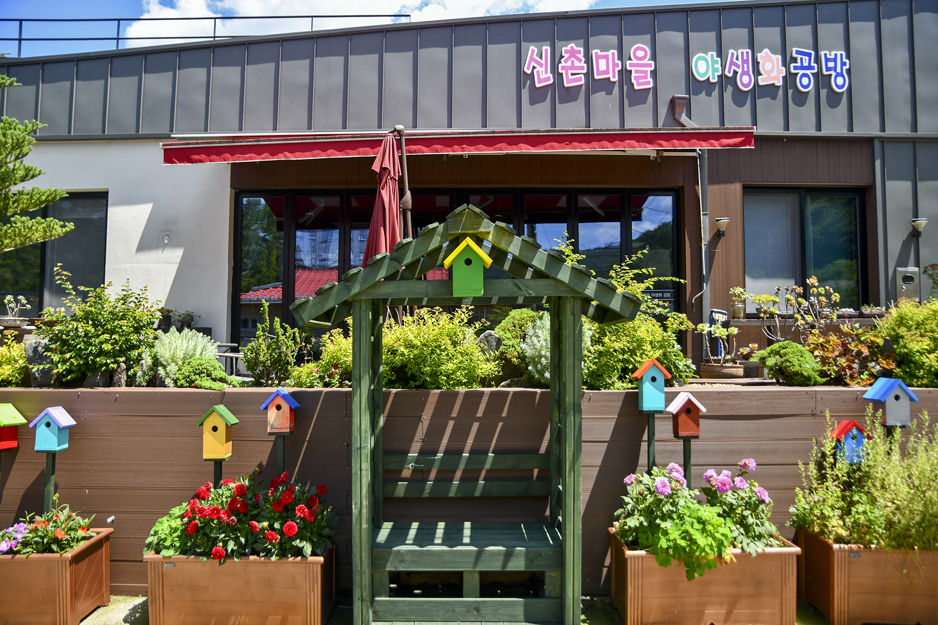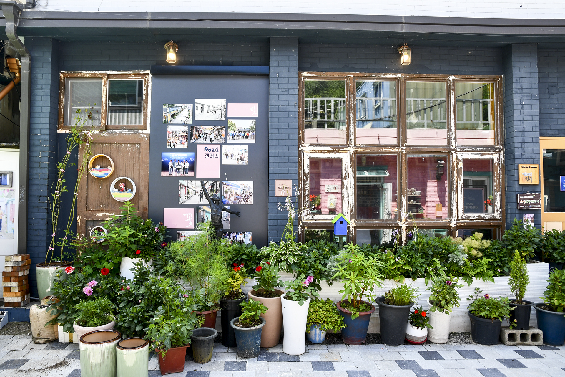 소박하게 꾸며진 길거리 갤러리와 작가의 정원이 아름다운 마을회관의 풍경이다.