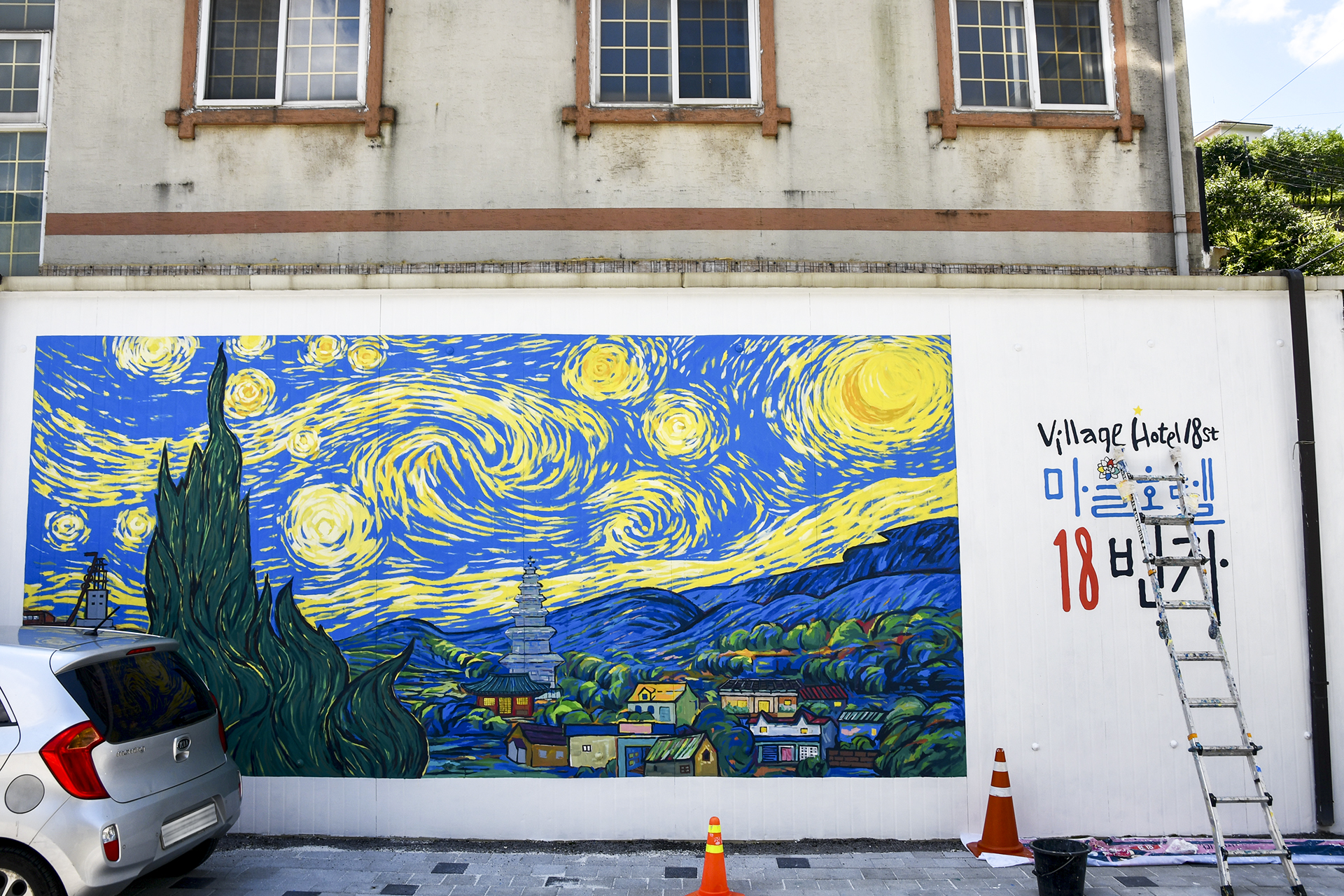 입구에는 벽화작업이 진행중이다.