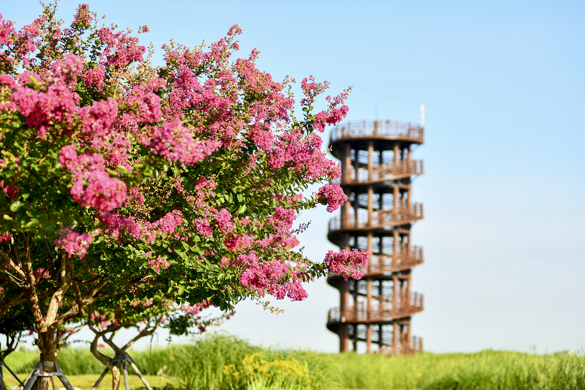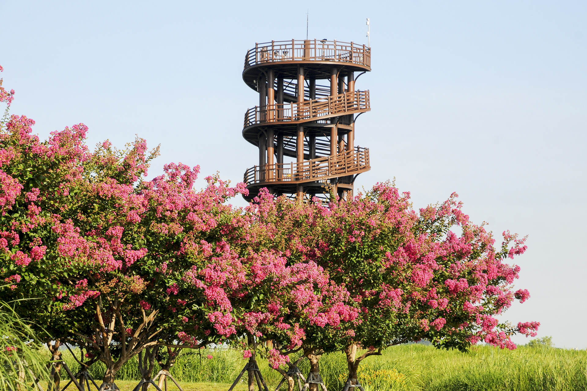 저멀리 보이는 흔들전망대로 가 배롱나무 꽃을 만나보자.
