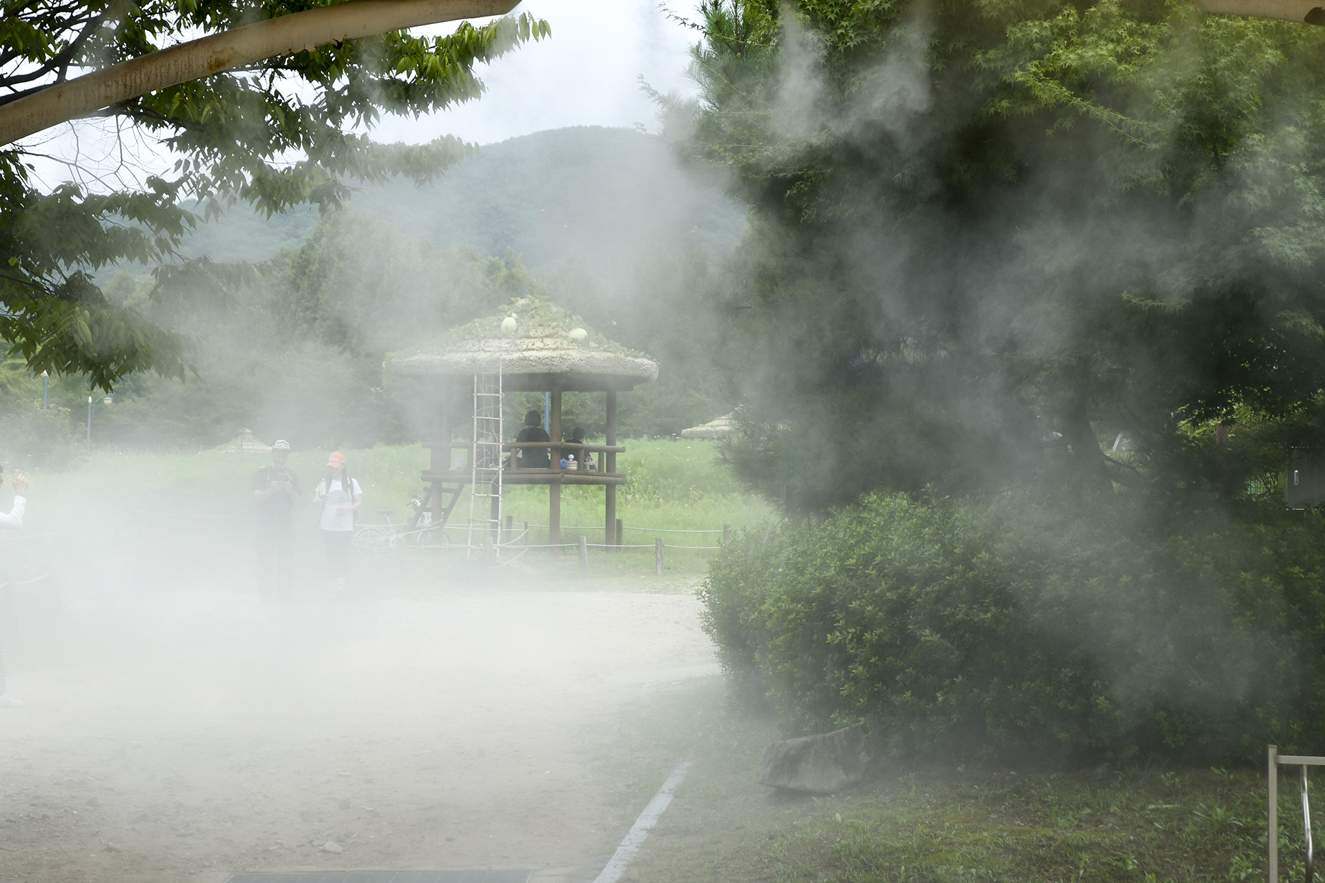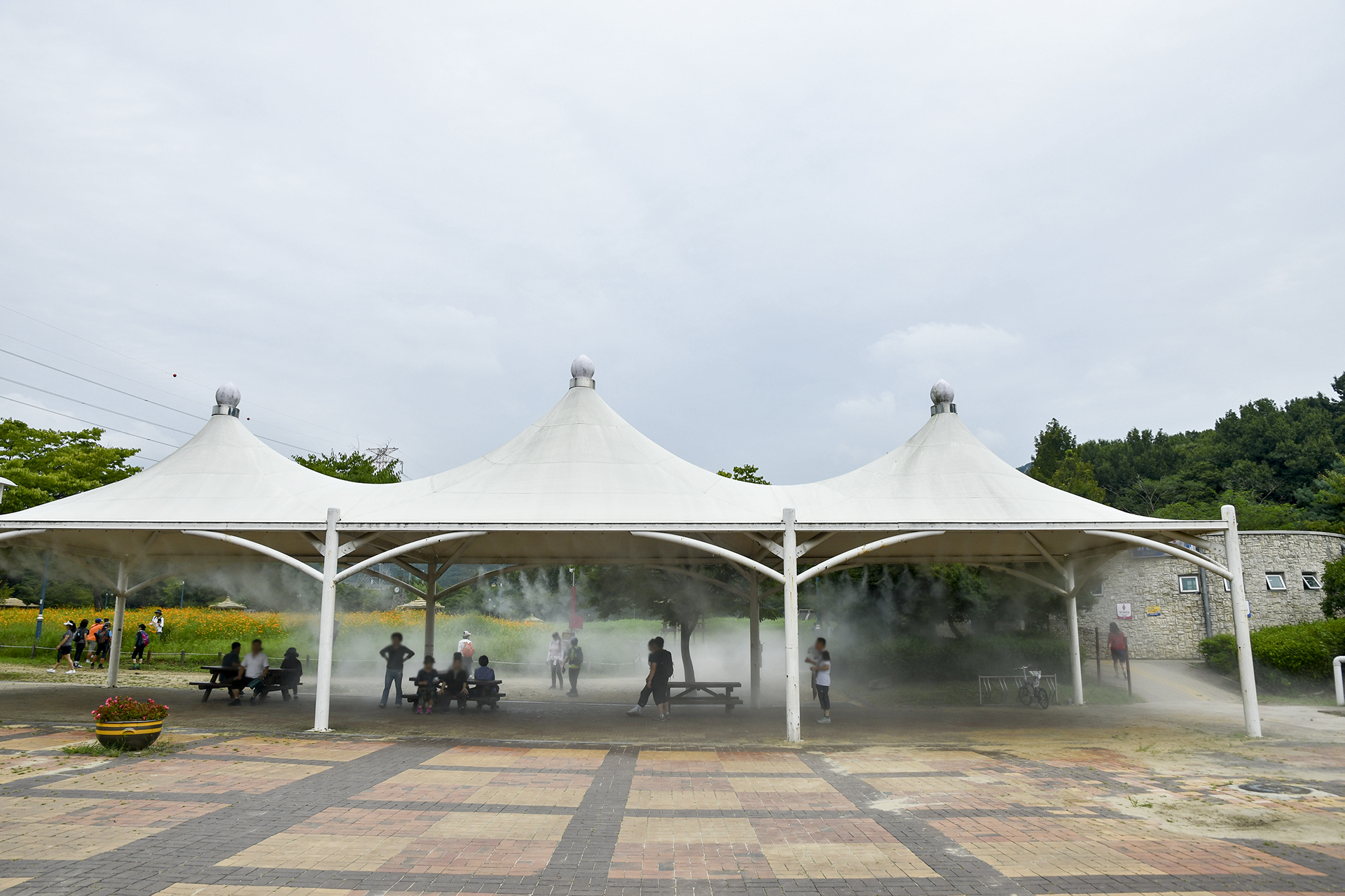 작년에는 없었던것 같은데, 어울정원 앞에 시원한 인공 안개를 분사하는 쿨링포그가 설치되어 있어 산책중에도 더위를 피해 쉴수 있다.