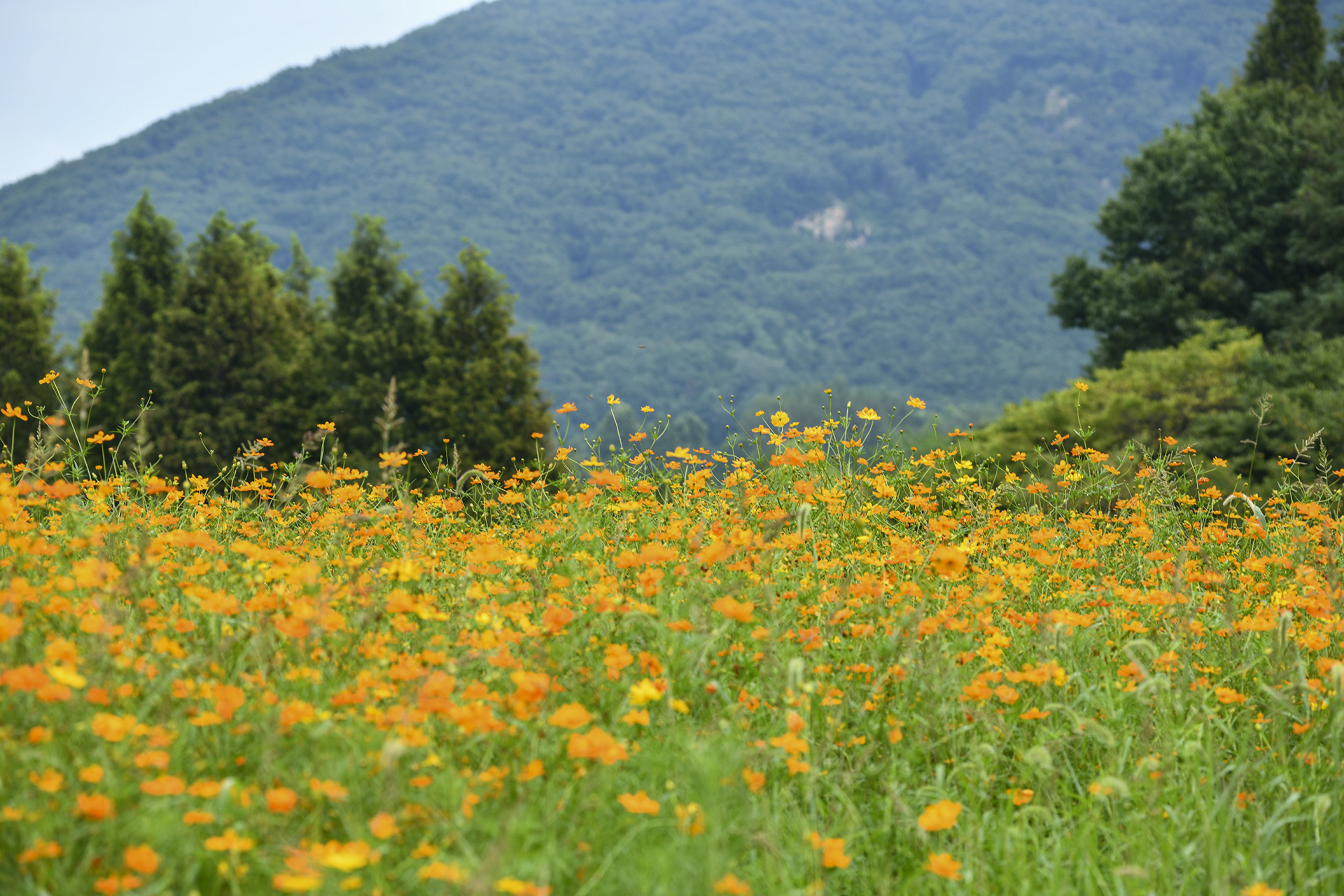 매년 계절별로 다양한 꽃들을 볼수 있는 어울정원, 8월 현재는 황화코스모스가 활짝 피었다.