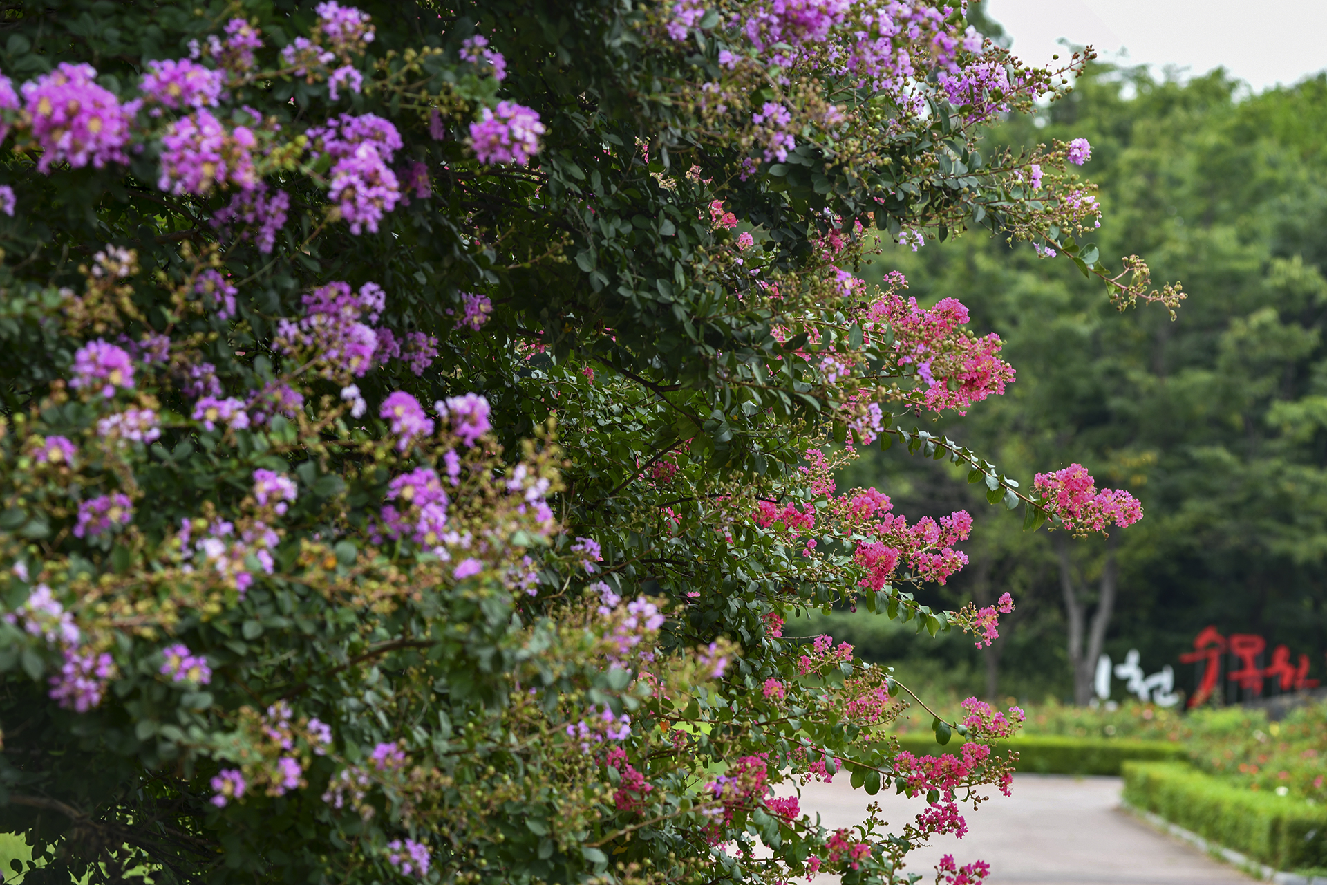 보라색 꽃이 함께 피어 여름 내내 인기있는 배롱나무,