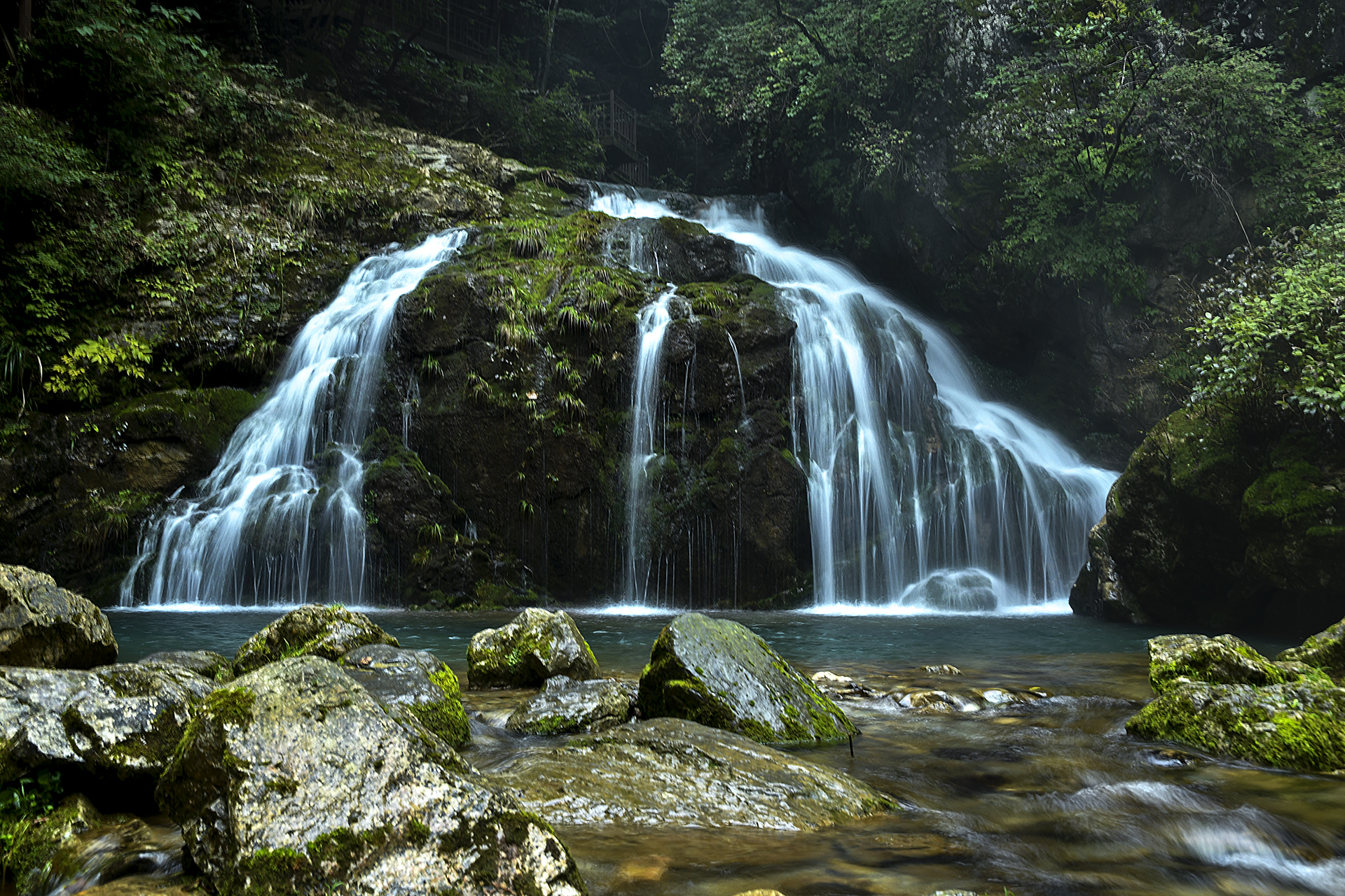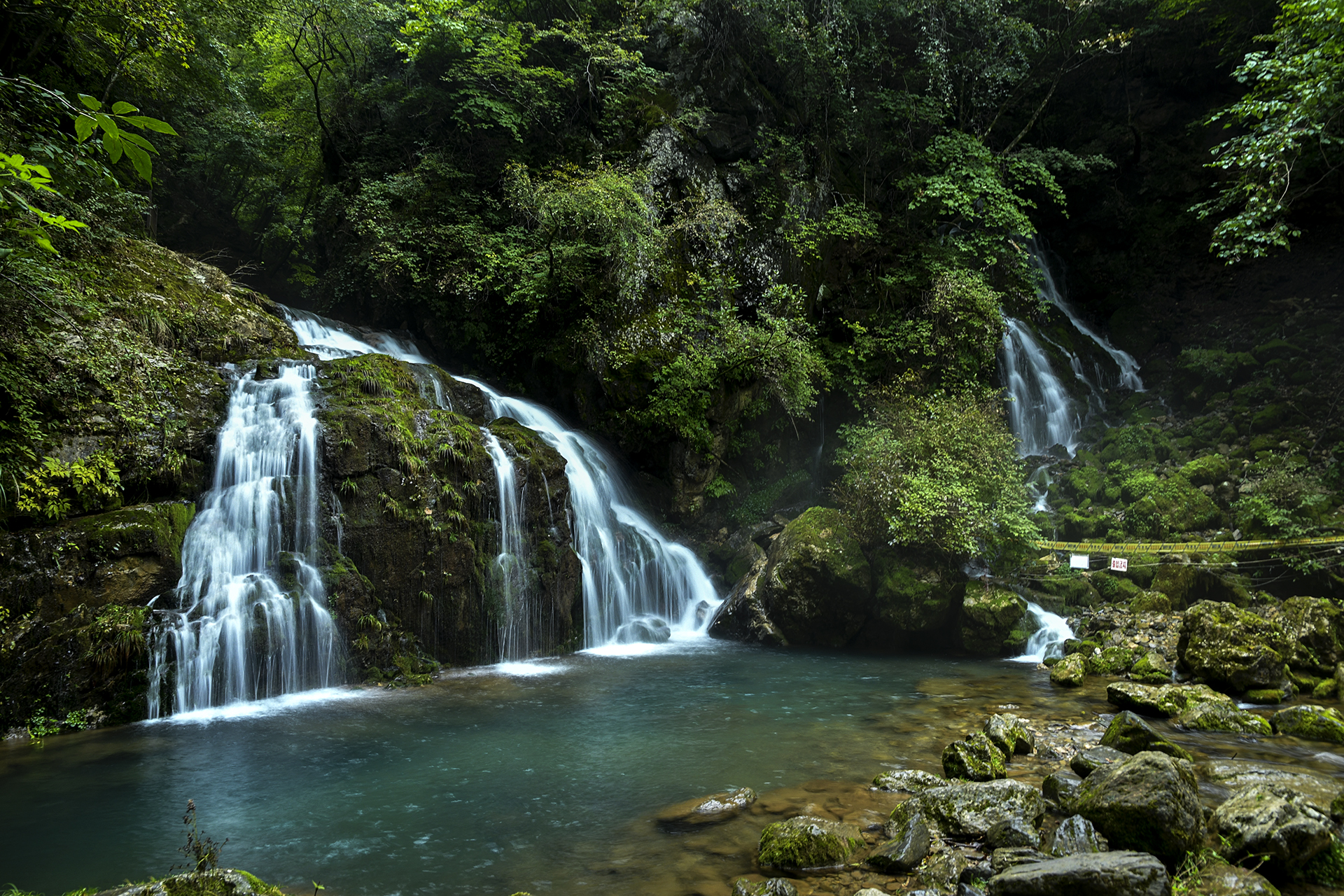 들어갈 수 없게 출입금지 줄로 막아놓은 곳이라 바위마다 이끼도 많고 그 위로 폭포수는 쉼없이 쏟아지는 중이다.