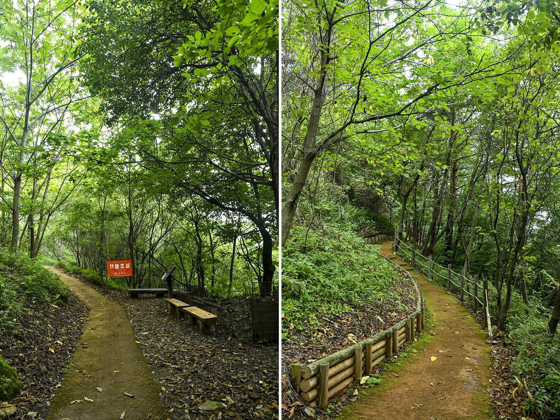이곳에서 오른쪽 숲 아래로 물소리가 들려오기 시작했다. 아마도 이끼폭포에서 흘러내린 물이 지나가는 계곡인것 같다.