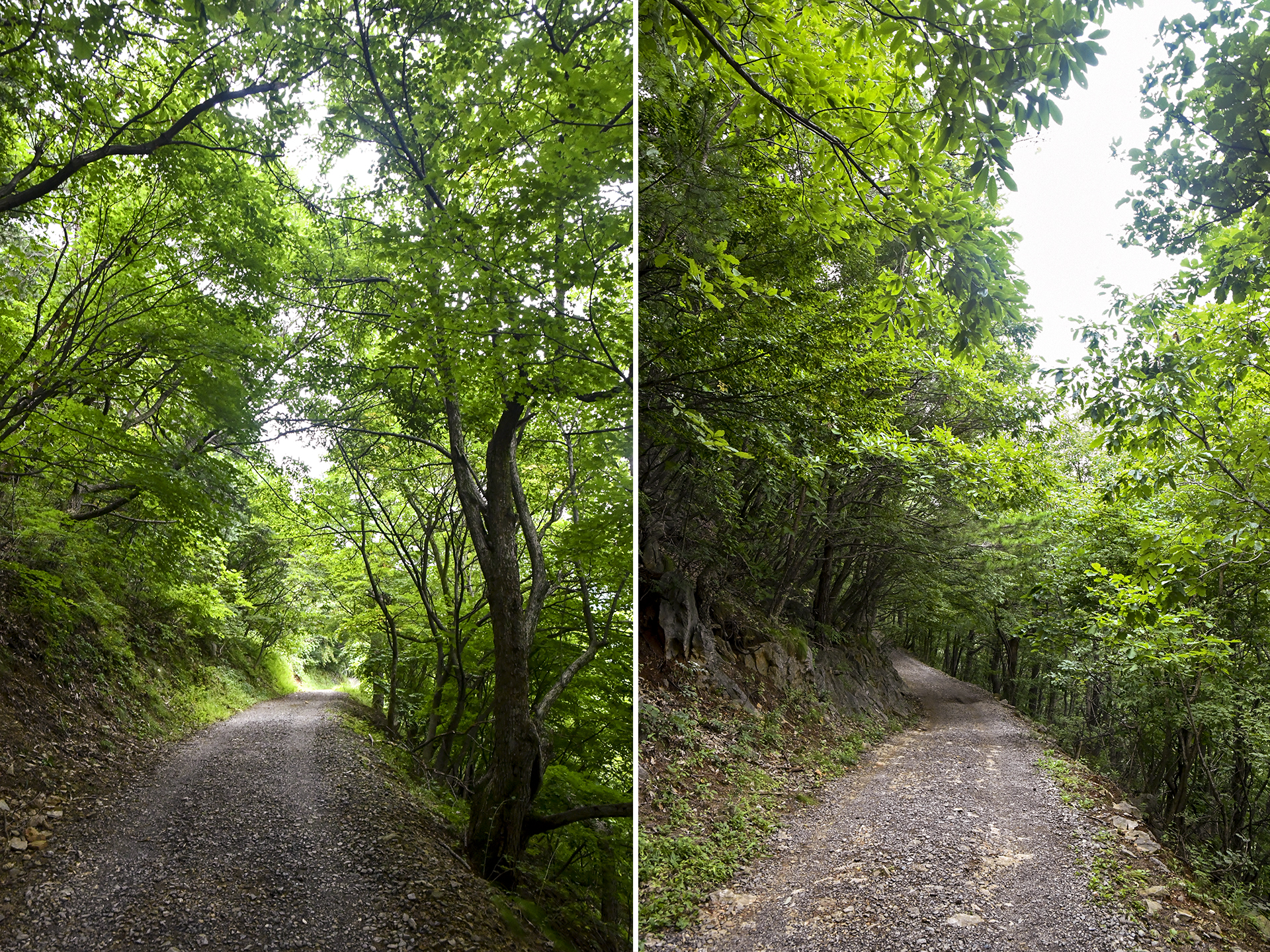 출발지점 입구의 집 몇채를 제외하고는 민가 하나 없는 숲길로 길이 이어진다.
