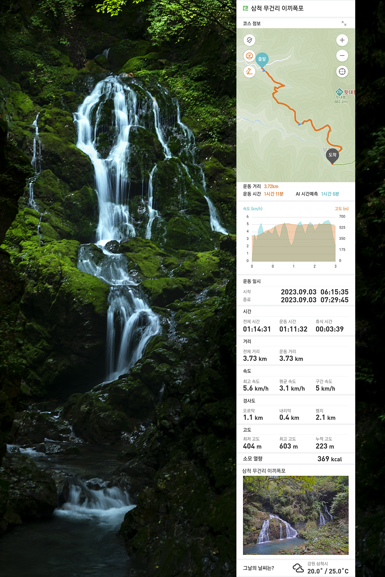 * 거리 : 폭포까지 3.73km, 왕복 7.4km