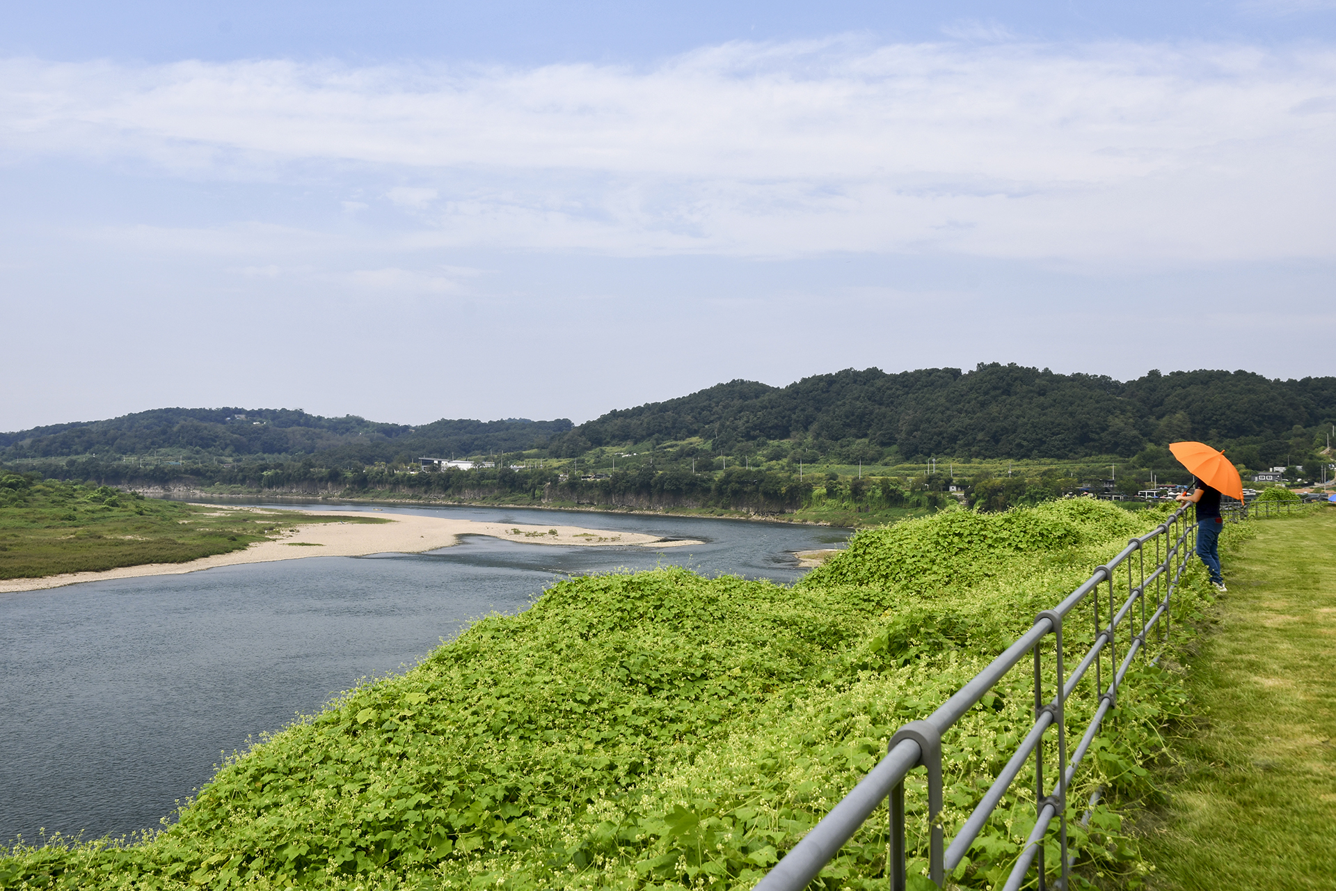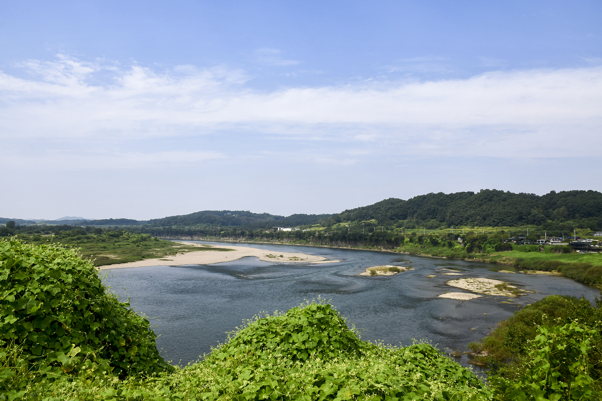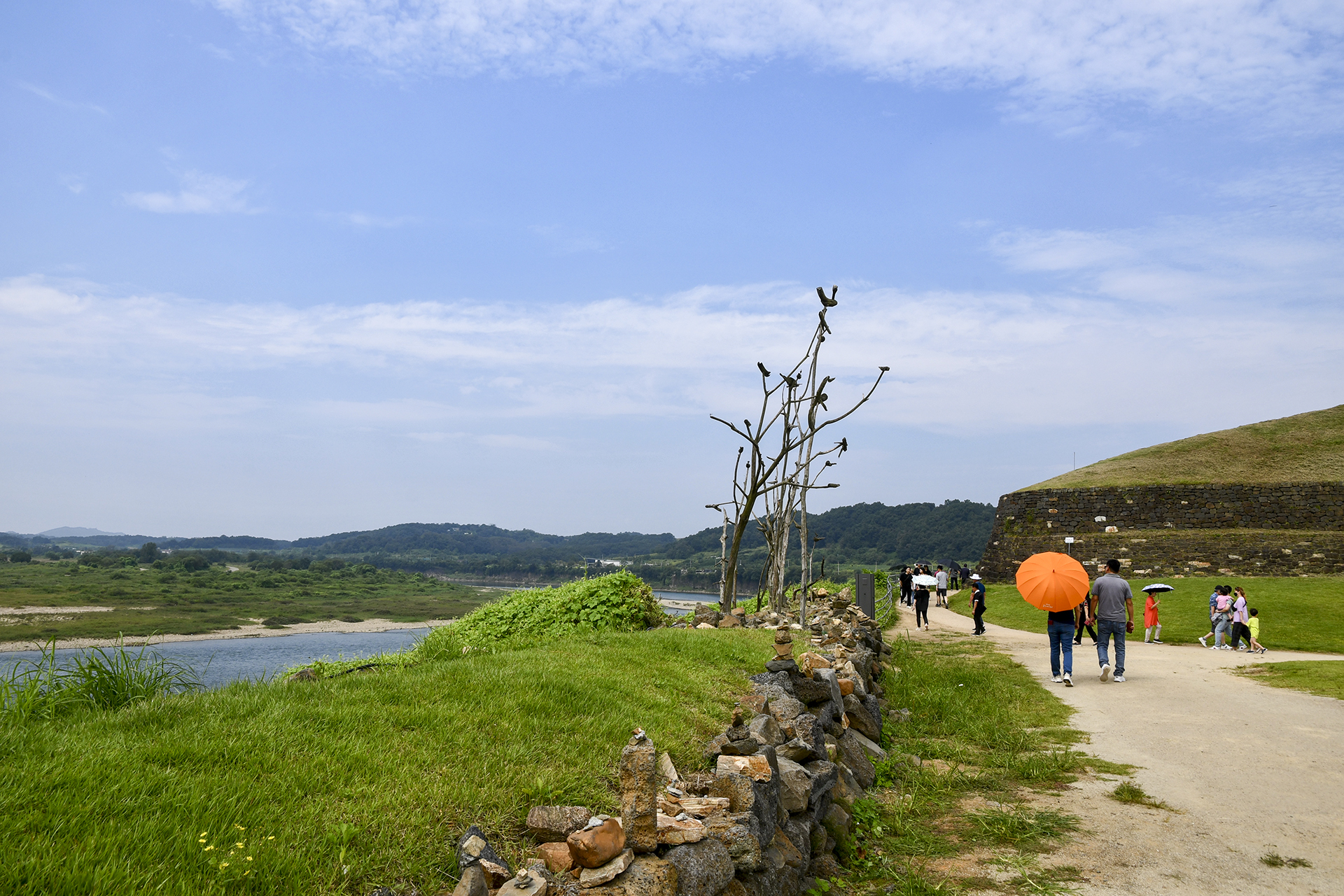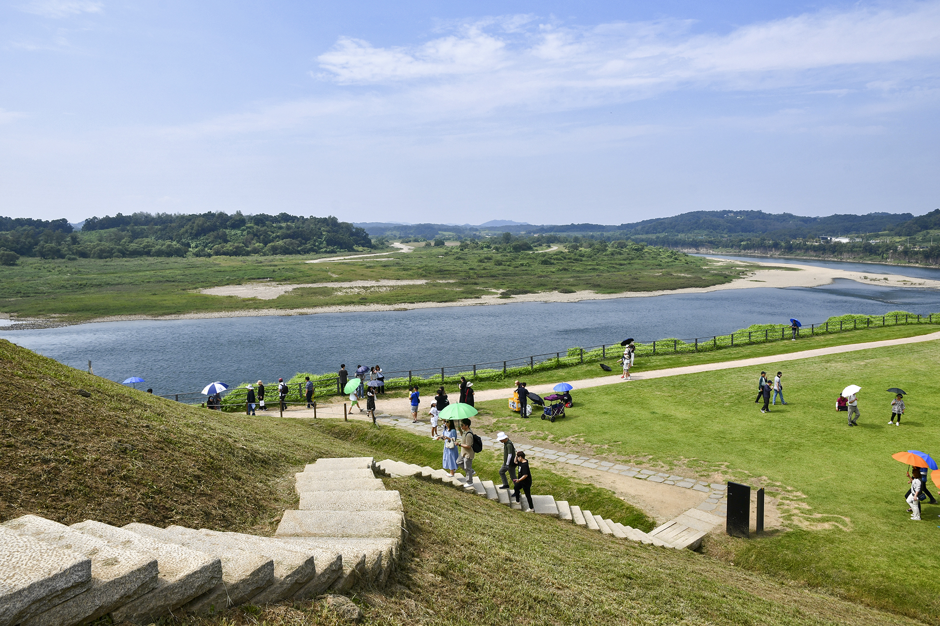 항상 많은 사람들로 붐비는 호로고루 위 동벽전망대에서 바라본 임진강 풍경