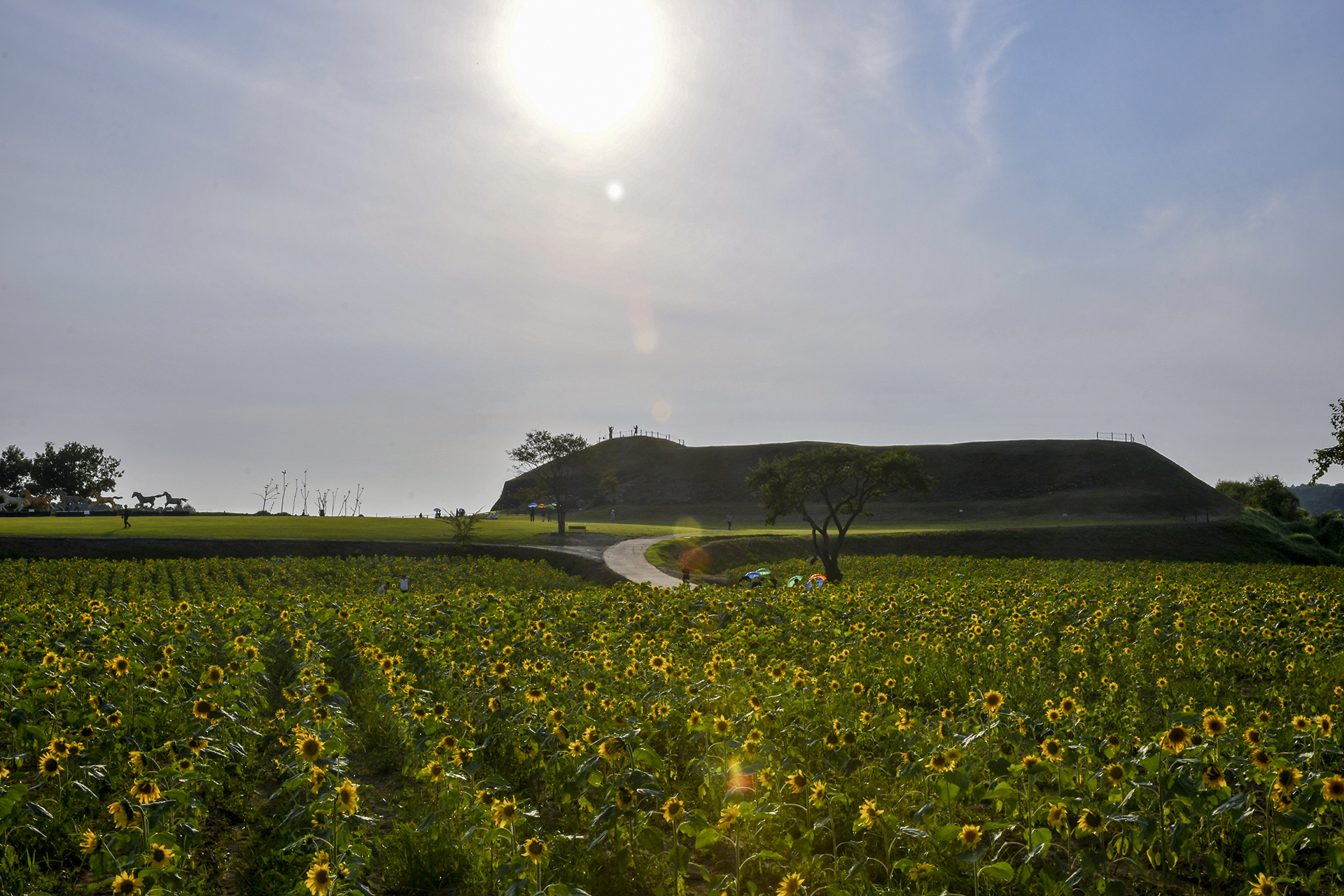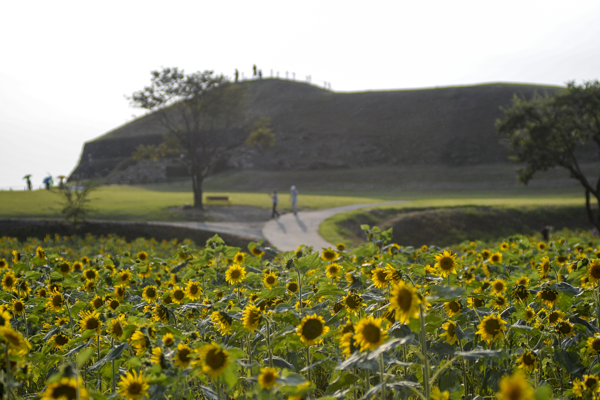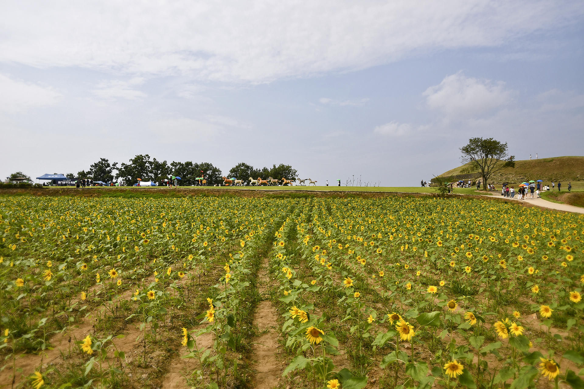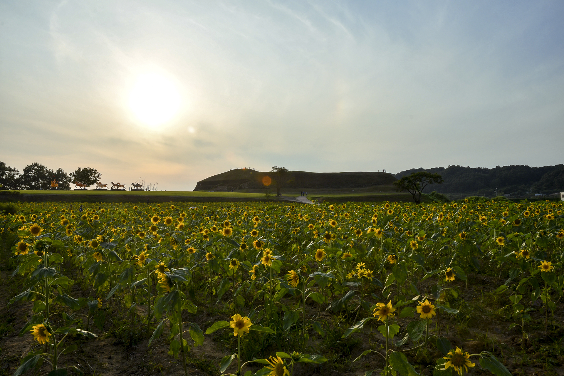특이한 형태의 호로고루를 배경으로 해바라기 사진 원없이 찍어본다.