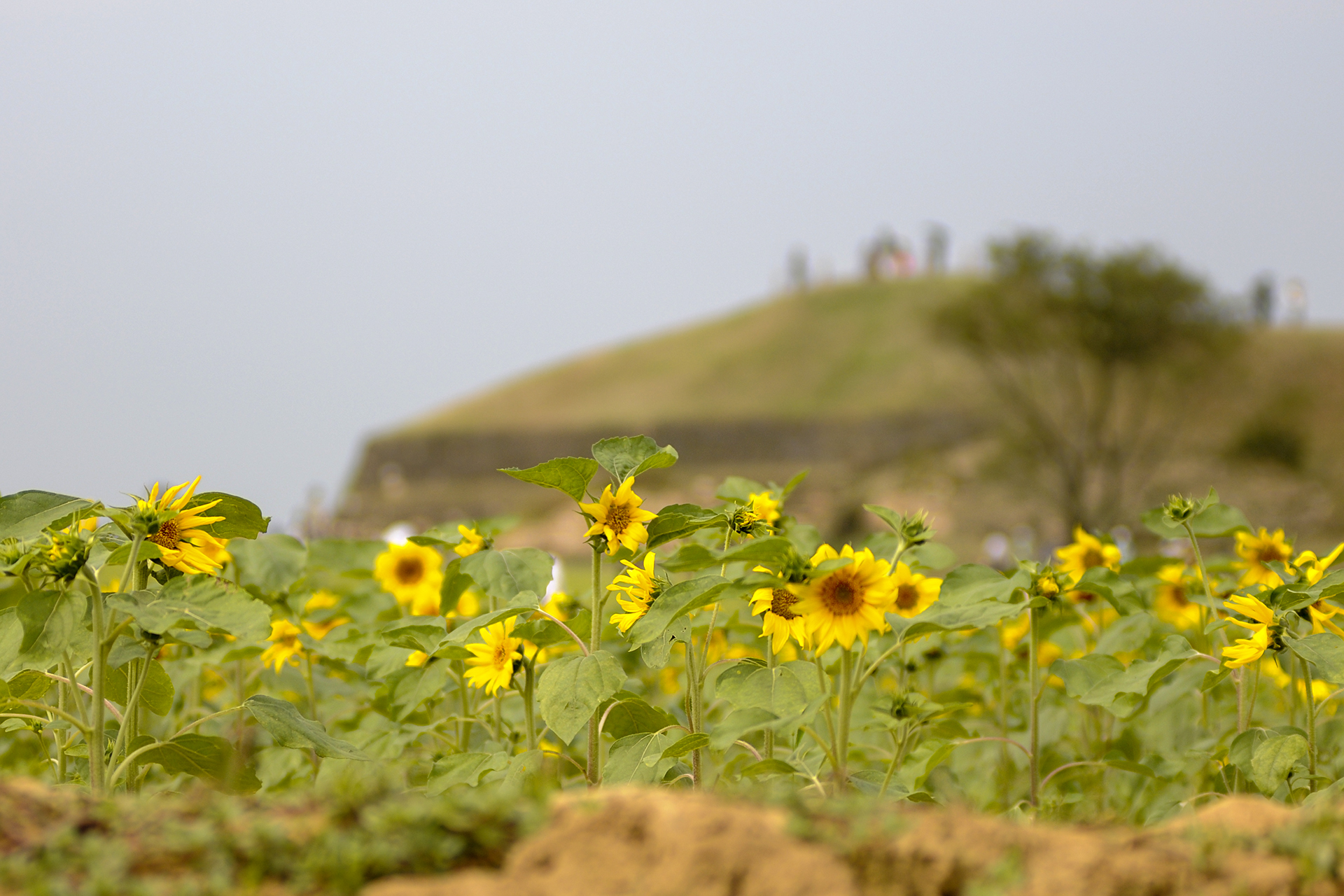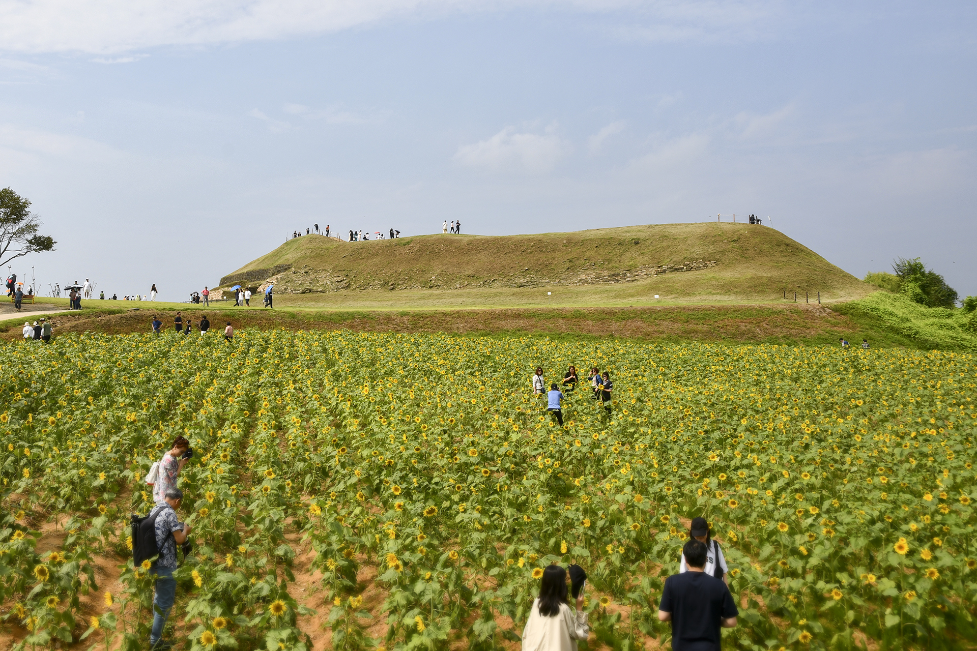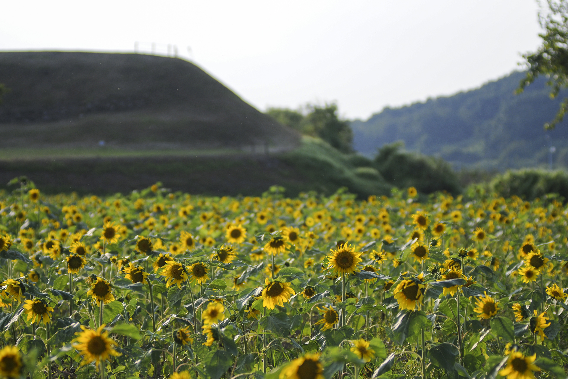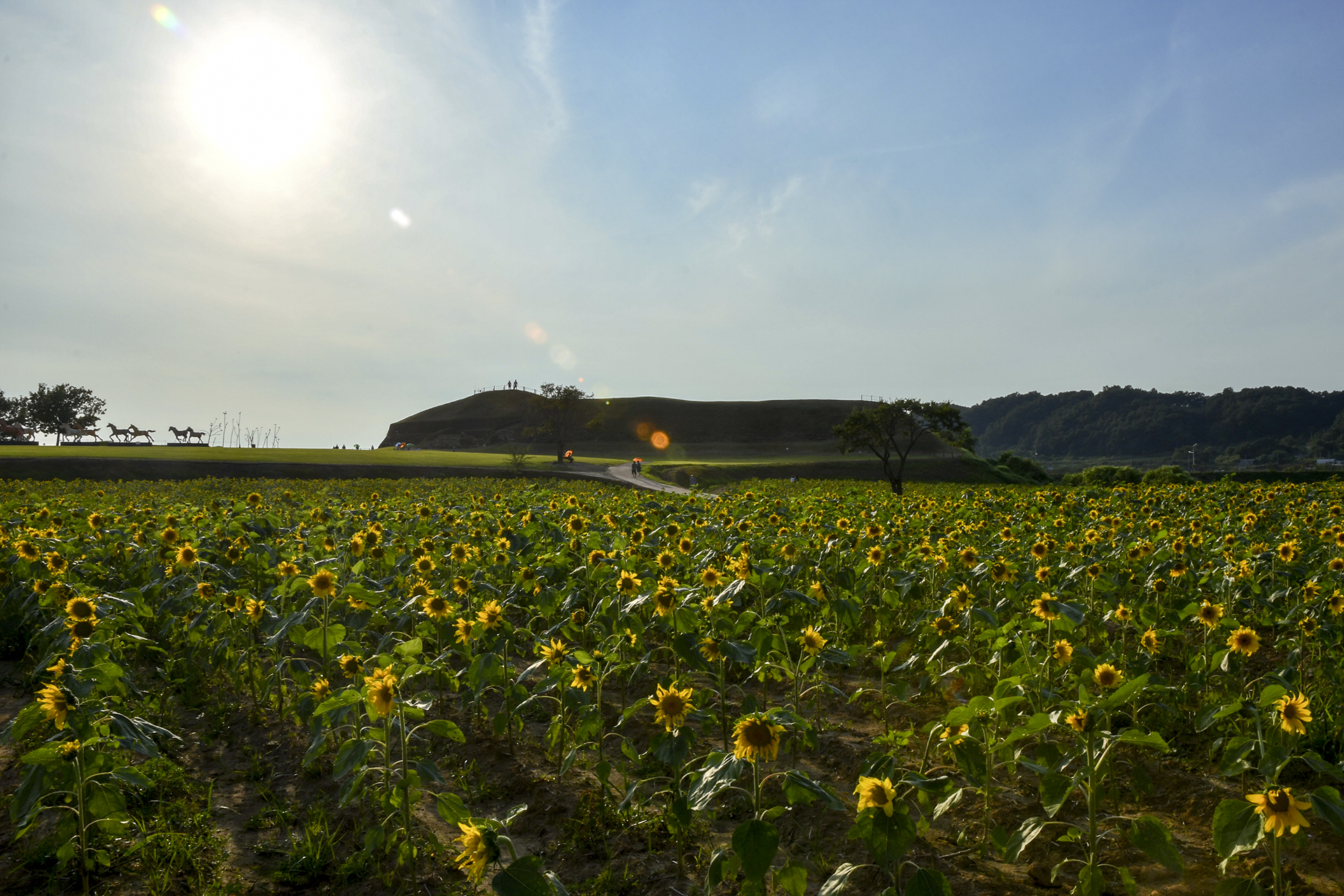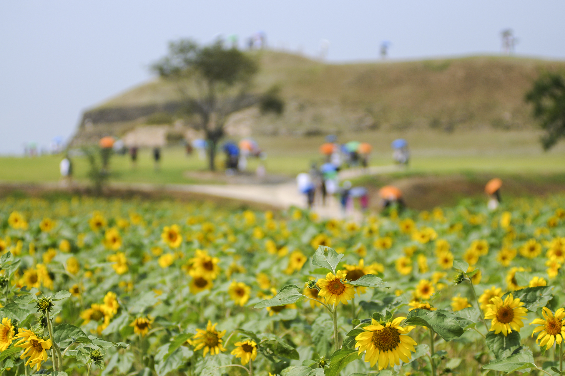 특이한 형태의 호로고루를 배경으로 해바라기 사진 원없이 찍어본다.