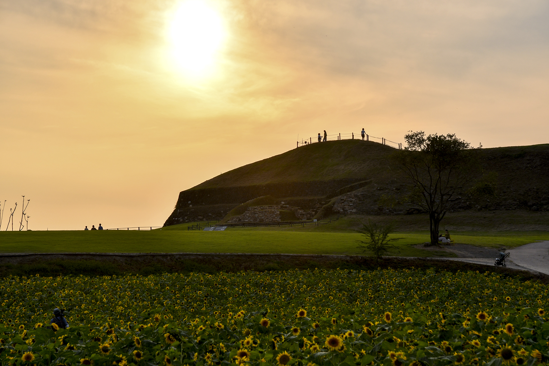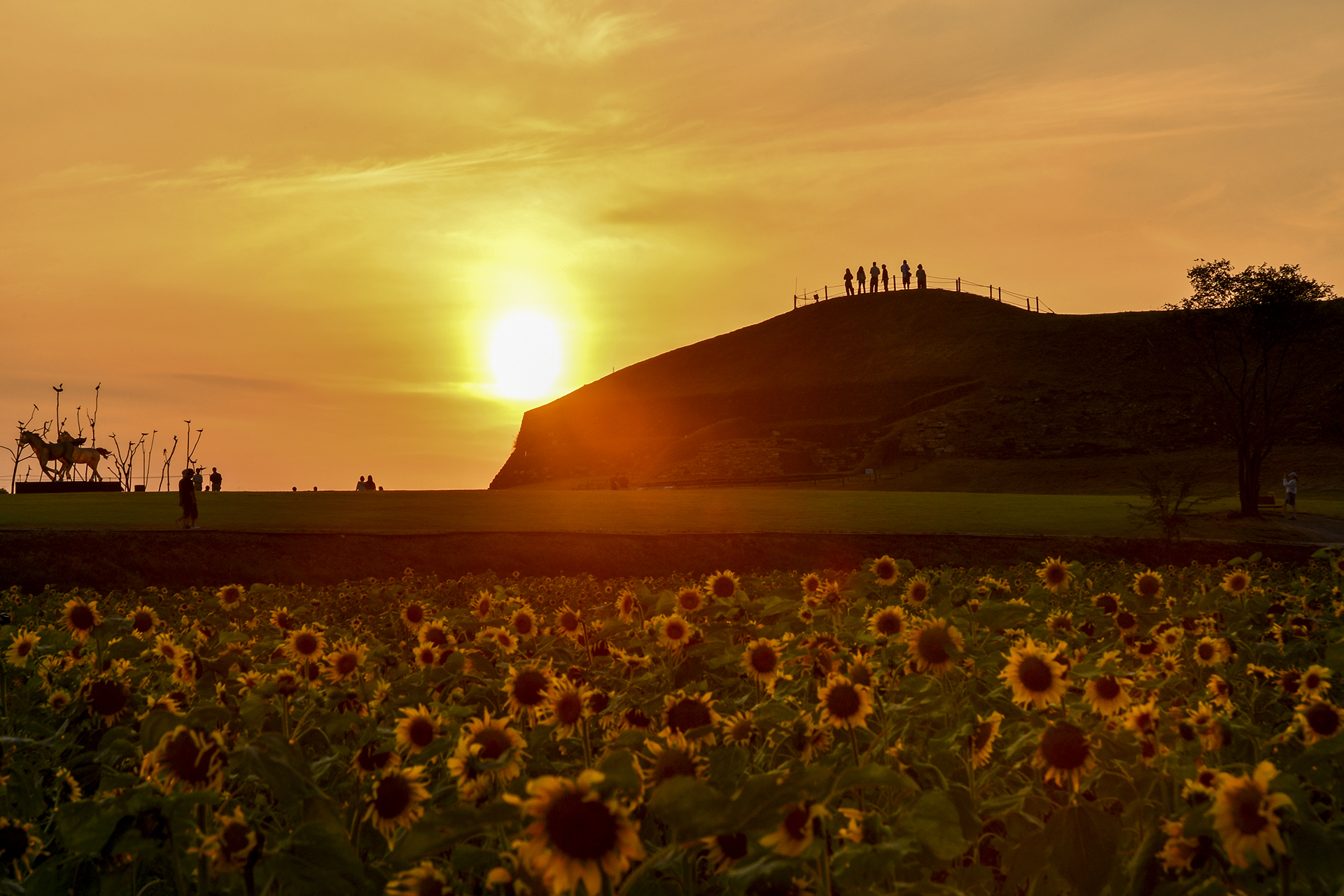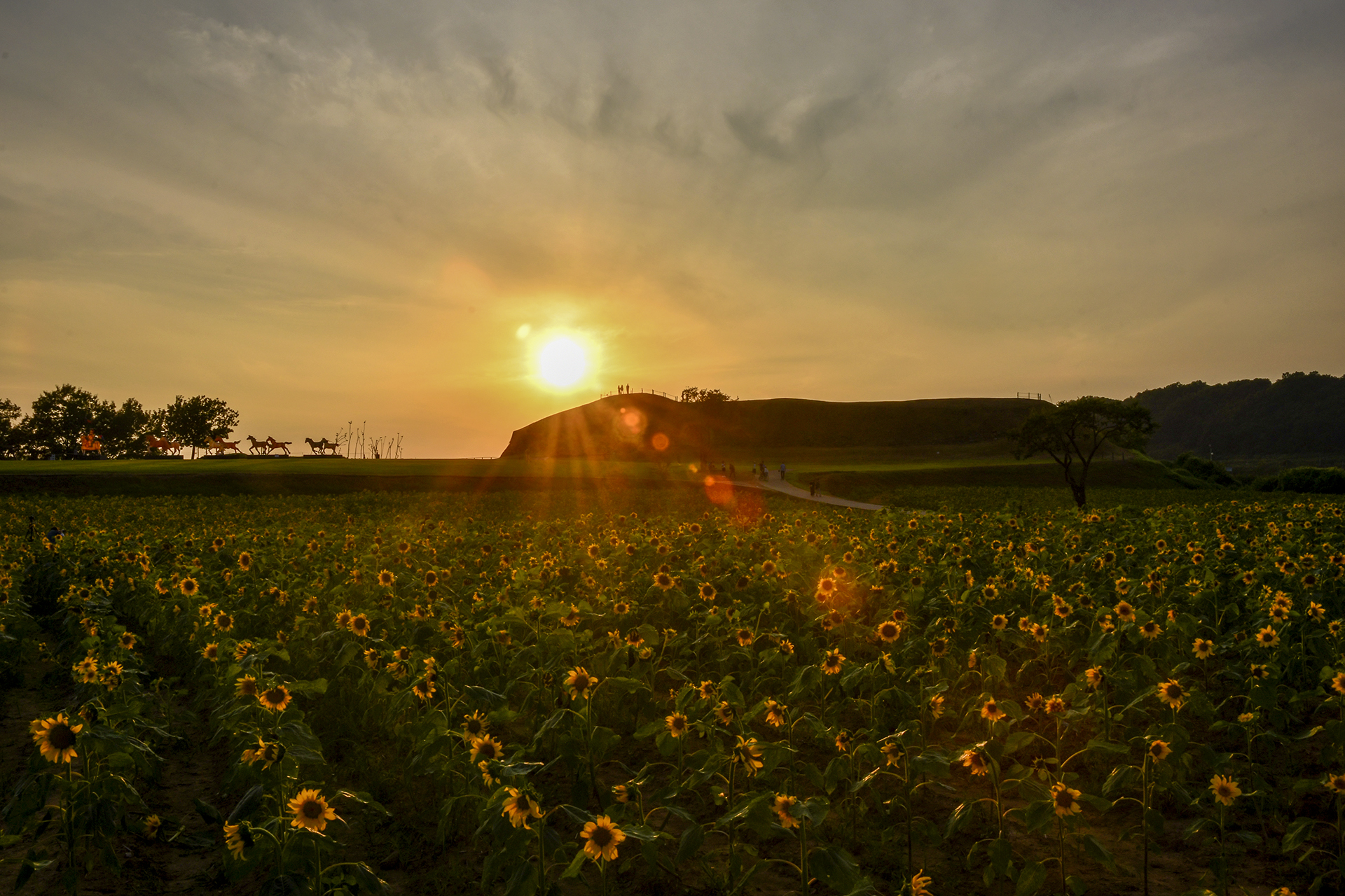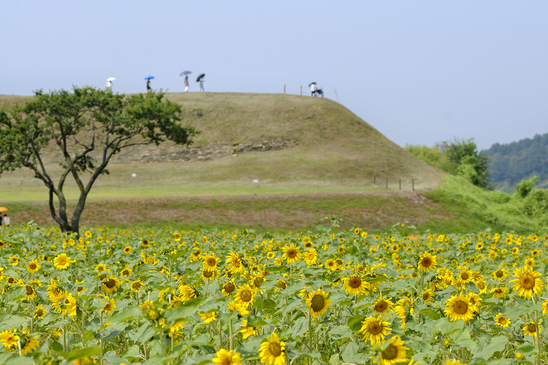 특이한 형태의 호로고루를 배경으로 해바라기 사진 원없이 찍어본다.