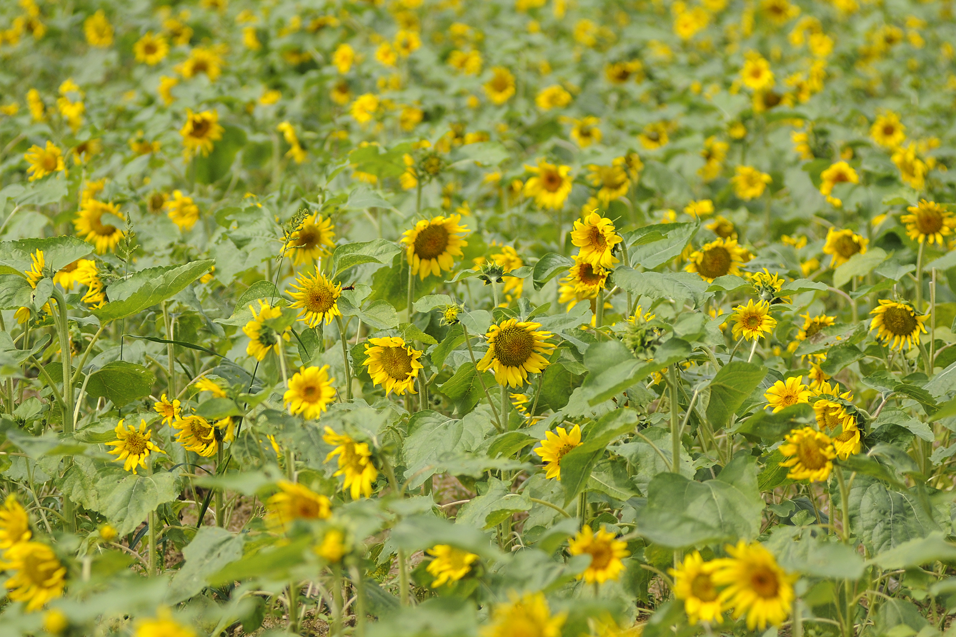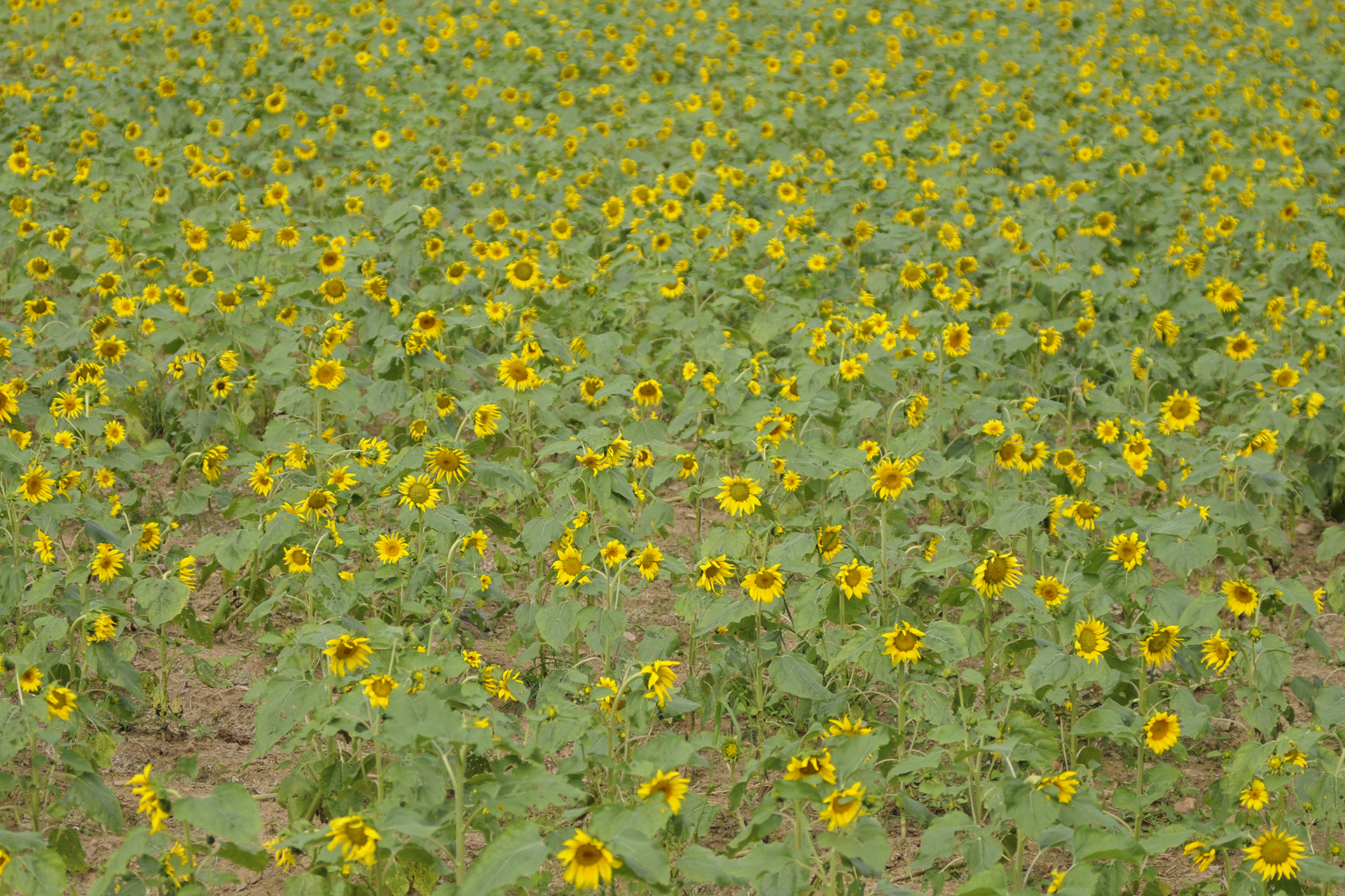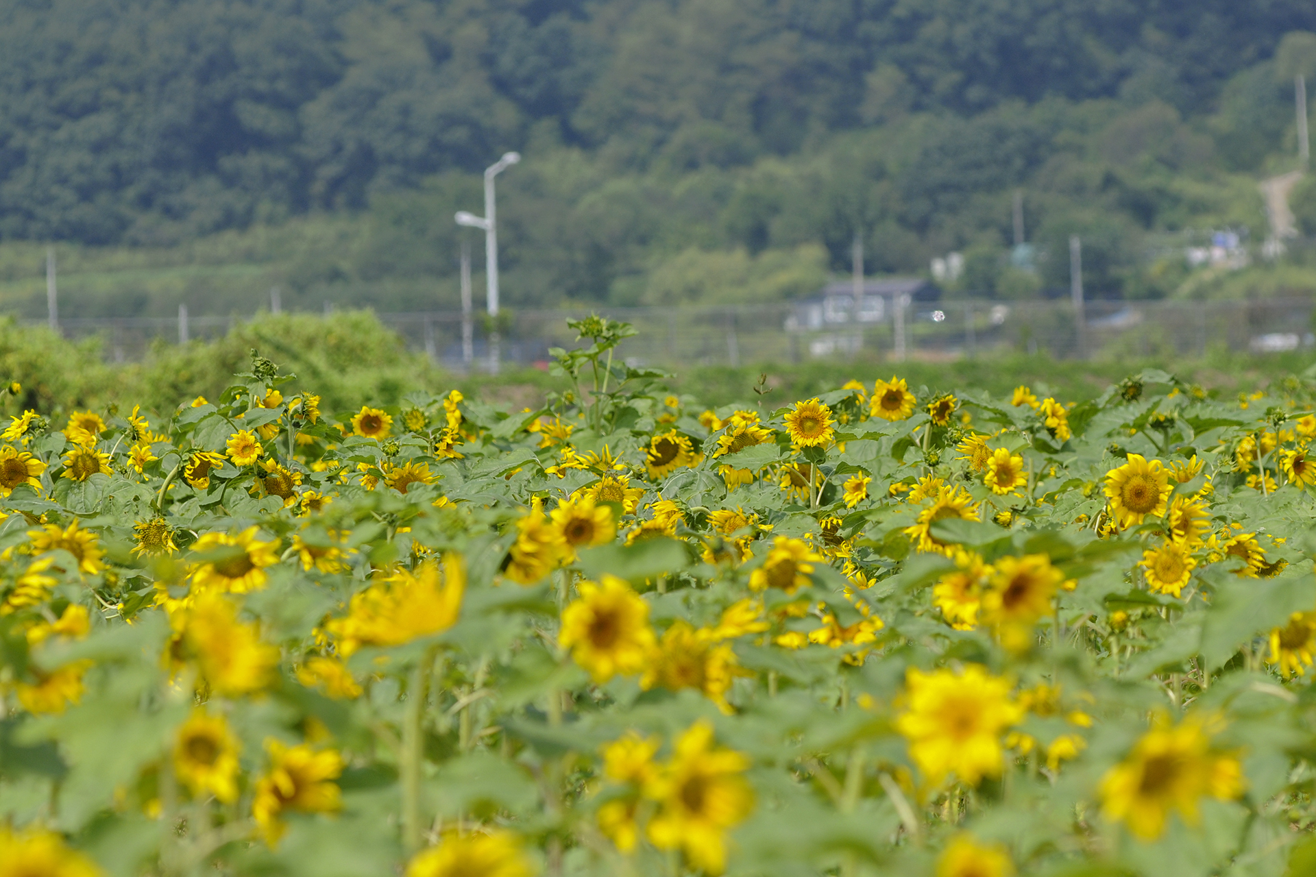 해바라기 모종 5만본을 심어 꽃을 피웠는데, 앉아야 꽃과 눈이 마주칠만큼 키작은 해바라기가 피었다.