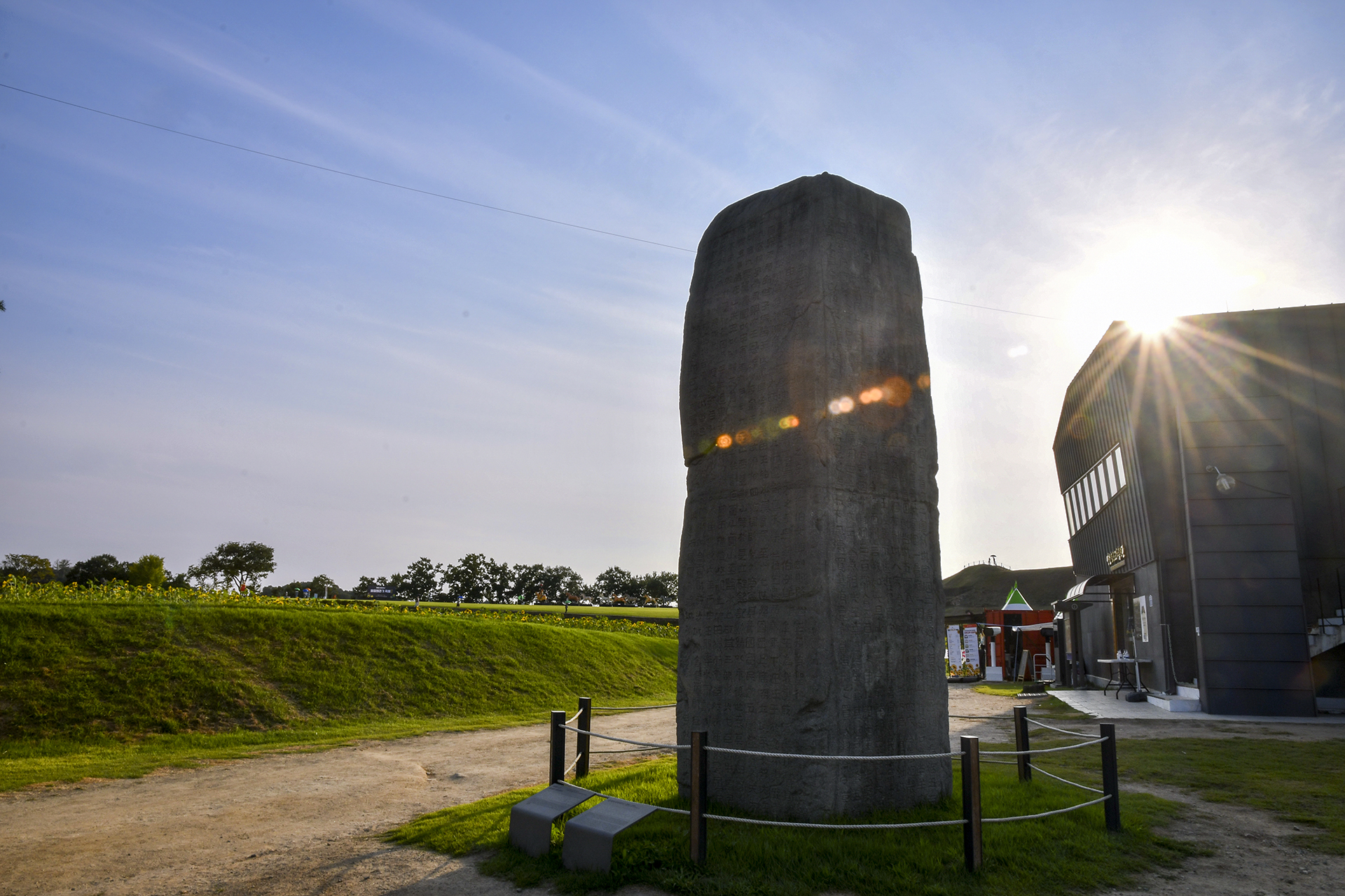 입구에 있는 이 비는 2002년 북한에 소재한 국보급 고구려 유물 및 벽화고분을 북한에서 직접 모형으로 제작해 우리나라에 제공한 북에서 온 광개토대왕릉비라고 한다.