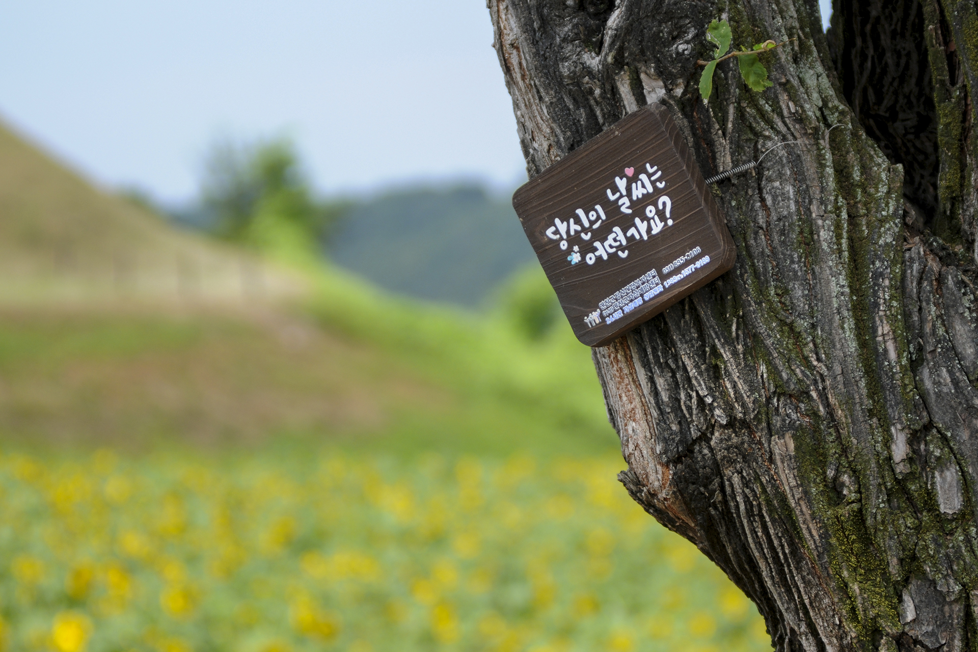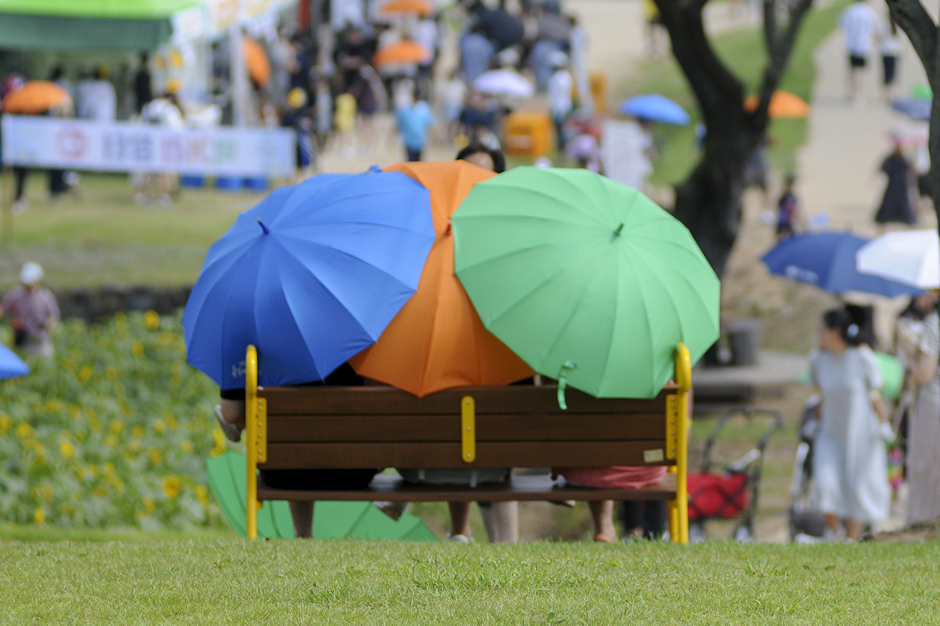 해바라기 너머 잔디밭에서는 축제 행사가 진행중인지 마이크에서는 쩌렁쩌렁한 목소리가 계속 들려온다.